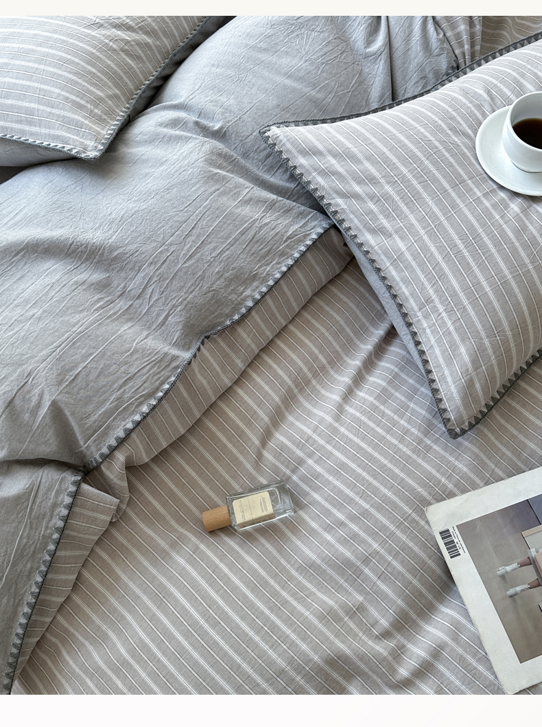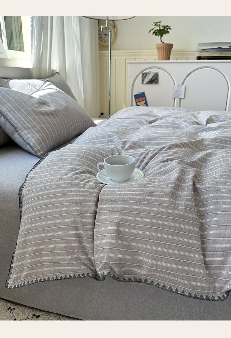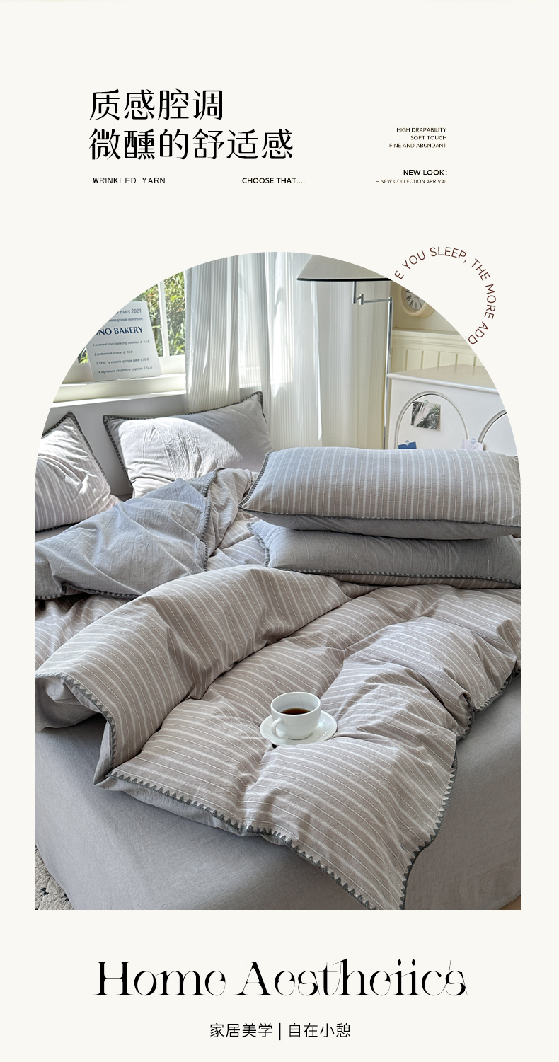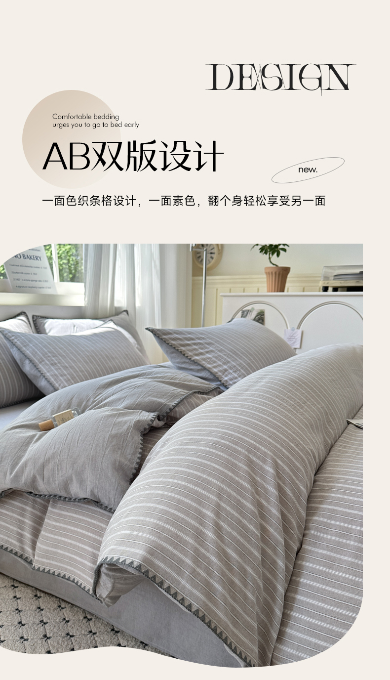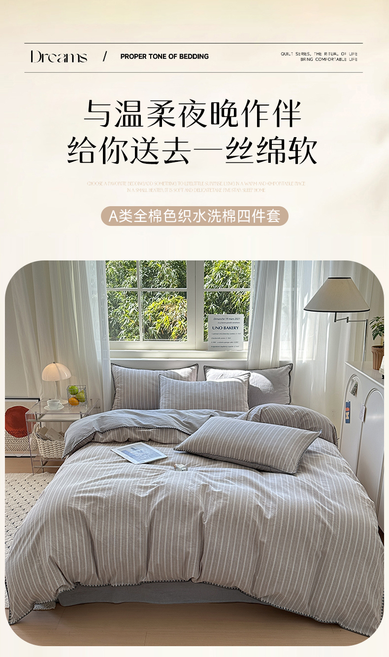 当前位置: 91家纺网 > 商品网购 > 床品套件 > 四件套 > 全棉普通四件套 > 晚依家纺 2025新款A类全棉色织水洗棉被套单件格子条纹四件套学生宿舍被罩三件套定制定做 乐事-浅灰