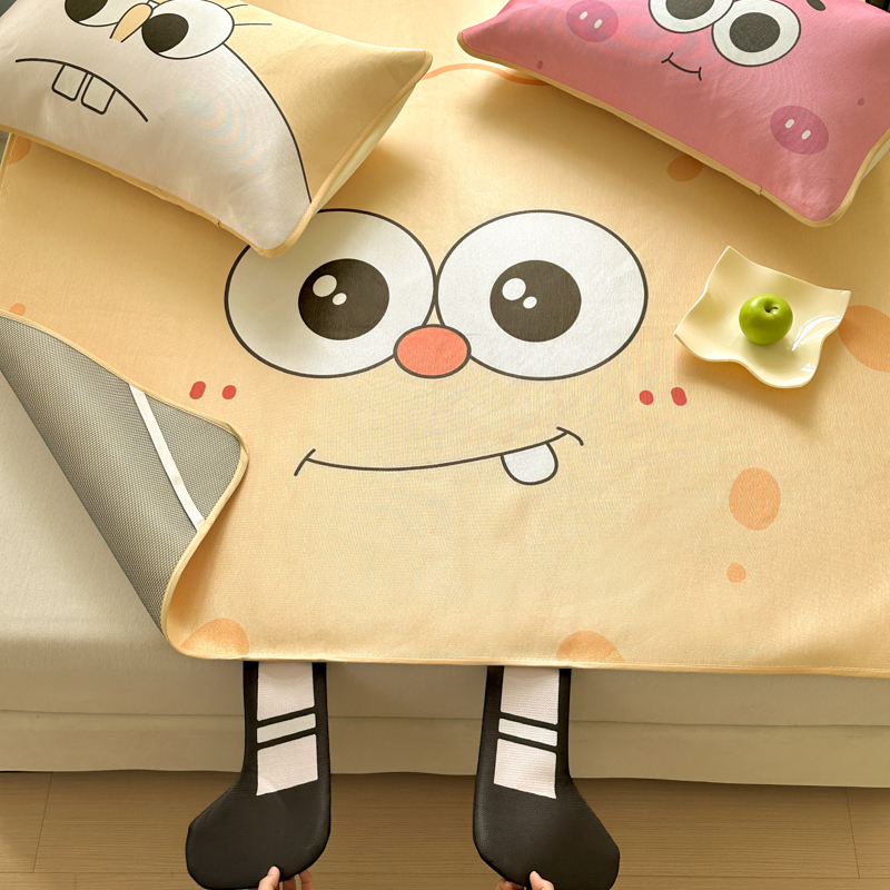 商品名称:乐童家纺 2025新款大版300D冰藤席 笑脸海宝