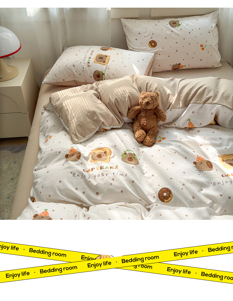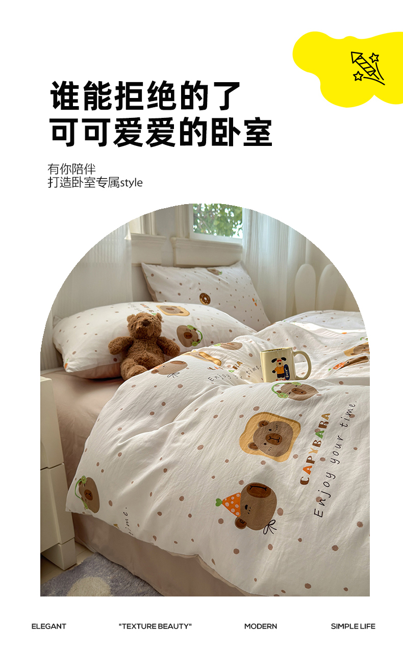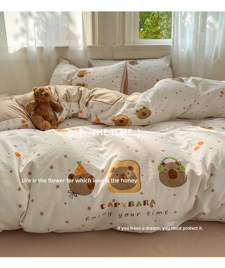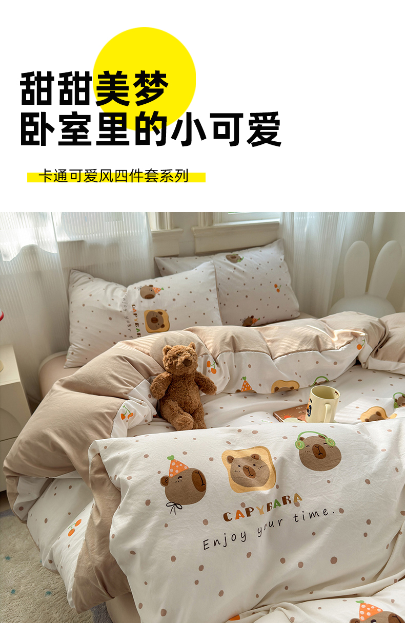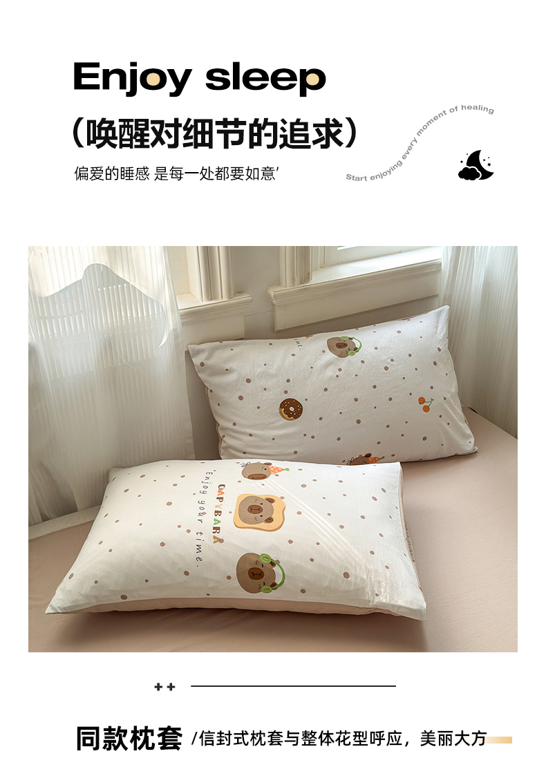 当前位置: 91家纺网 > 商品网购 > 床品套件 > 四件套 > 沐芷 2025 A类软萌水洗棉卡通印花四件套床上用品三件套被套床单 卡皮巴拉