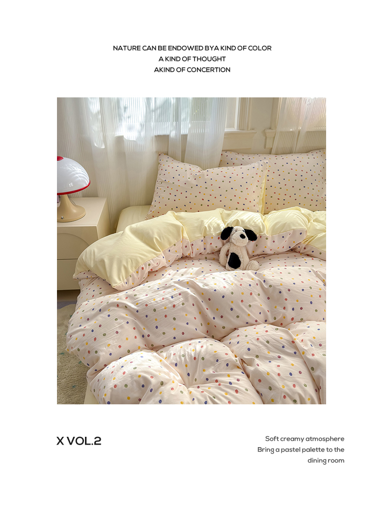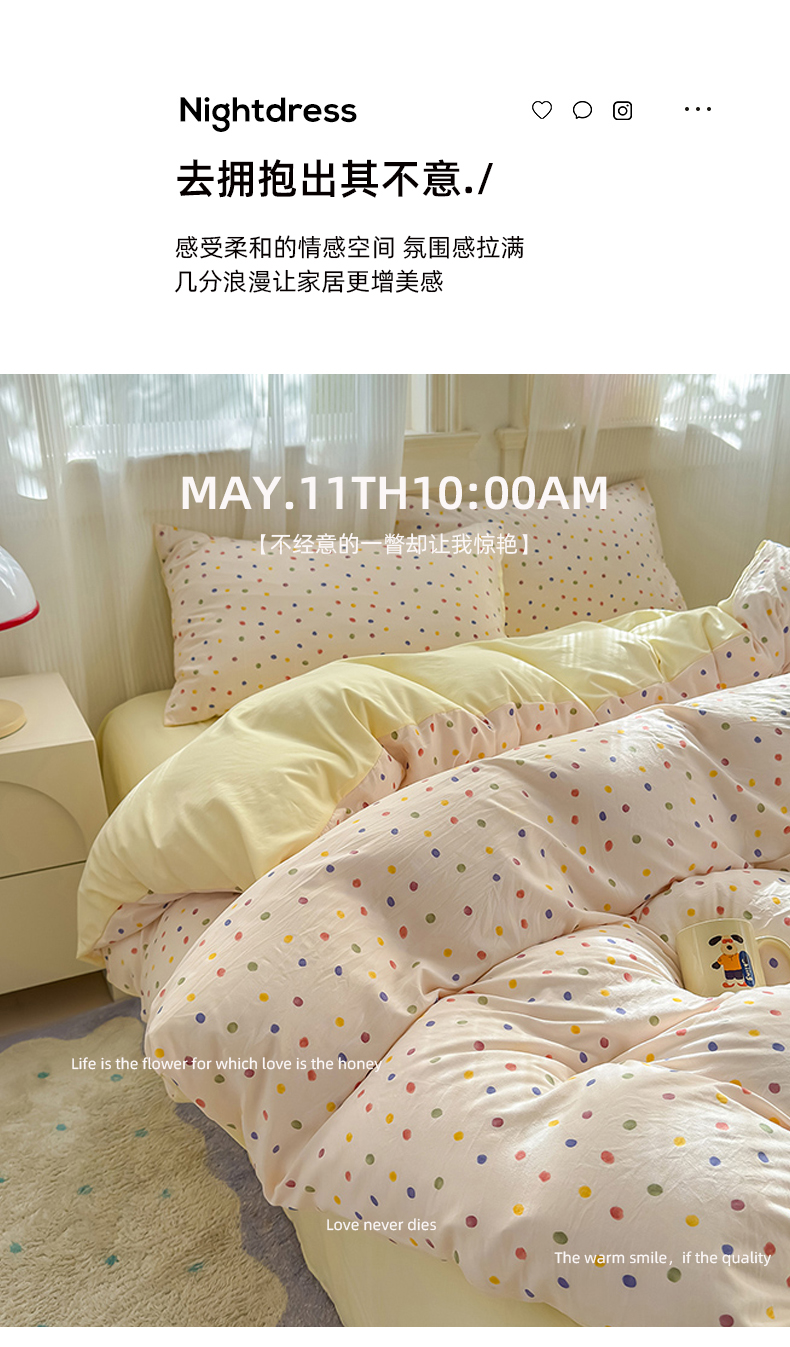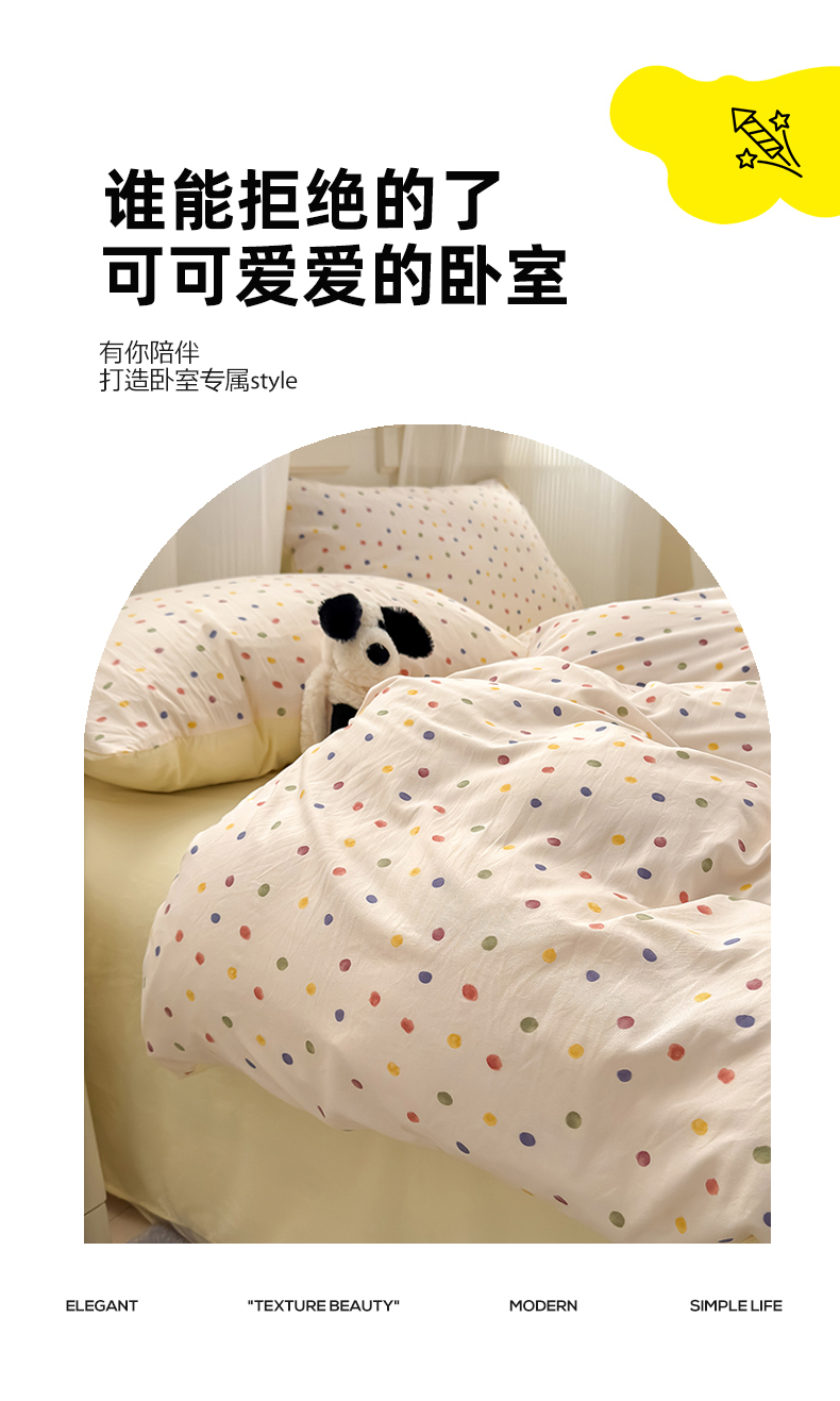 当前位置: 91家纺网 > 商品网购 > 床品套件 > 四件套 > 沐芷 2025 A类软萌水洗棉卡通印花四件套床上用品三件套被套床单 圆波点