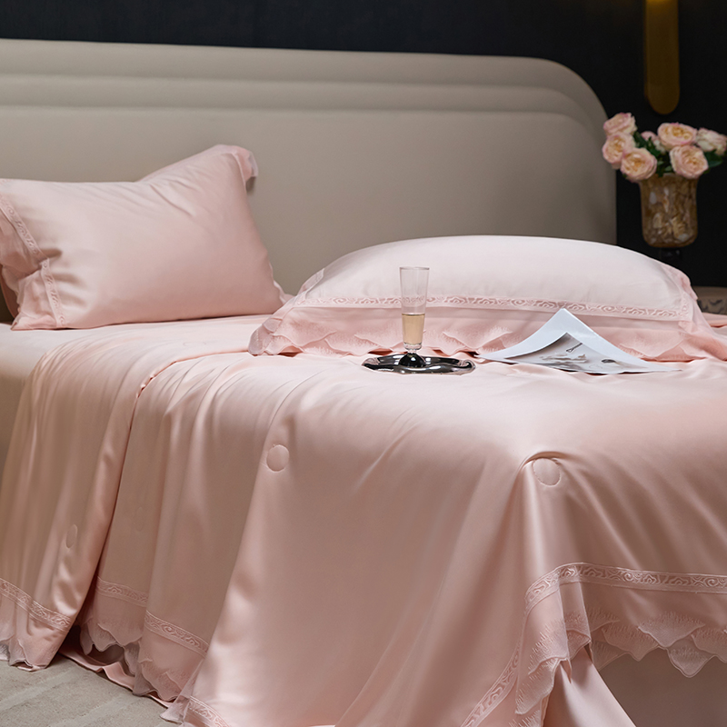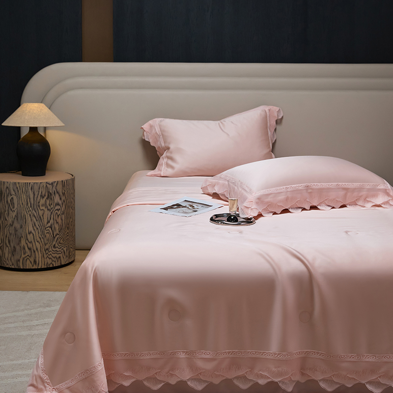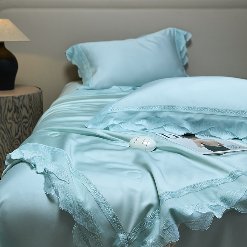 当前位置: 91家纺网 > 商品网购 > 床品套件 > 四件套 > 莱赛尔四件套 > (总)洽想家 2025新品80支兰精天丝大豆纤维夏被四件套-山峦迭