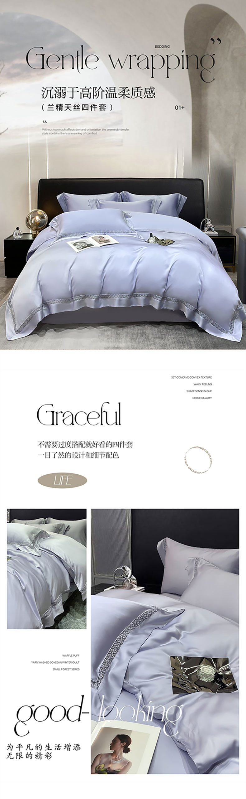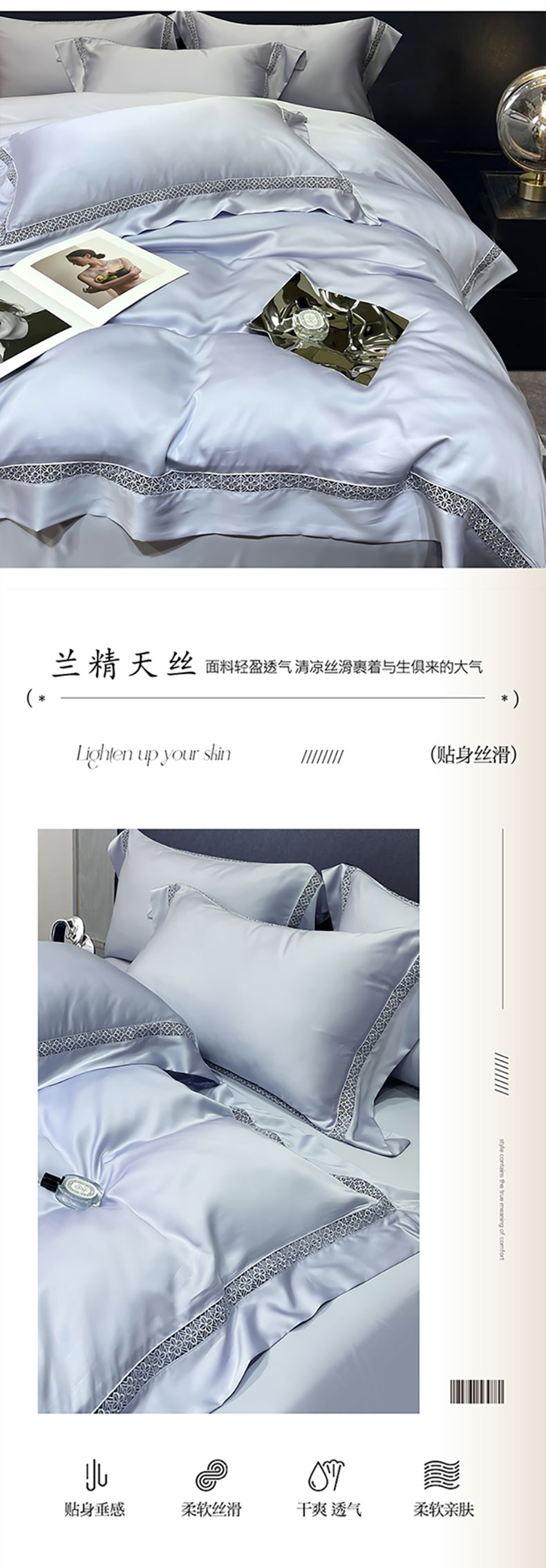商品名称:洽想家 2025新款80支天丝镂空瑾系列四件套 瑾-微紫