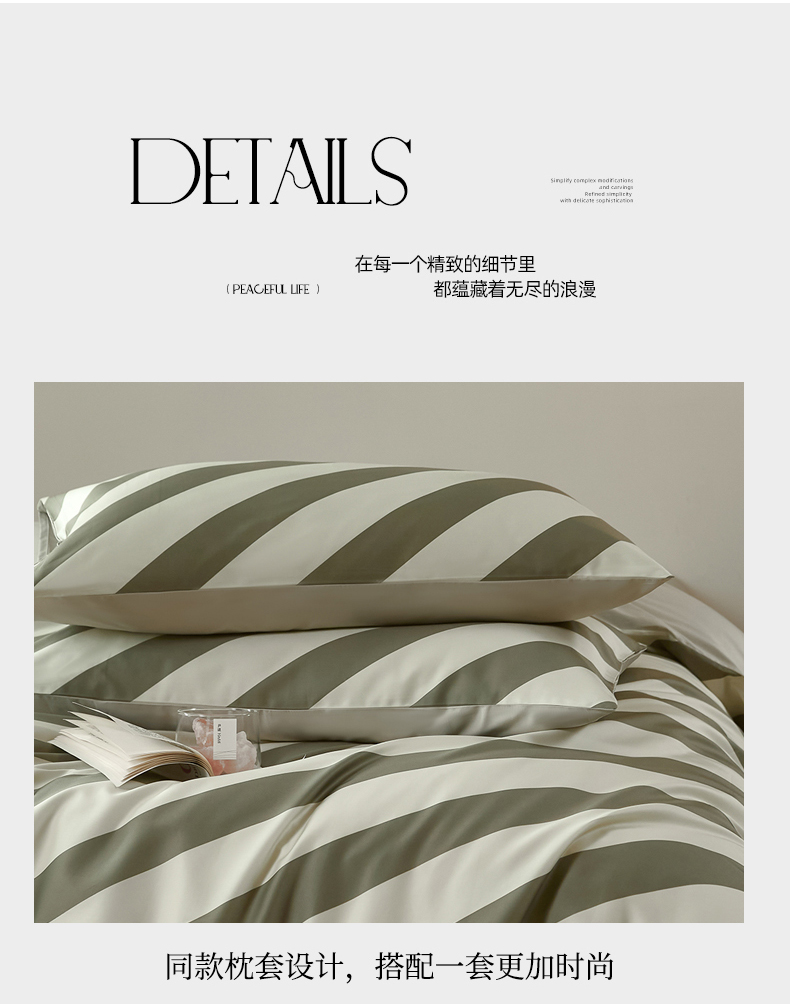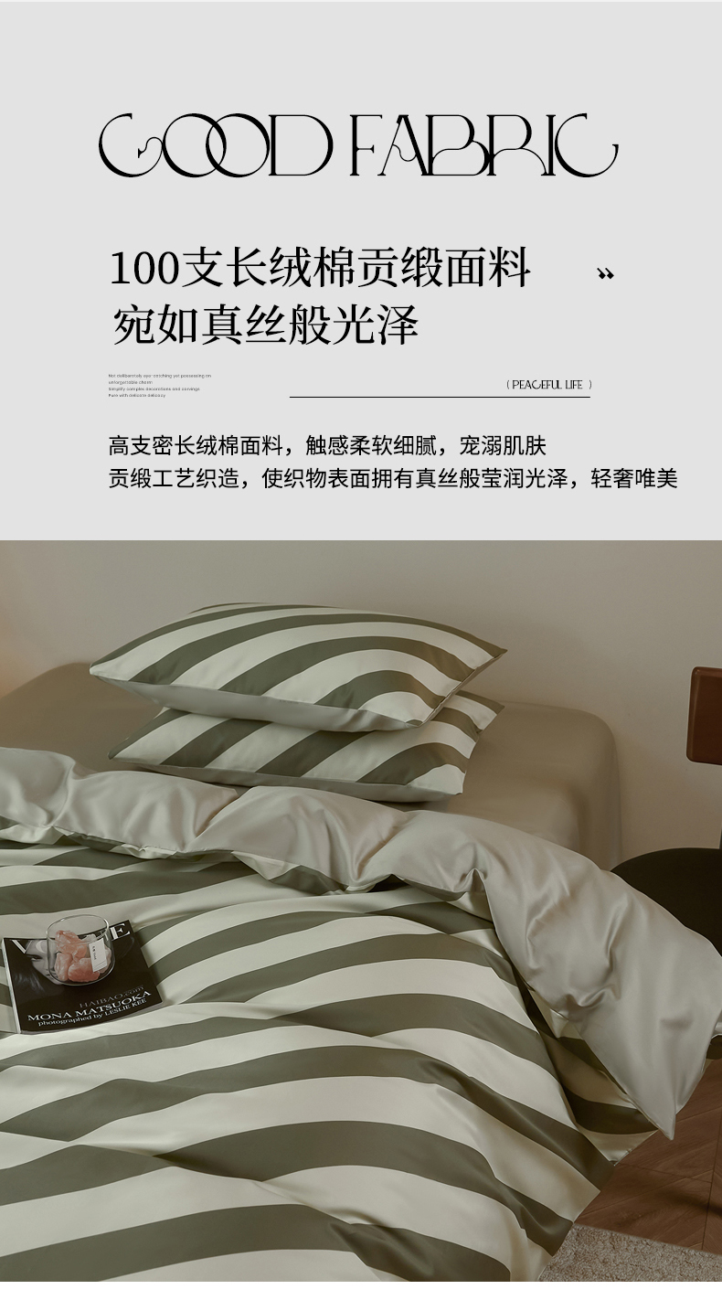 ONE TWO ONE 121 2025新款高支高密长绒棉纯棉贡缎宽缎条纹四件套-Say 晚安(标准不低于268元, 加大不低于 288元) 莫奈花园
