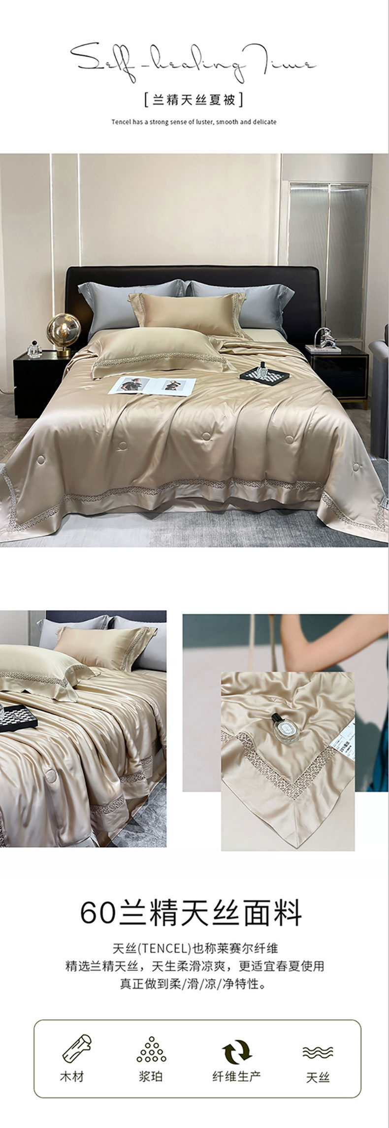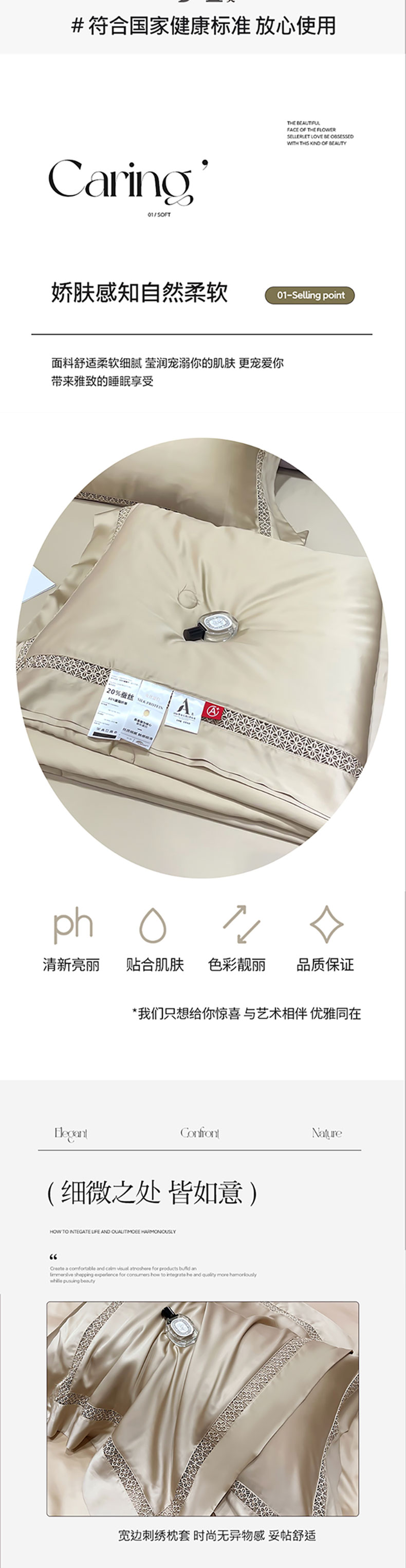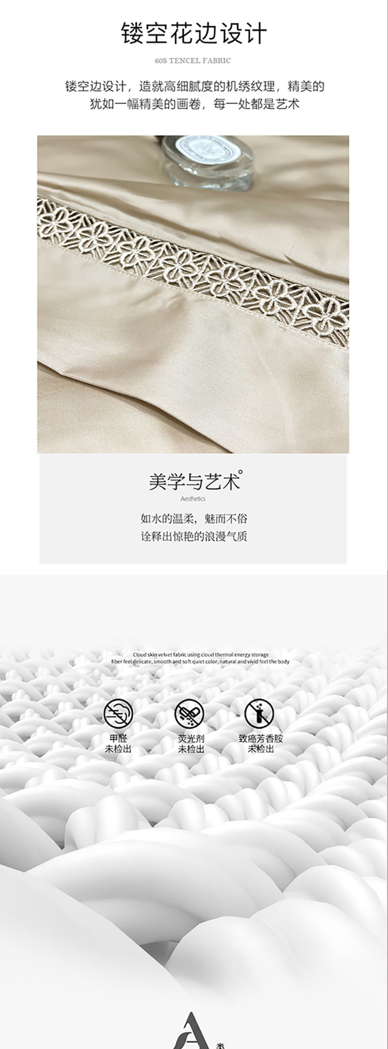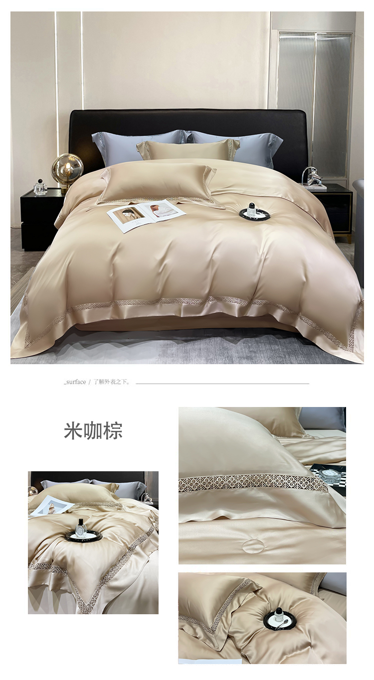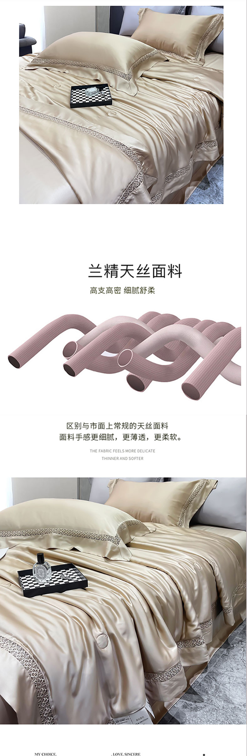 商品名称:洽想家 2025新款80支天丝镂空瑾系列夏被四件套 瑾-米咖棕