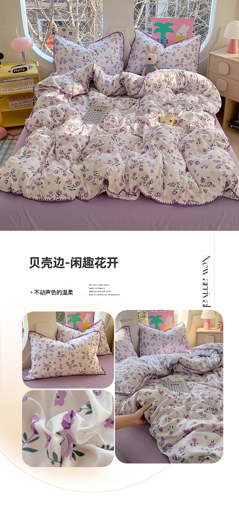 当前位置: 91家纺网 > 商品网购 > 床品套件 > 四件套 > 其它四件套 > 思诺羽床笠 2025新款亲肤棉贝壳花边四件套 贝壳边-闲趣花开