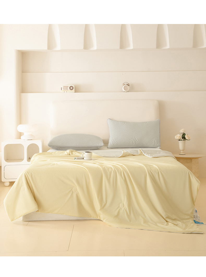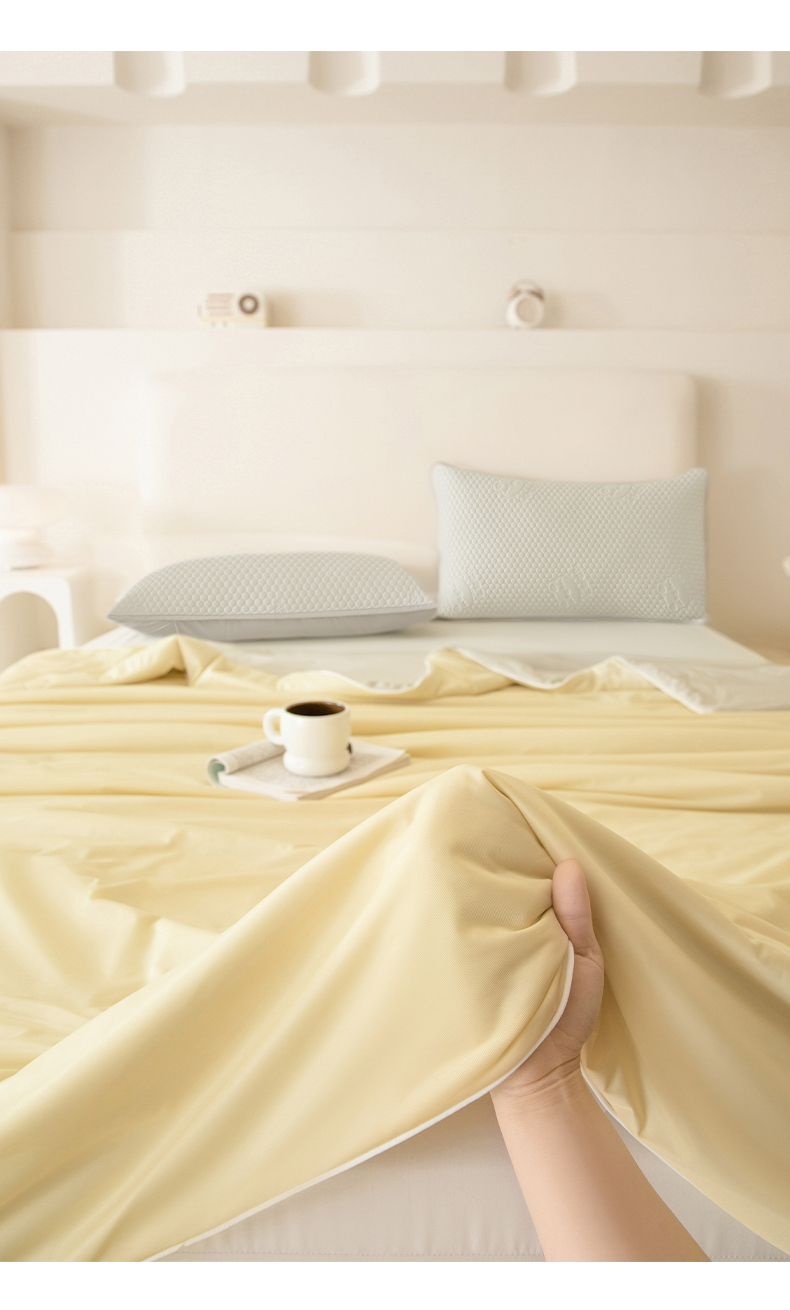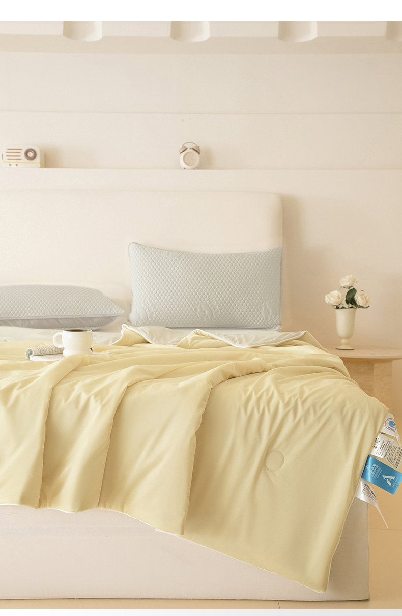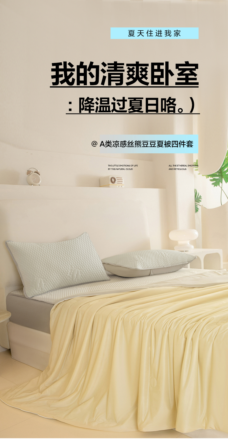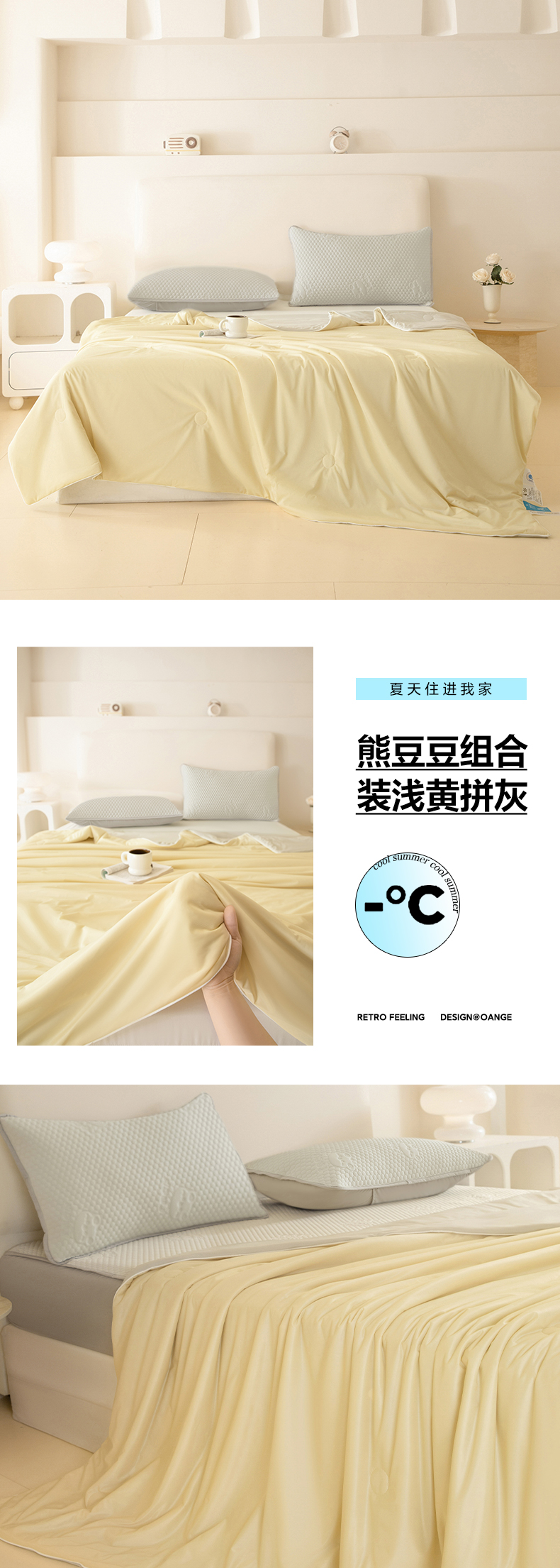 • 91家纺网 家纺一手货源 找家纺 莱登卡奴 2025新款A类凉感丝熊豆豆夏被四件套 熊豆豆组合装浅黄拼灰