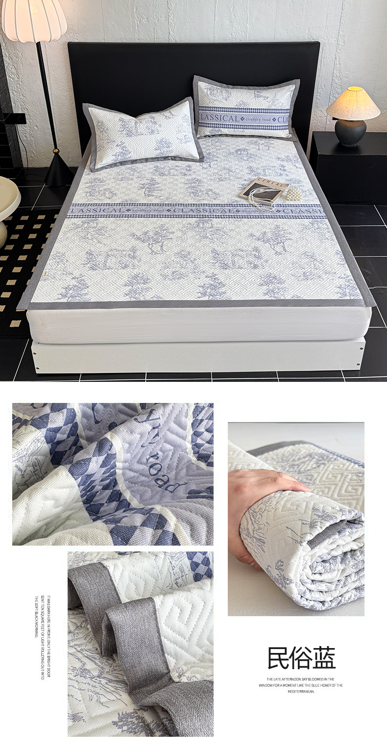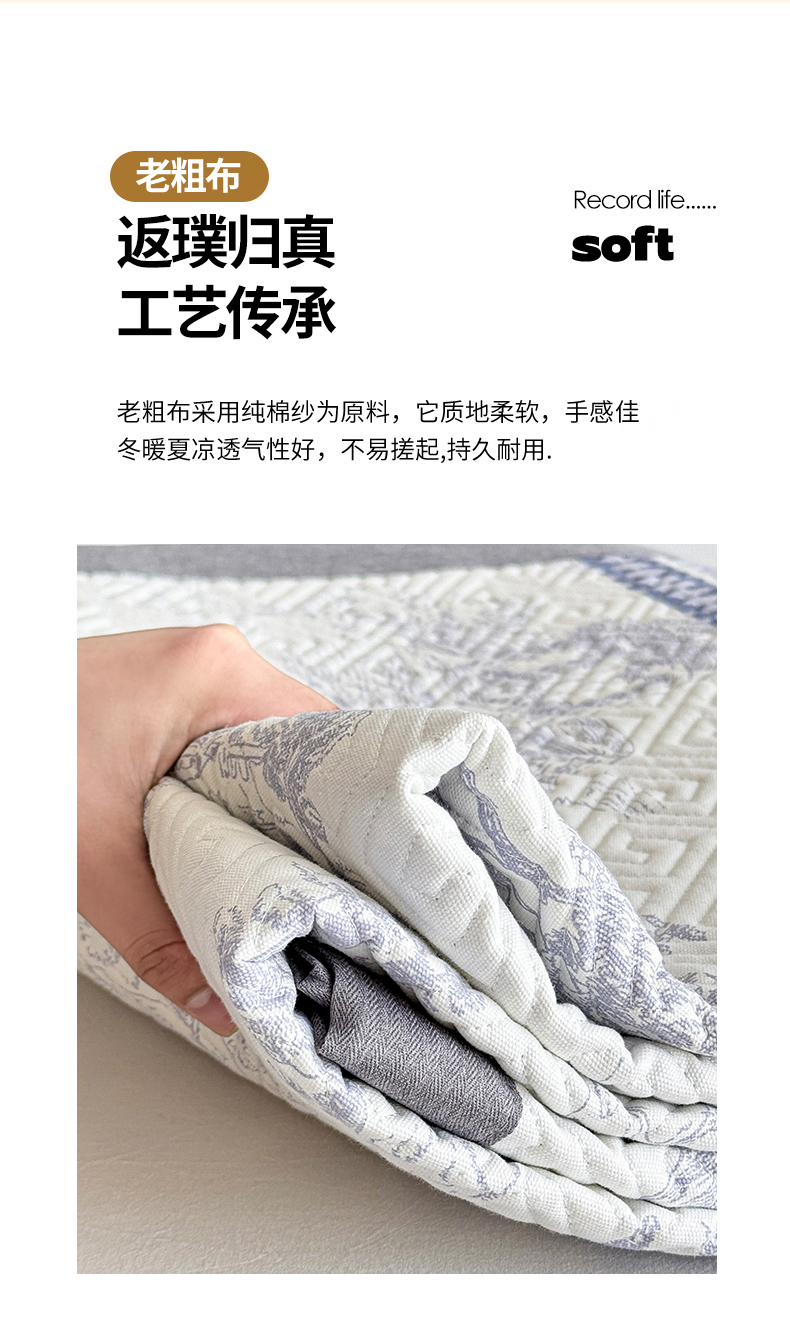 当前位置: 91家纺网 > 商品网购 > 床上用品 > 凉席 > 凉席套件 > 简宜家居(朝初家纺) 2025春夏新款全棉纯棉老粗布床单绗缝凉席席子 床褥 薄垫子 一席多用 民俗 蓝