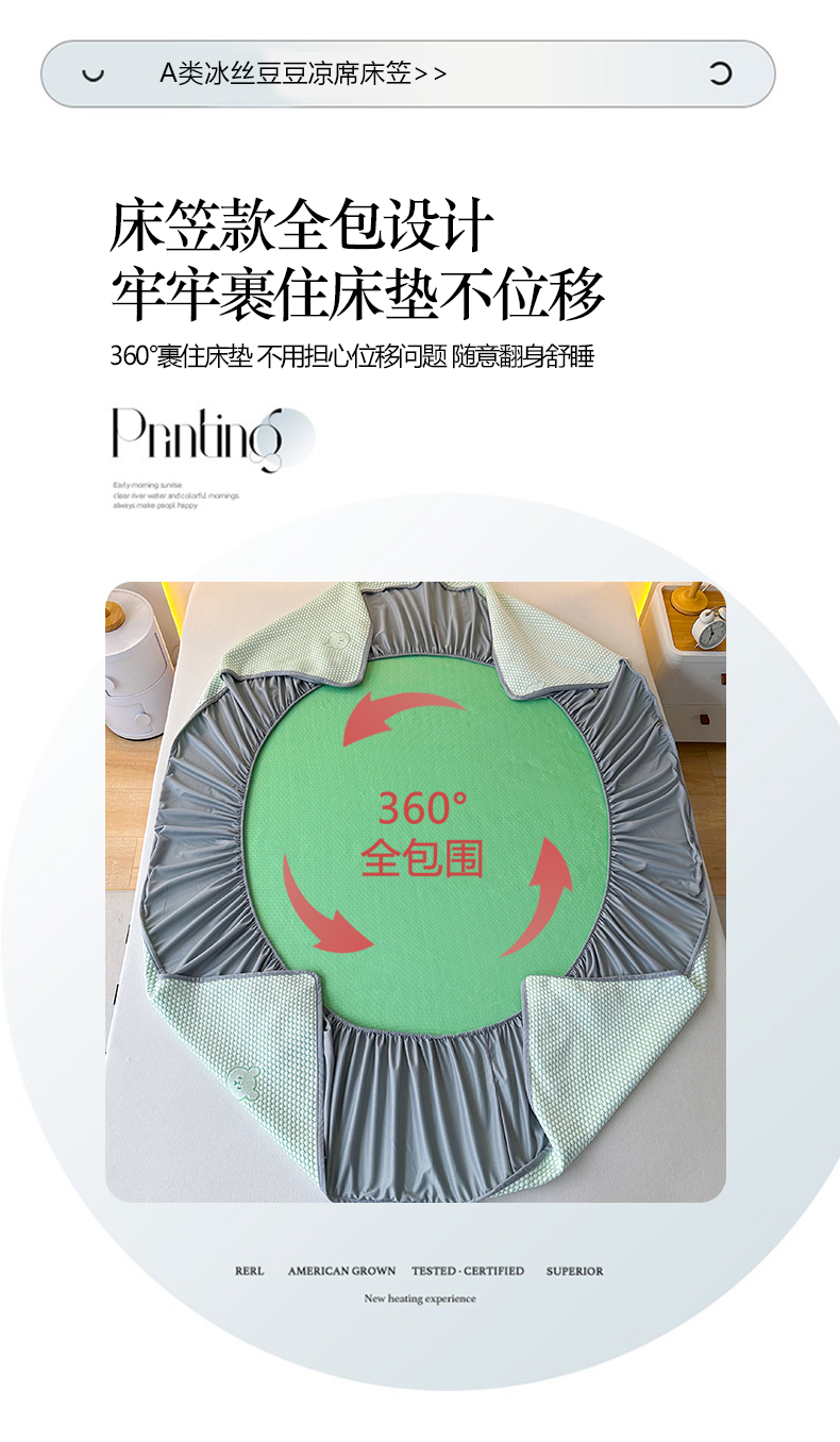 • 91家纺网 家纺一手货源 找家纺 (总)爱洛家纺 2025春夏新款A类冰丝豆豆凉席席子-床笠款