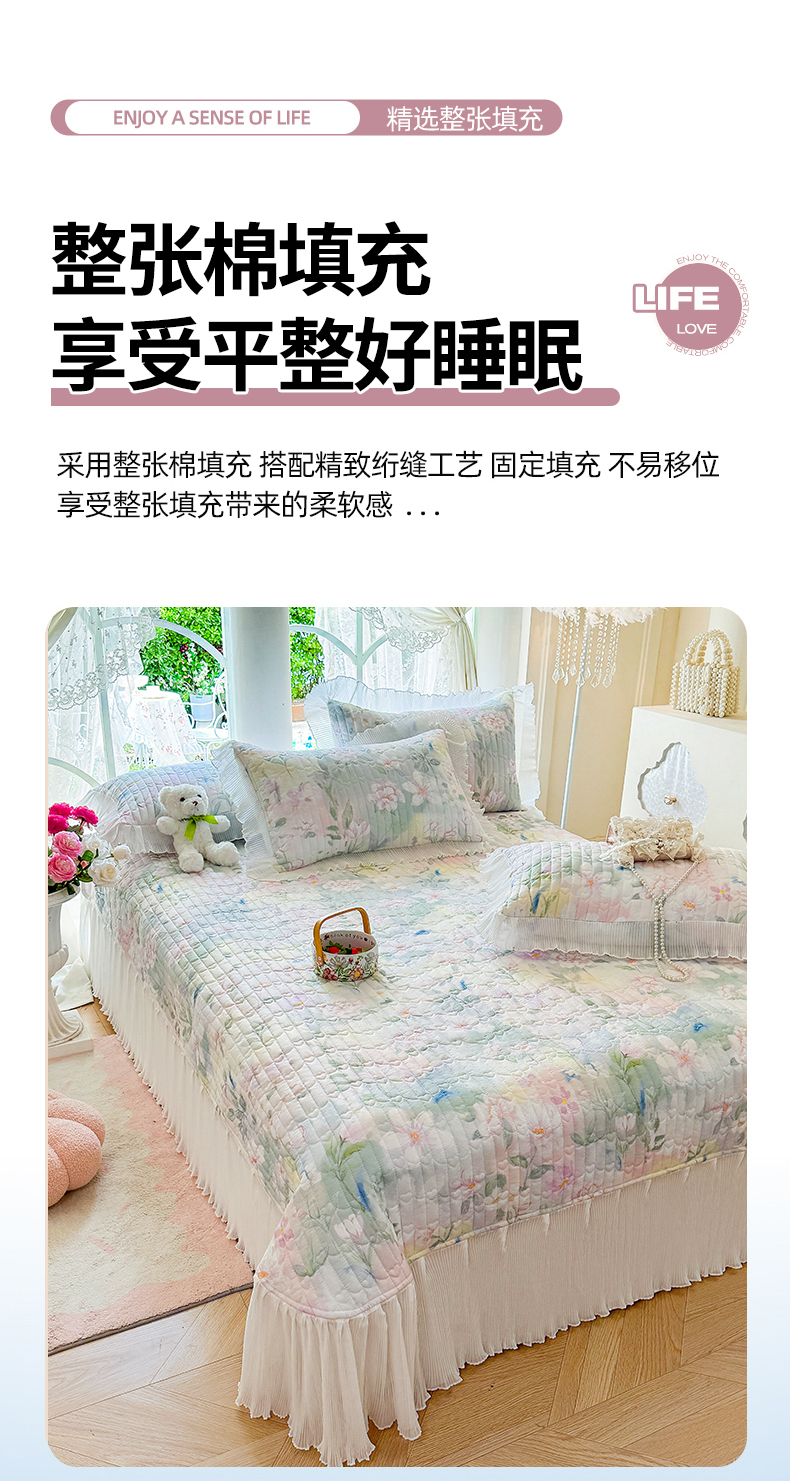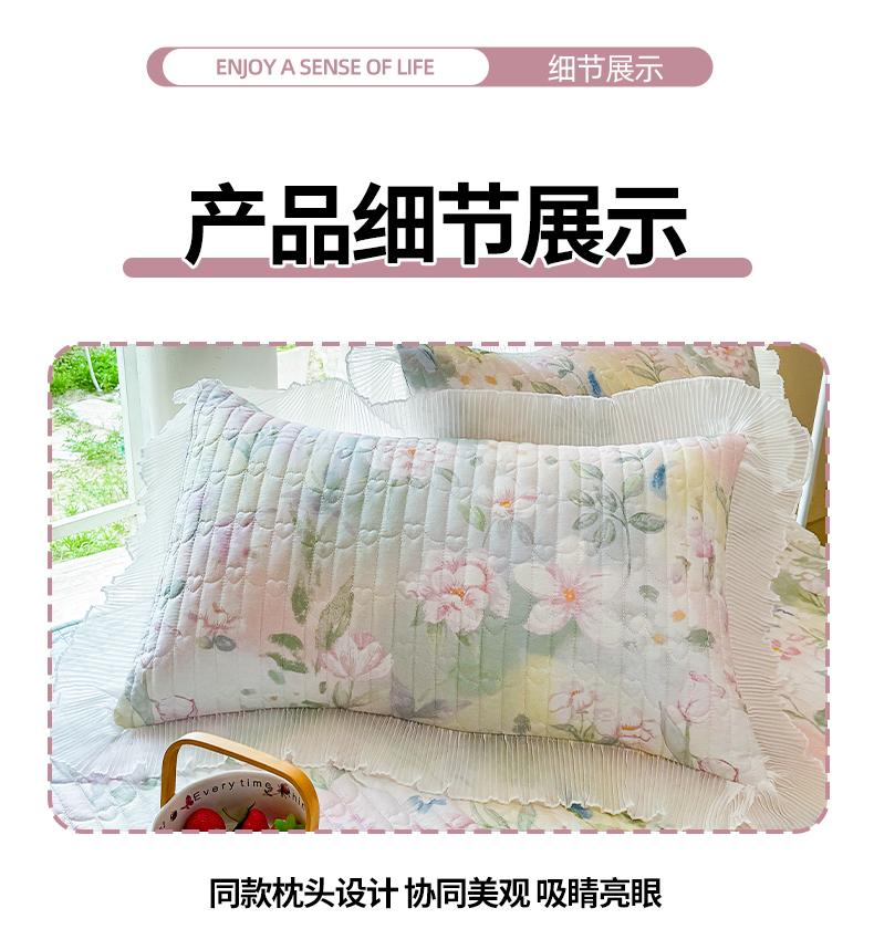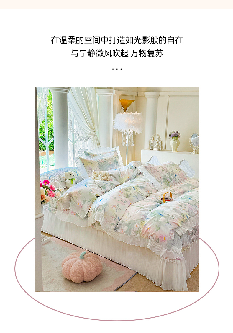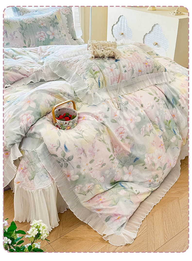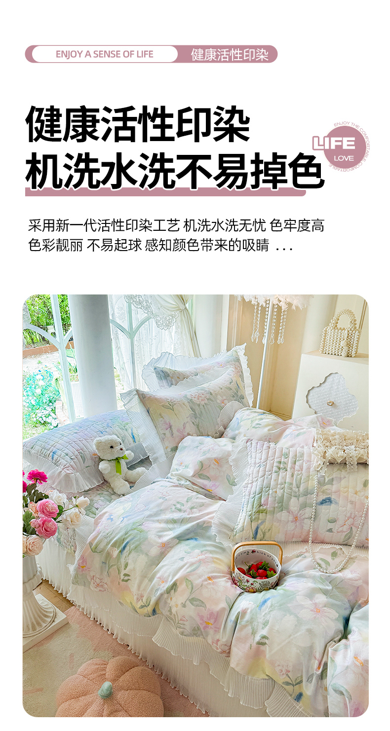 商品名称:虹星家纺 2025新款斜纹全棉纯棉印花床盖四件套-清甜 清甜-满芯花熙