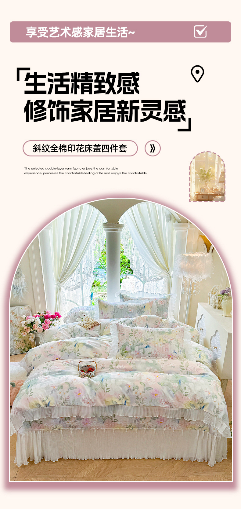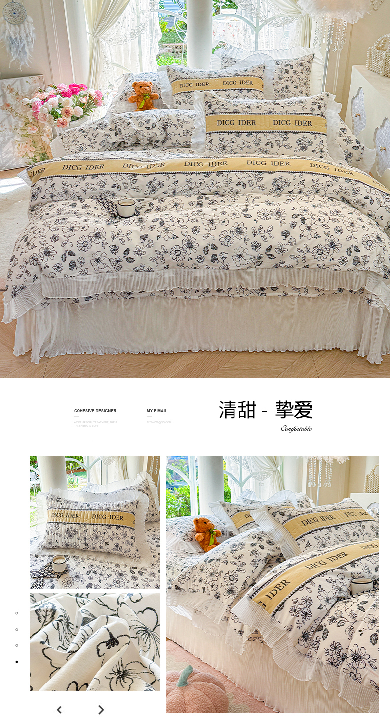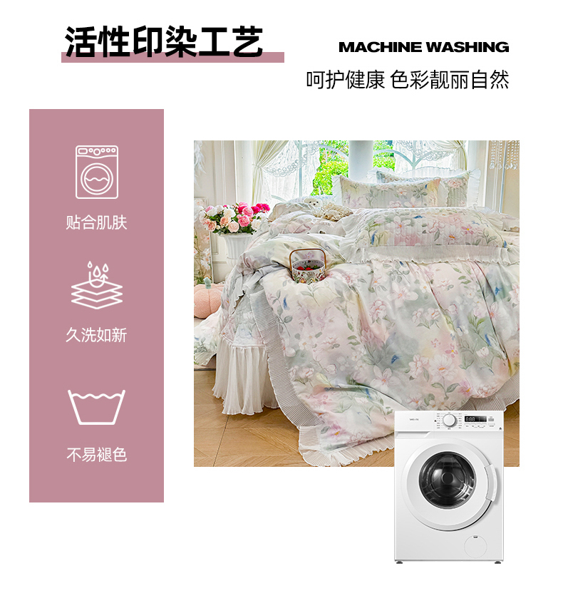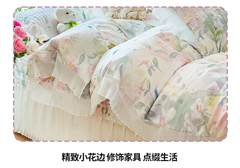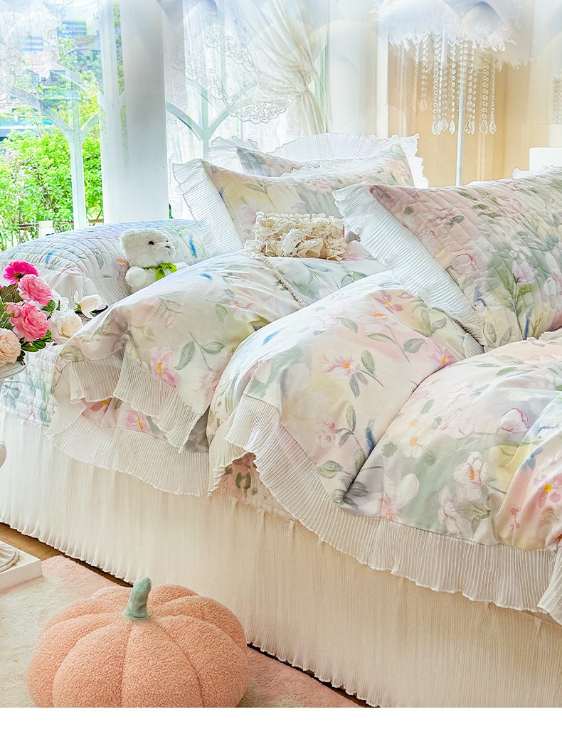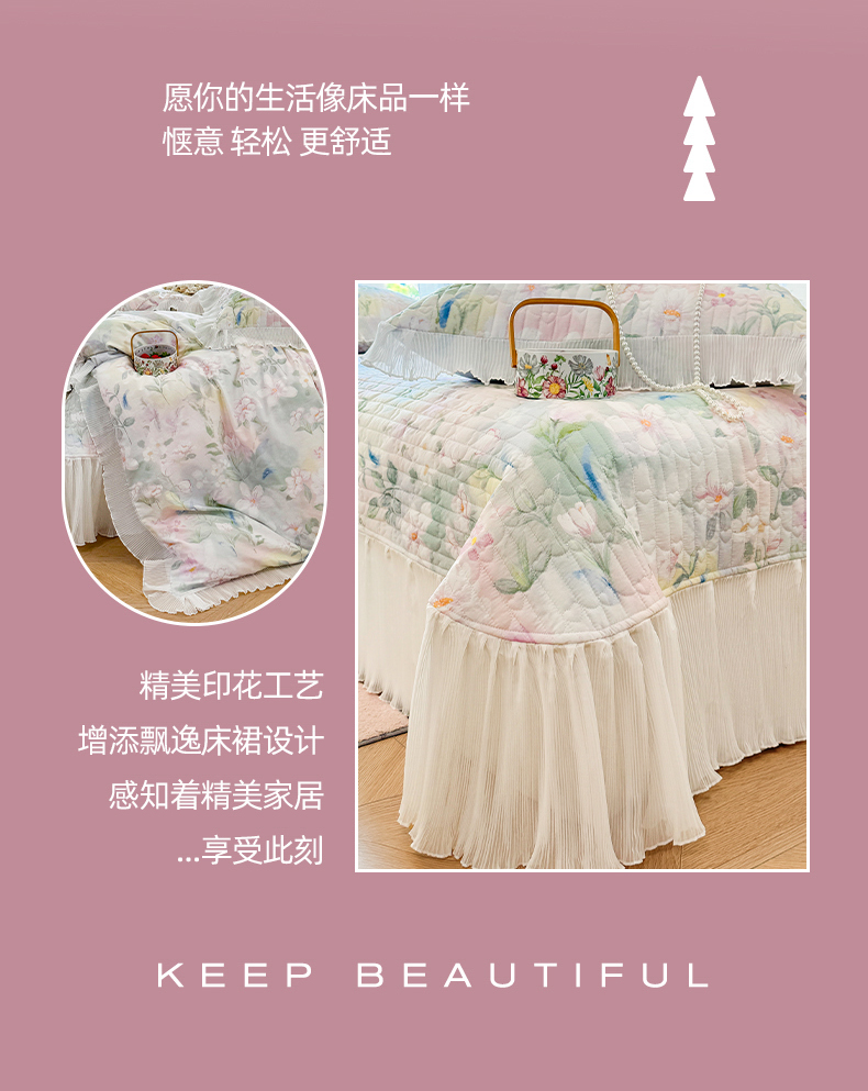 商品名称:虹星家纺 2025新款斜纹全棉纯棉印花床盖四件套-清甜 清甜-满芯花熙