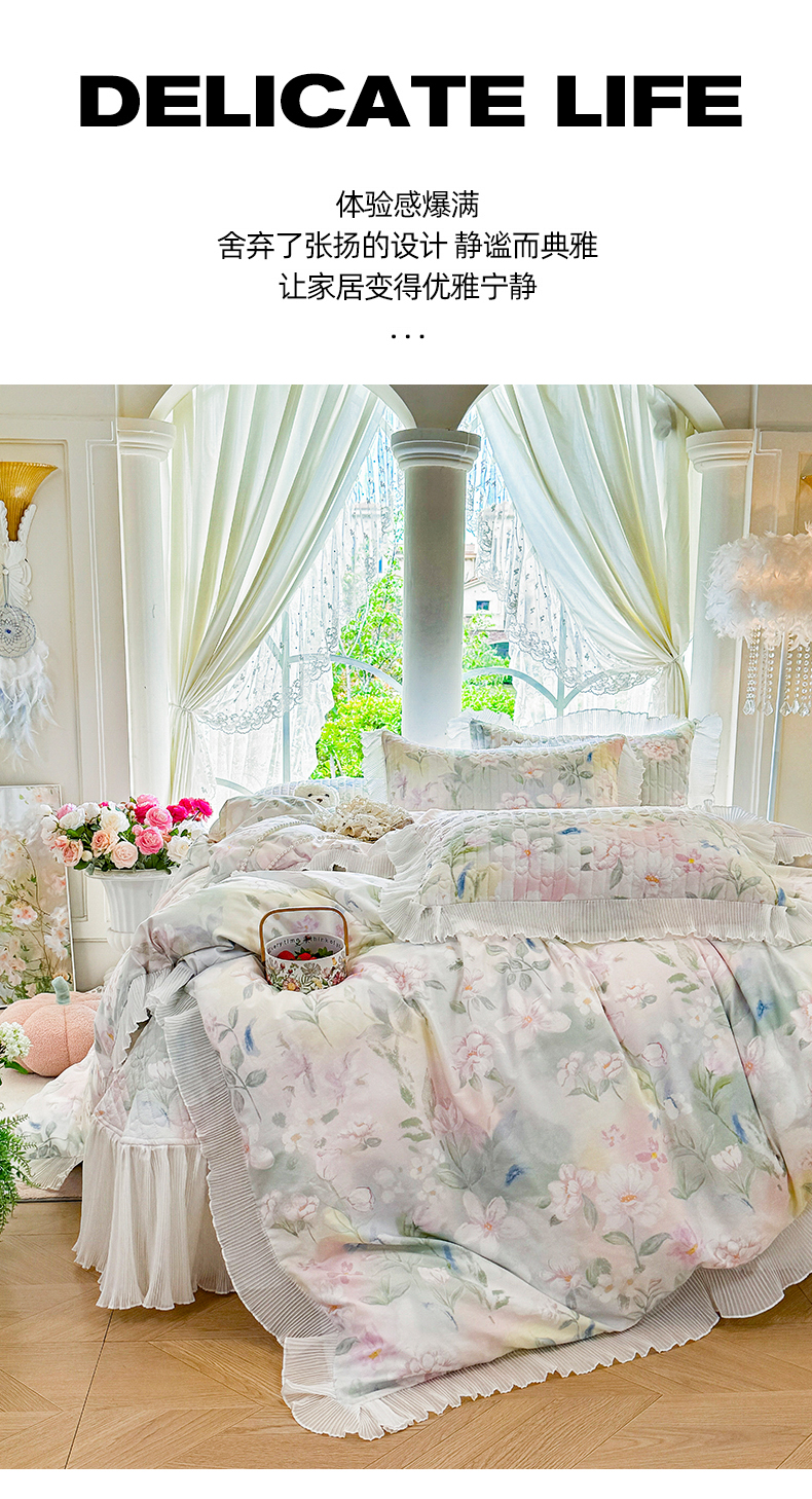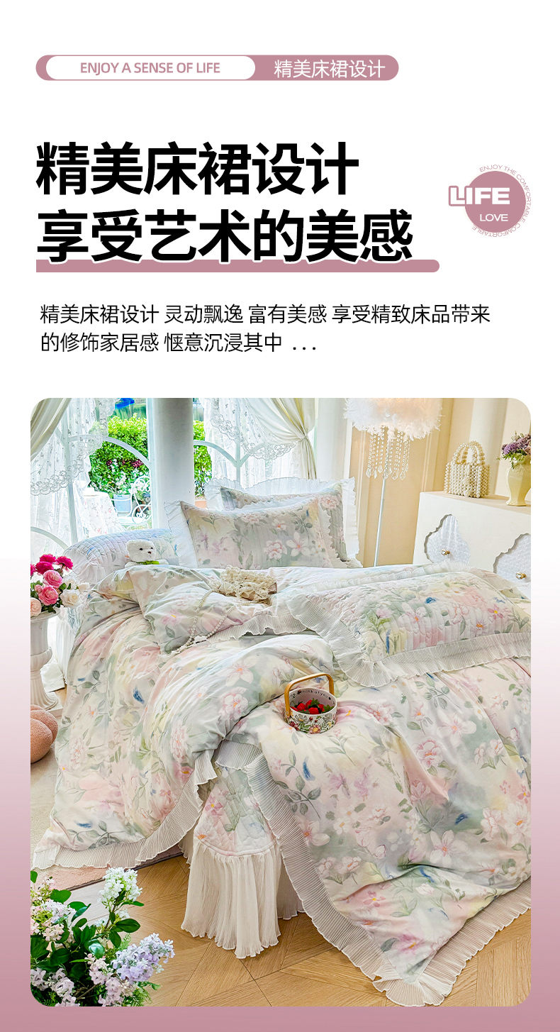 (总)虹星家纺 2025新款花边牛奶绒床裙四件套系列,蝶恋-粉玉,蝶恋-抹茶绿,蝶恋-奶茶色,蝶恋-葡萄紫,蝶恋-天空蓝