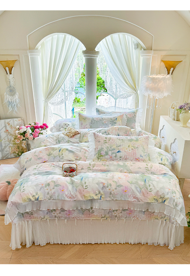 (总)虹星家纺 2025年新款全棉床盖四件套-花影倾梦,花影倾梦-浅米色,花影倾梦-薄荷绿,花影倾梦-天空蓝,花影倾梦-樱花粉,花影倾梦-优雅紫,花影倾梦-云朵白