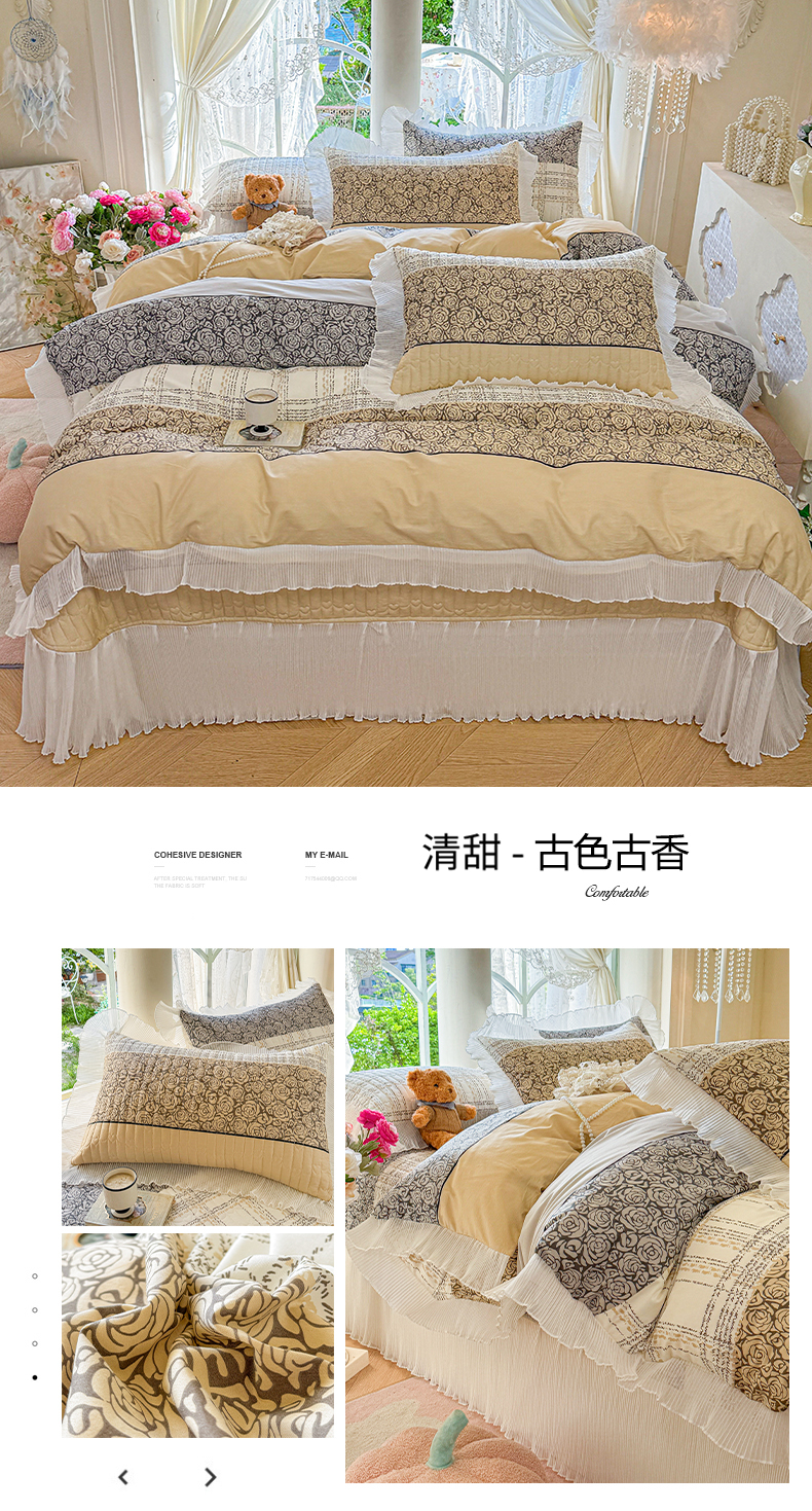 (总)虹星家纺 2025新款雕花牛奶绒床裙四件套-花溪系列,花溪-米黄,花溪-奶油黄