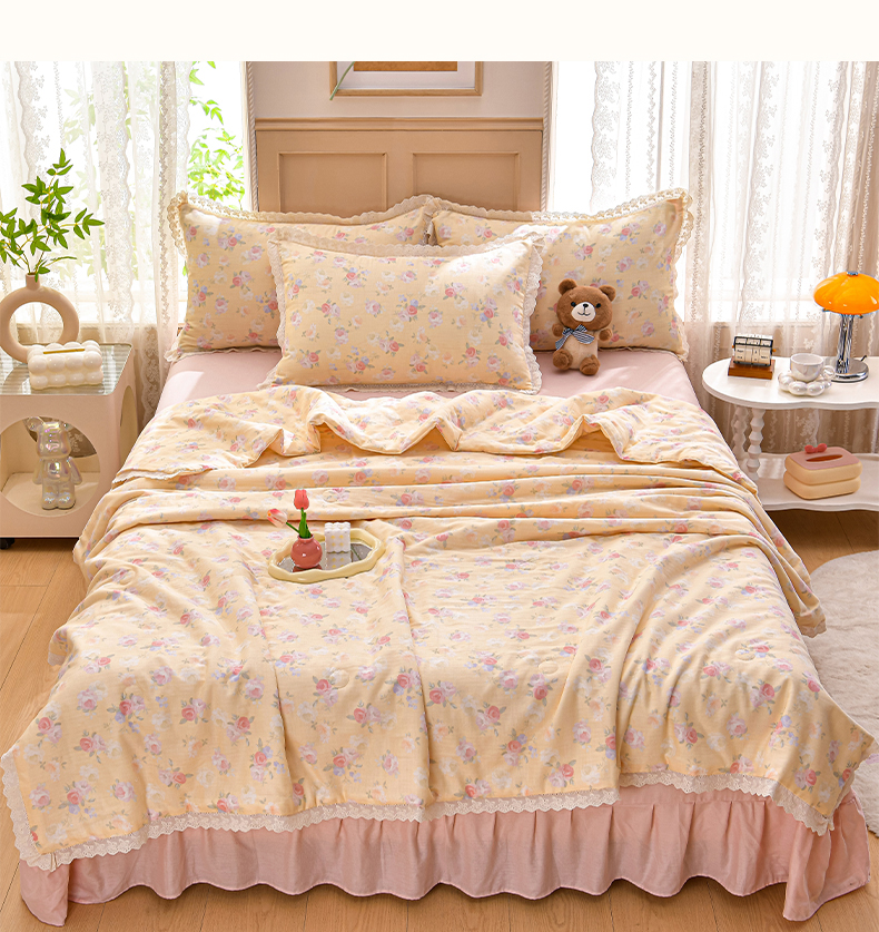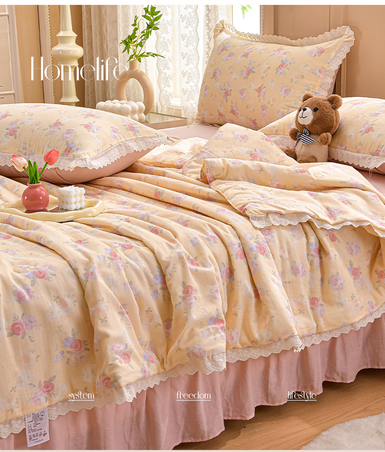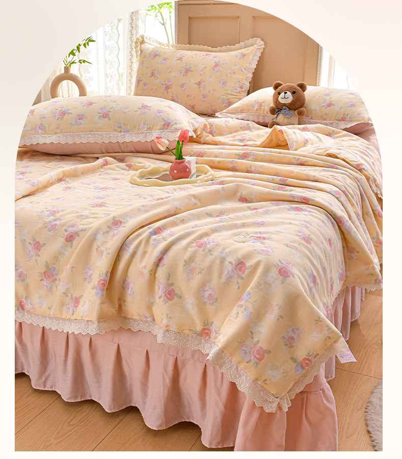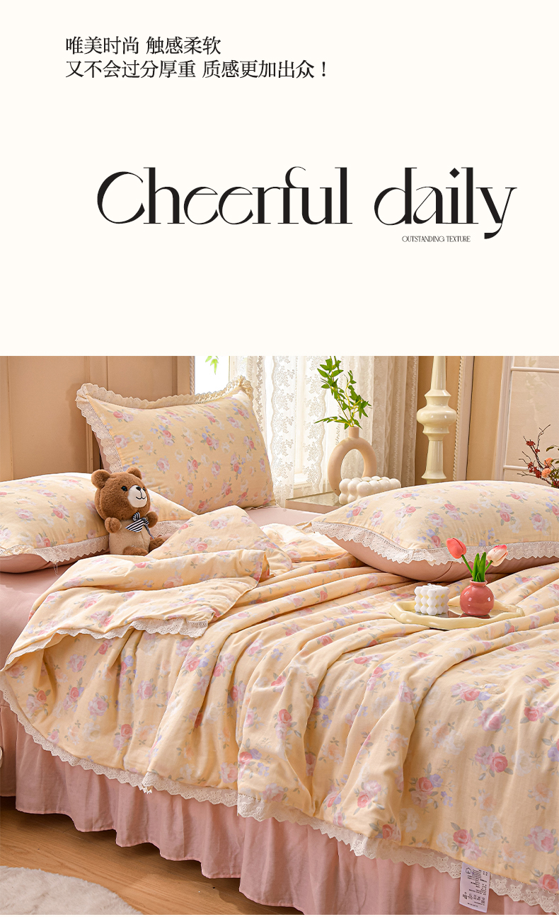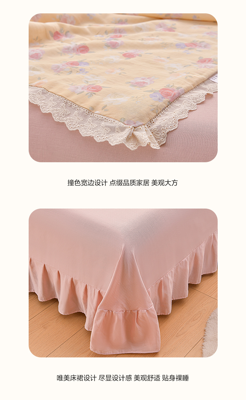 绘萱家居 2025新款100%全棉双层纱花边床裙款夏被四件套