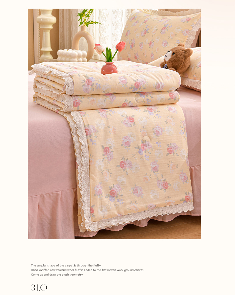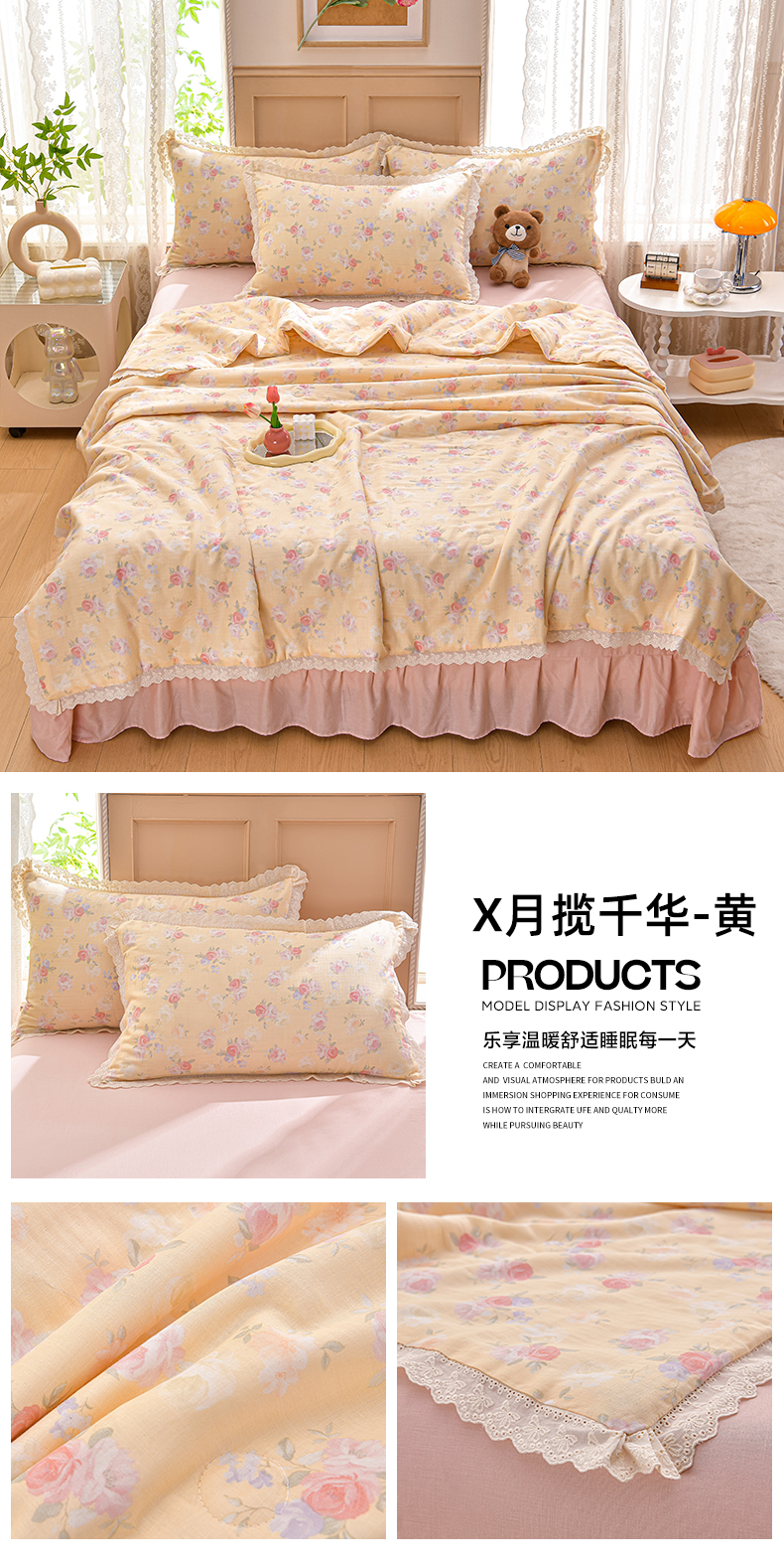 商品名称:绘萱家居 2025新款100%全棉双层纱花边床裙款夏被四件套