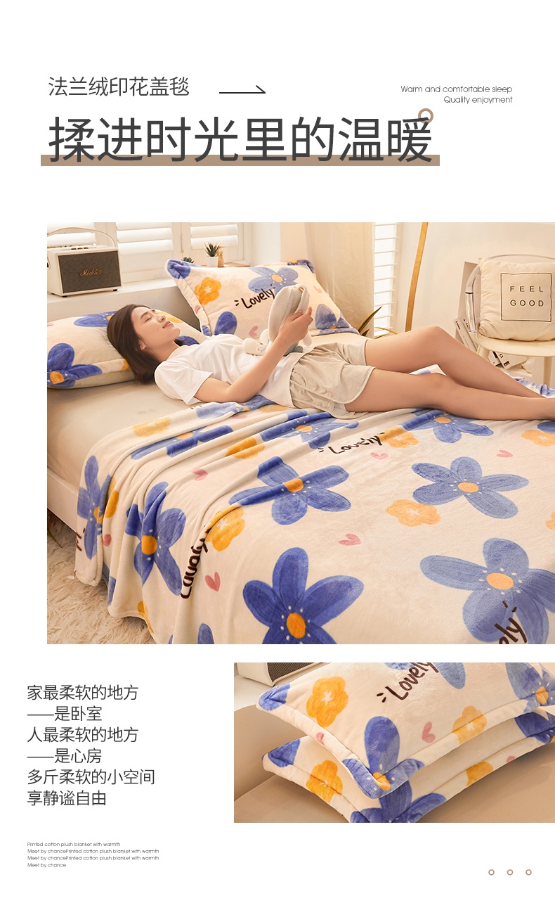 合纵跨境工厂 2025新款印花牛奶绒毛毯法莱绒雪花绒贝贝绒双面绒毛毯跨境外贸JIT一件代发TEMU亚马逊希音包过核价印花毛毯 阳春三月