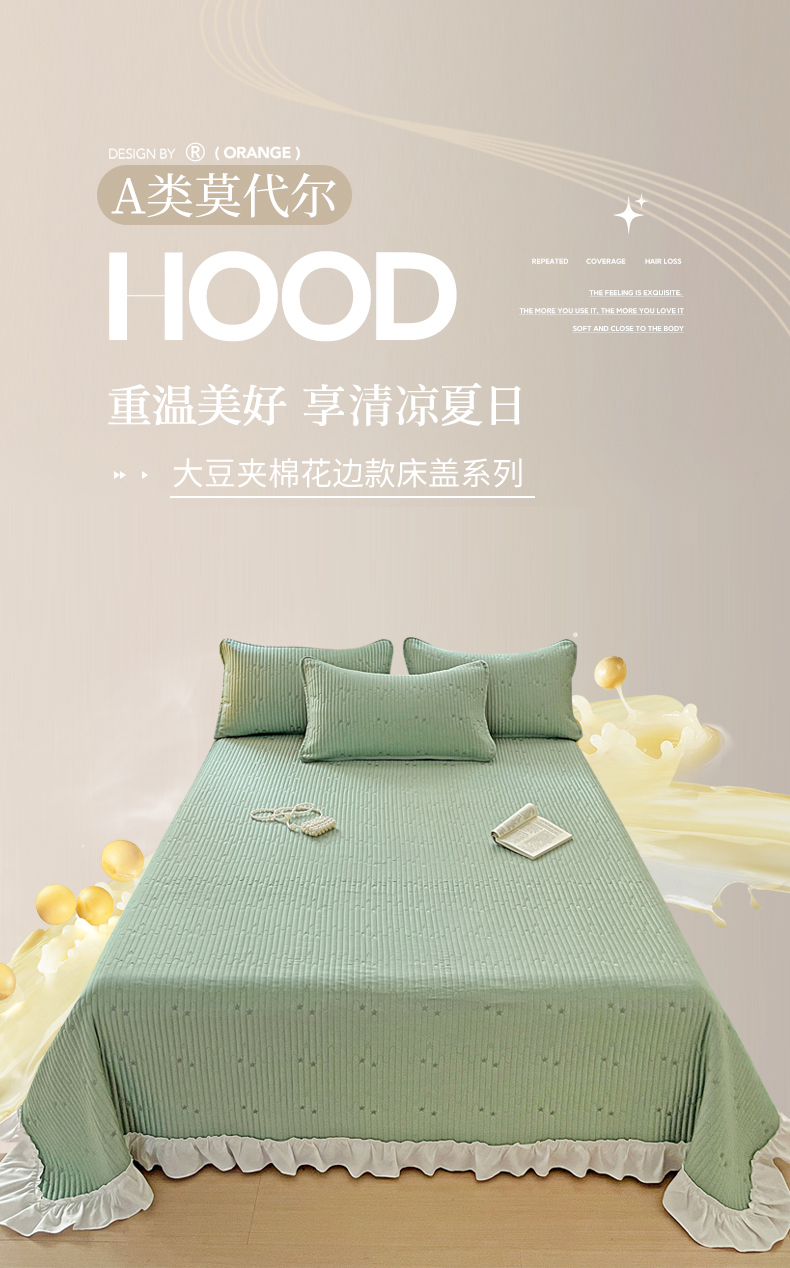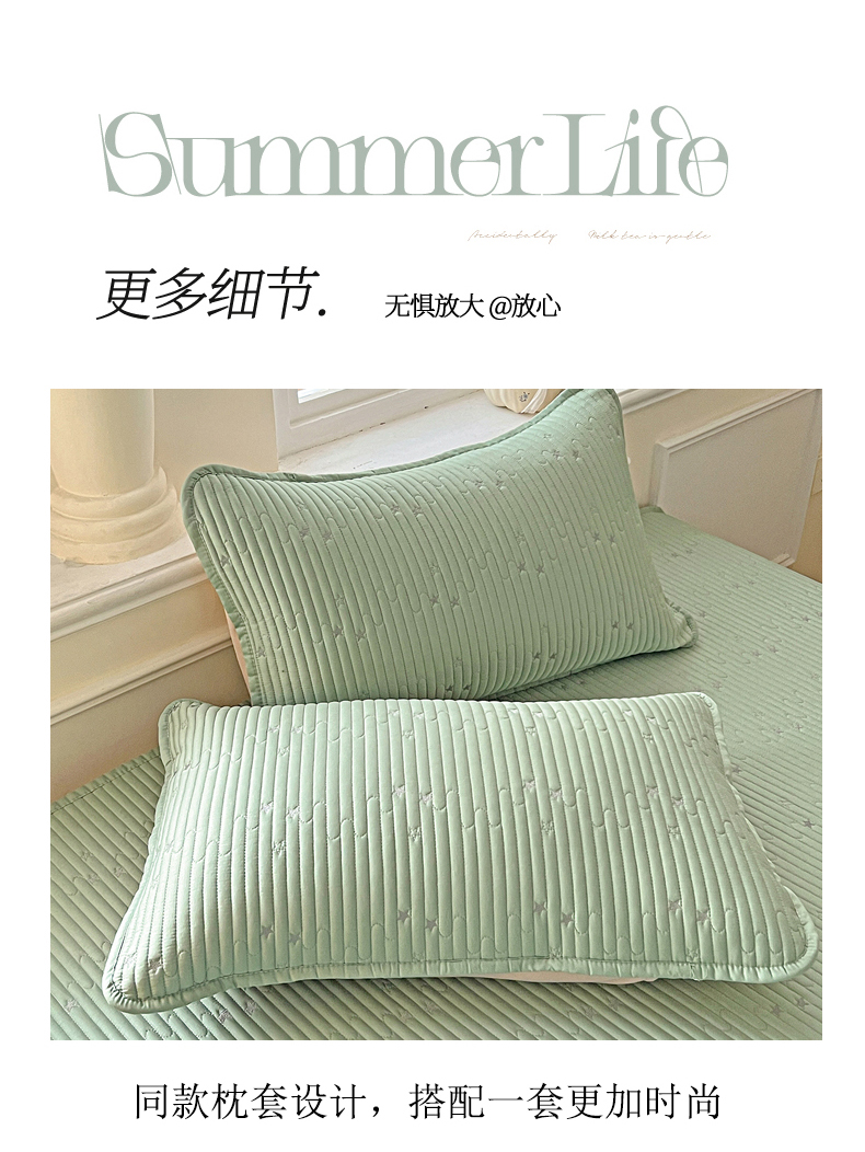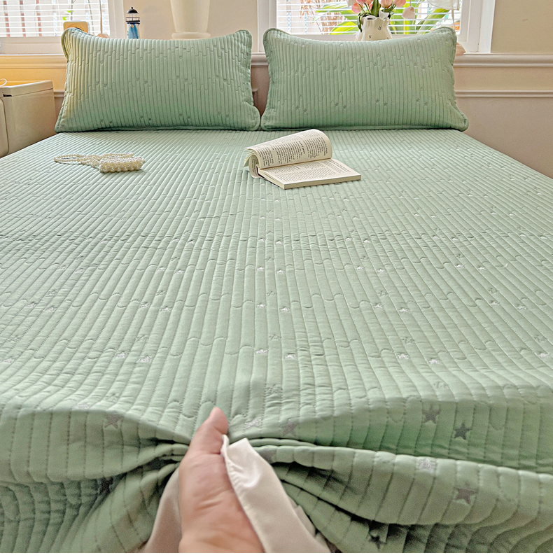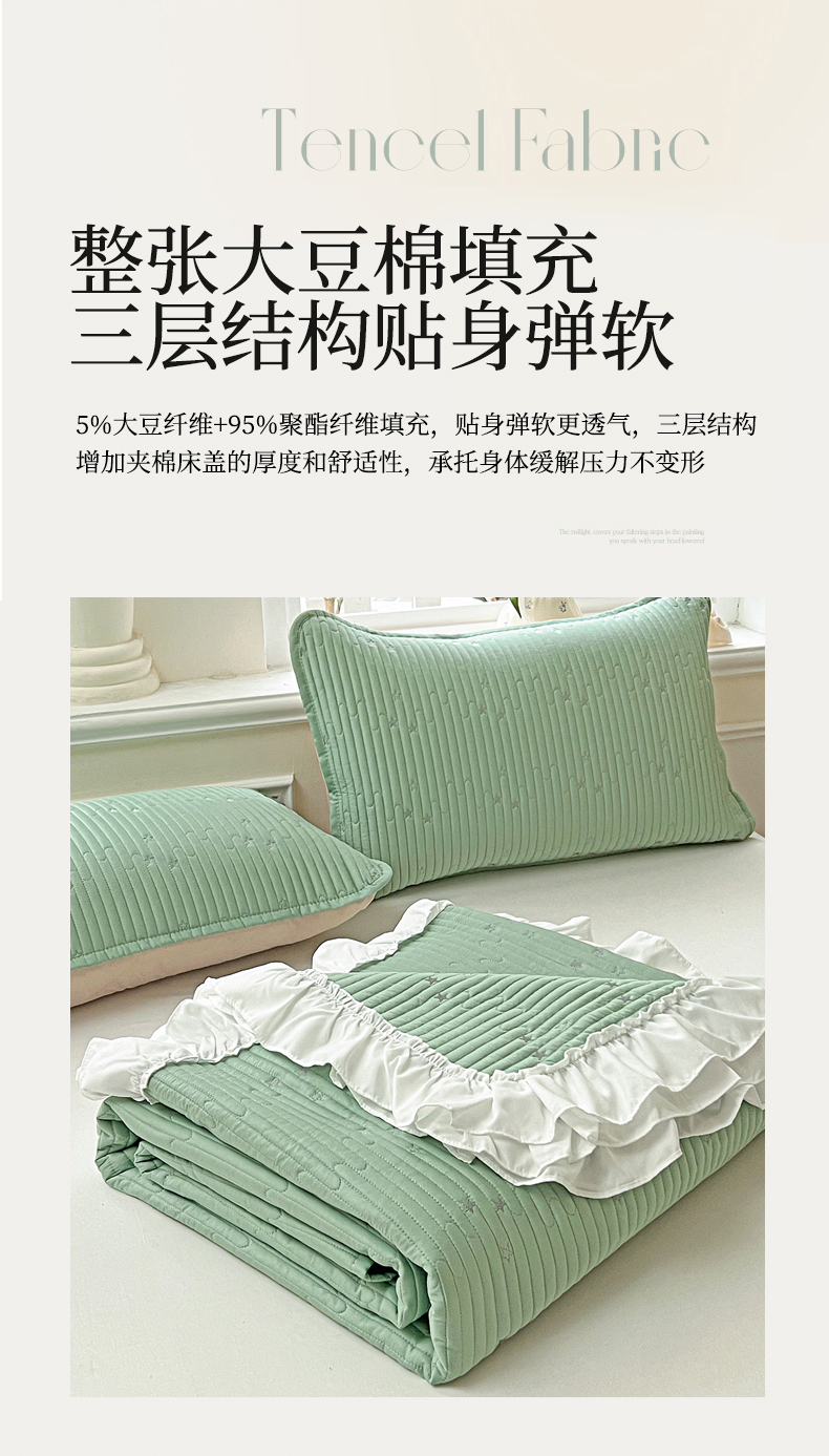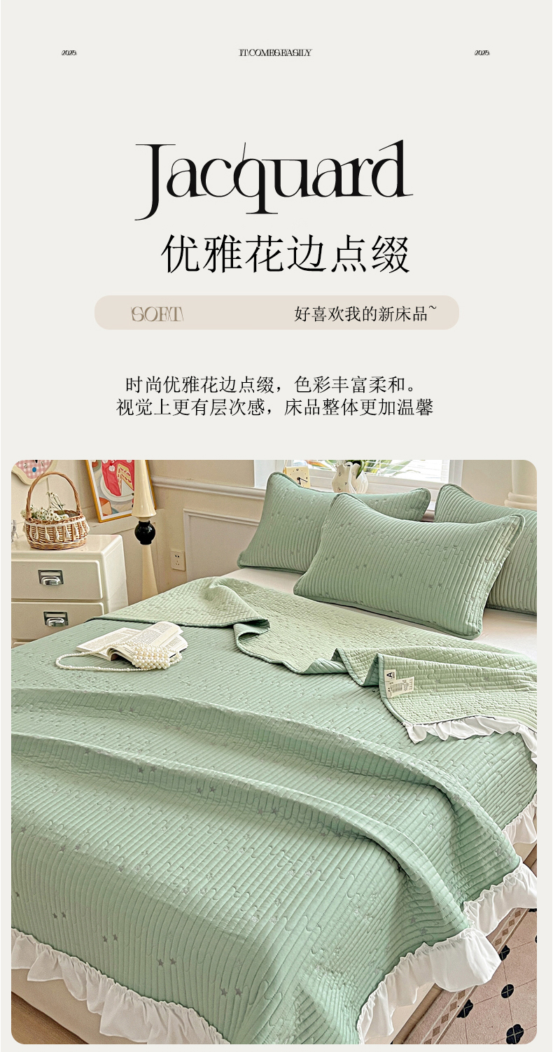 • 91家纺网 家纺一手货源 找家纺 恒尚居2025花边床盖莫代尔夏季夹棉床单星星刺绣绗缝三件套 夏时光-绿