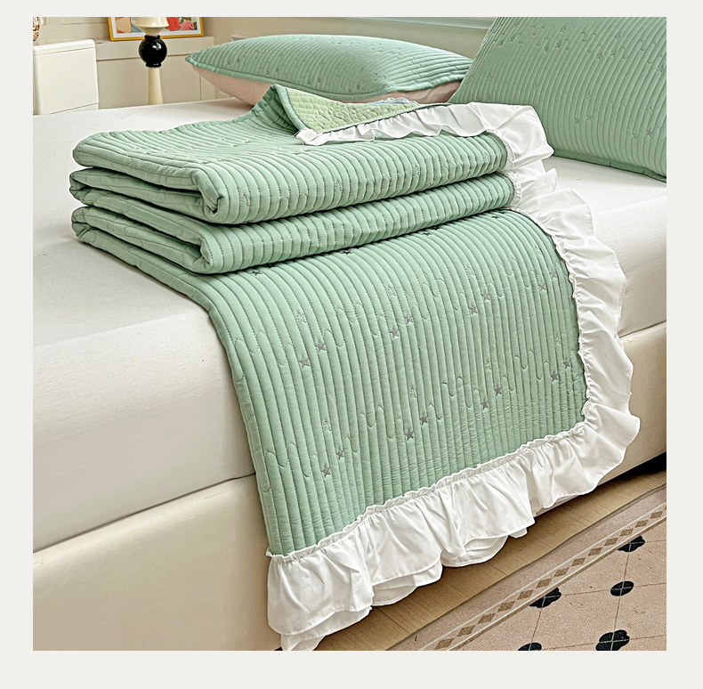 • 91家纺网 家纺一手货源 找家纺 恒尚居2025花边床盖莫代尔夏季夹棉床单星星刺绣绗缝三件套 夏时光-绿 91家纺网 家纺一手货源 找家纺 恒尚居2025花边床盖莫代尔夏季夹棉床单星星刺绣绗缝三件套 夏时光-绿