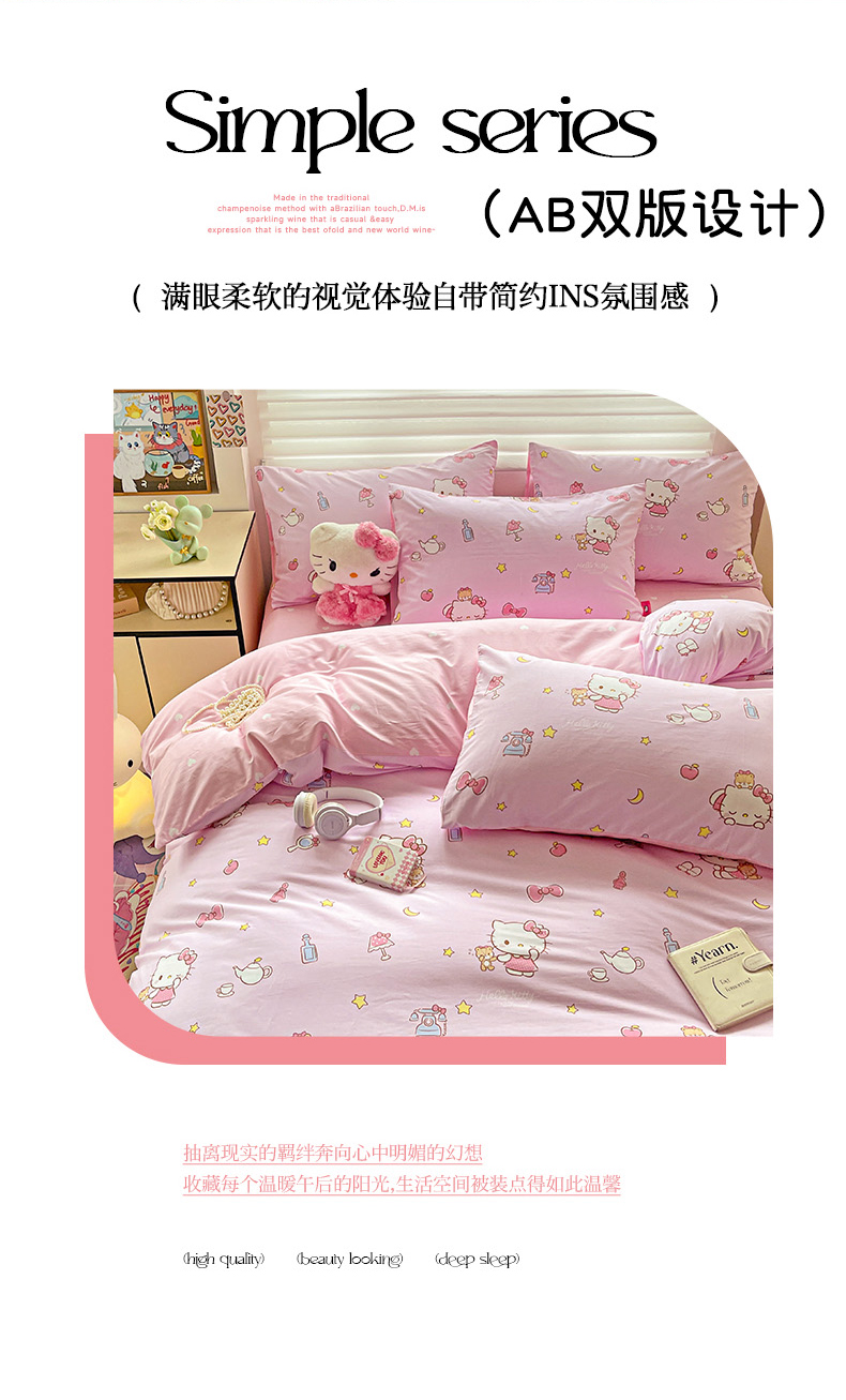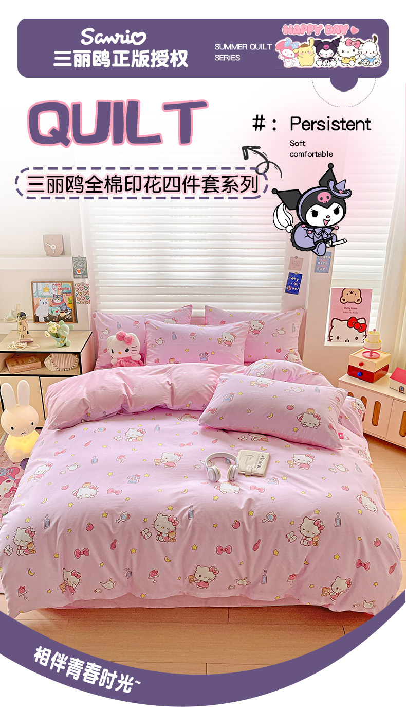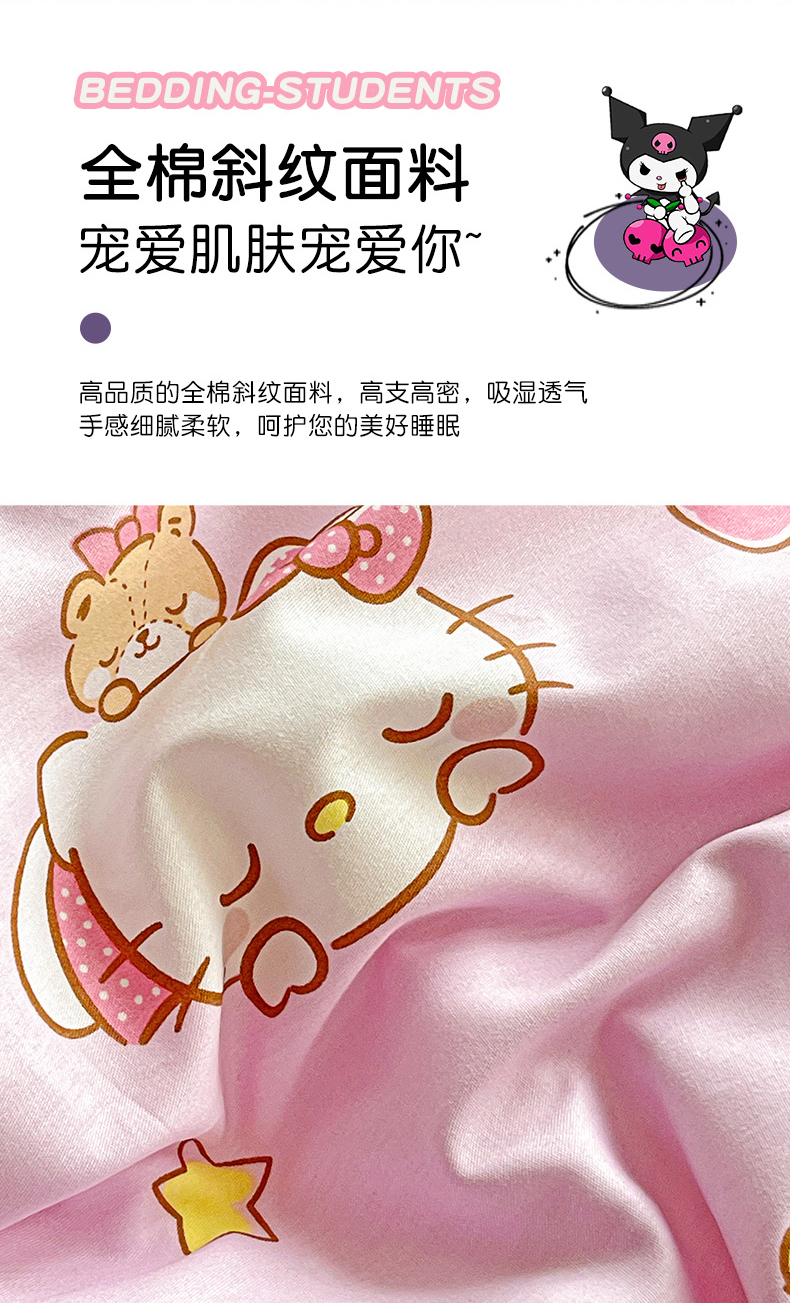 (总)朵希曼 2026新款三丽鸥全棉印花四件套系列,点点美乐蒂,红格凯蒂,蘑菇凯蒂,甜甜凯蒂,晚安大耳狗,樱桃凯蒂,元气美乐蒂,运动凯蒂