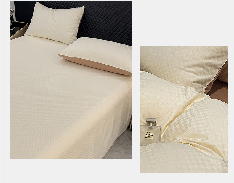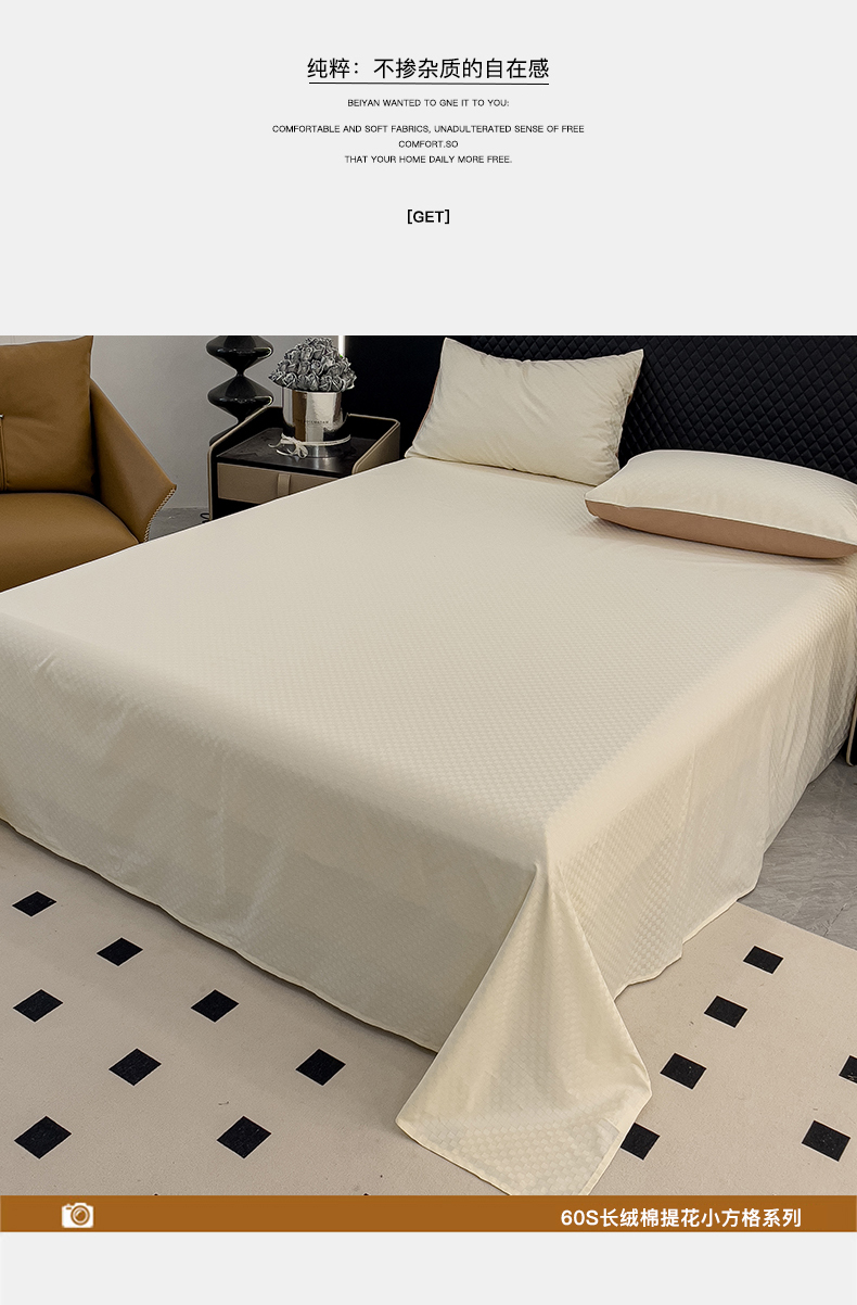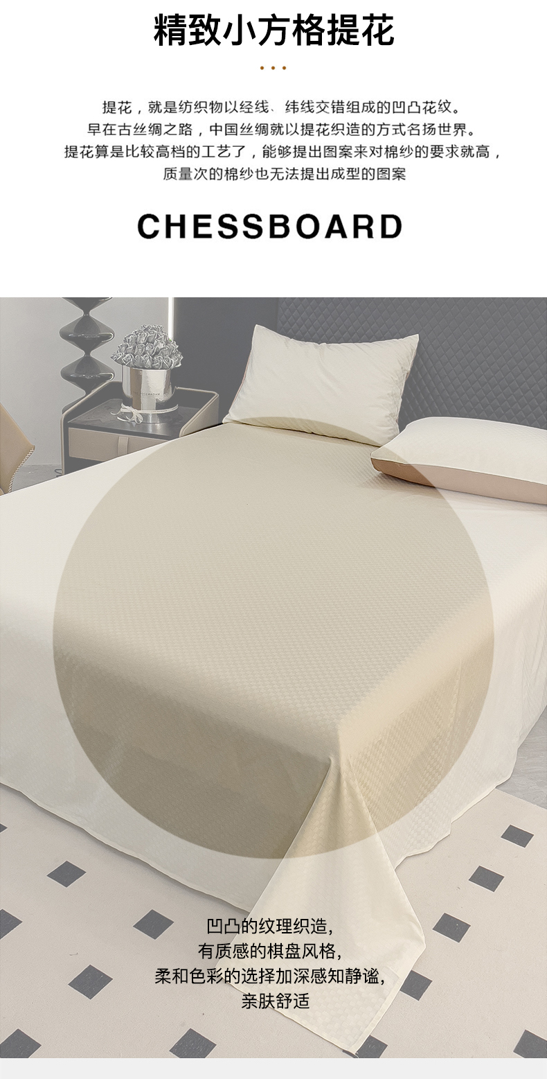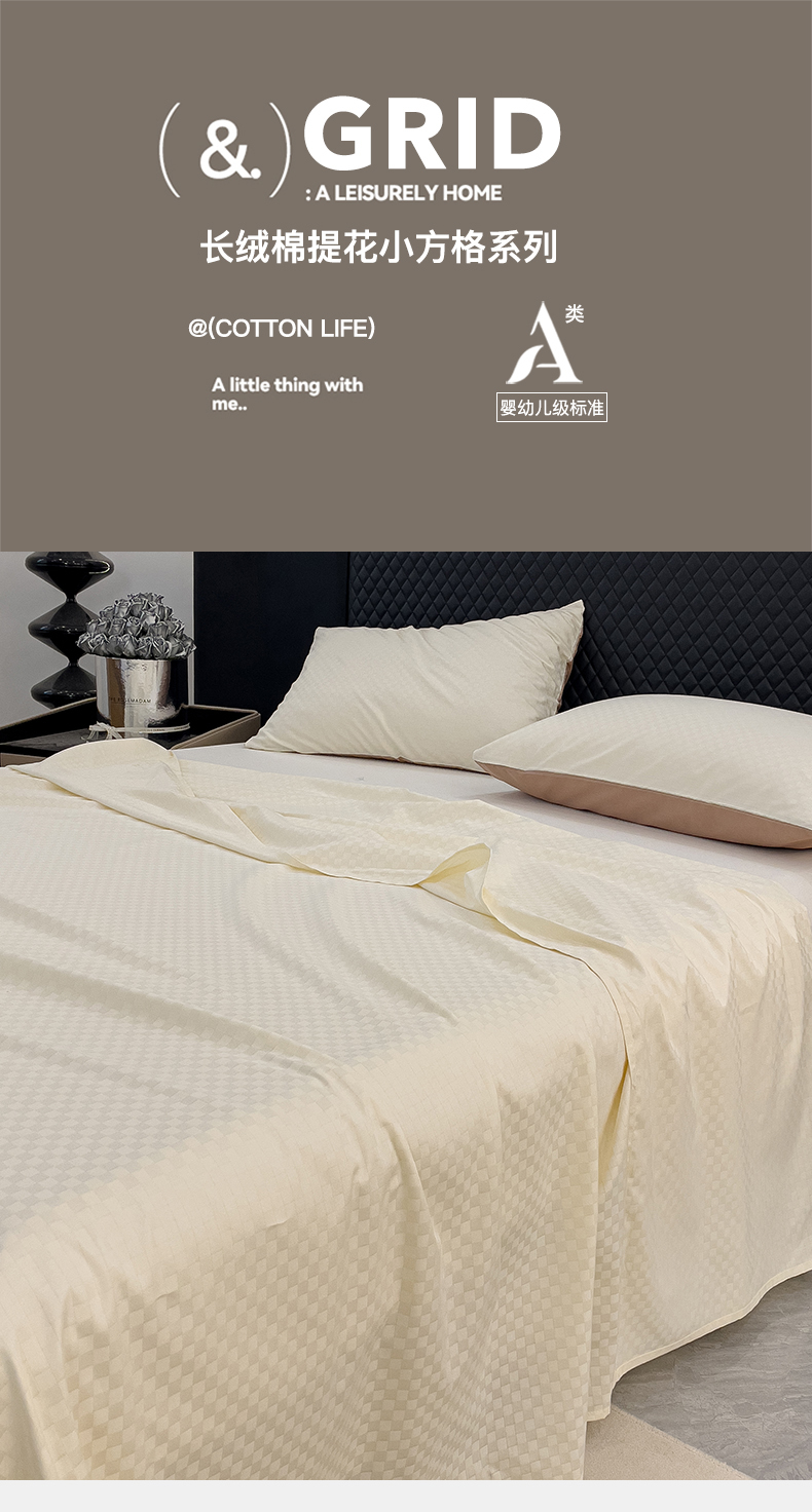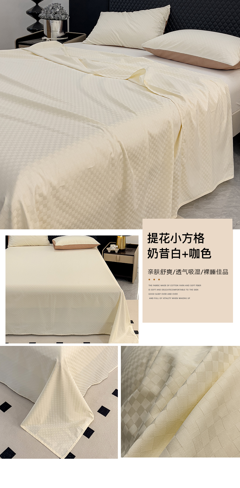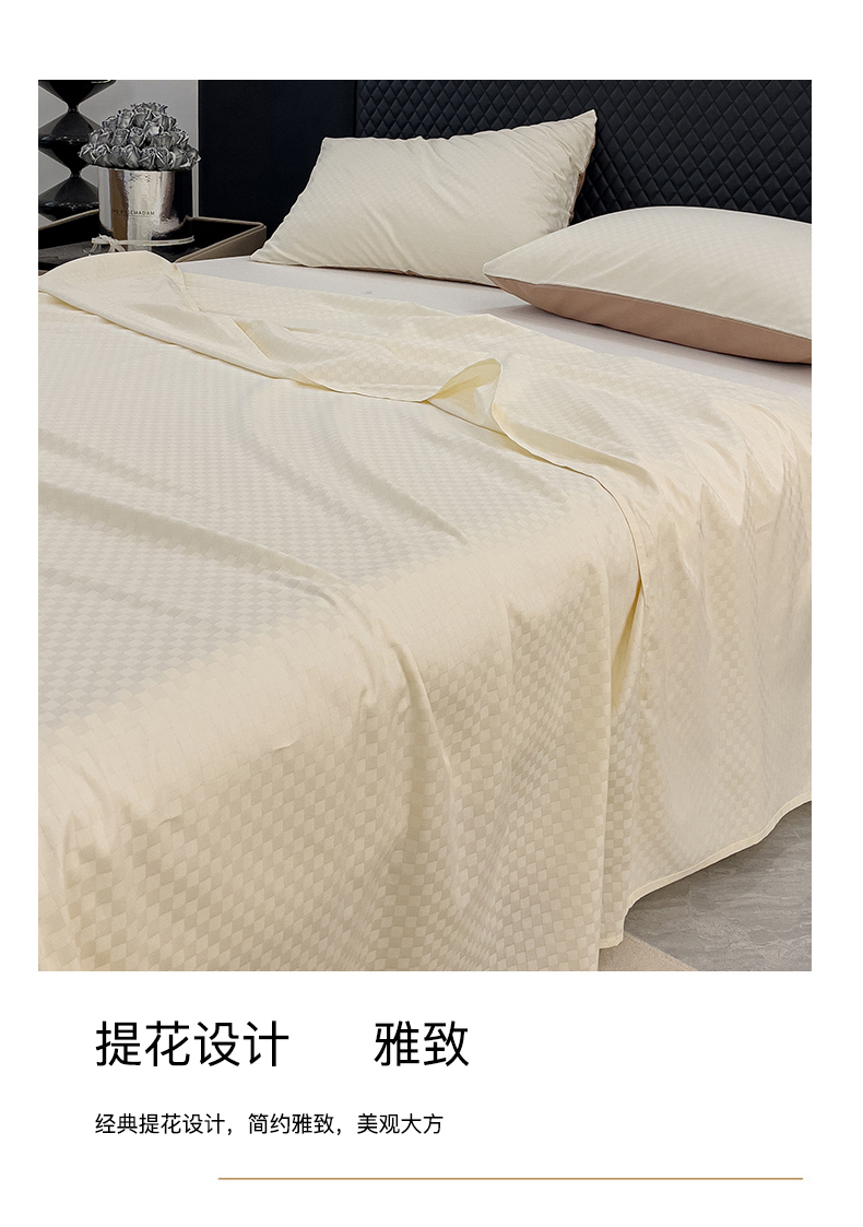 金鑫汇家纺 2024新款长绒棉提花小方格系列四件套单品系列-单床单 奶昔白+咖