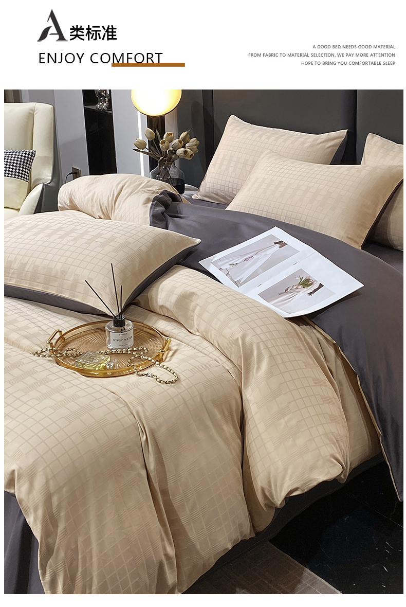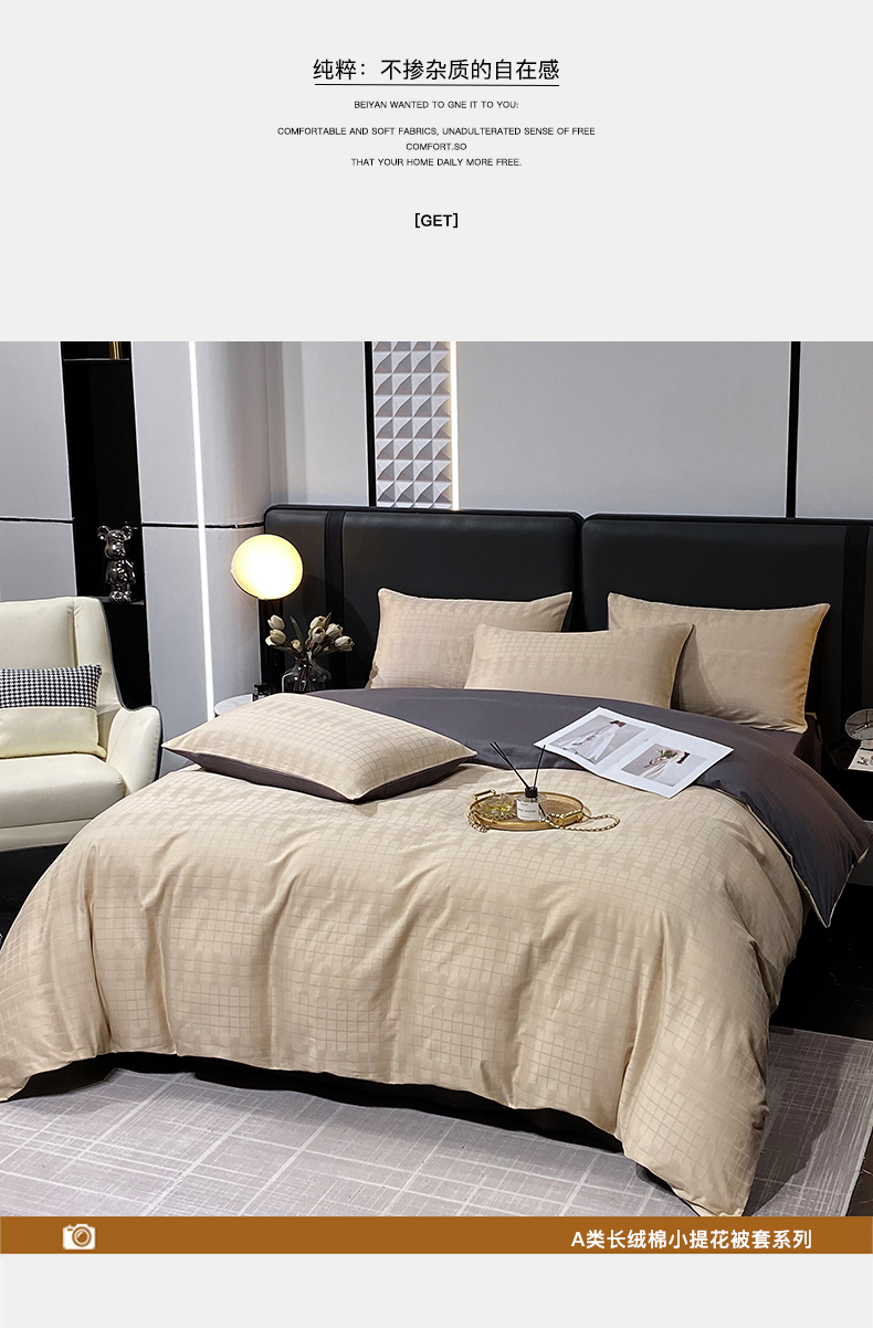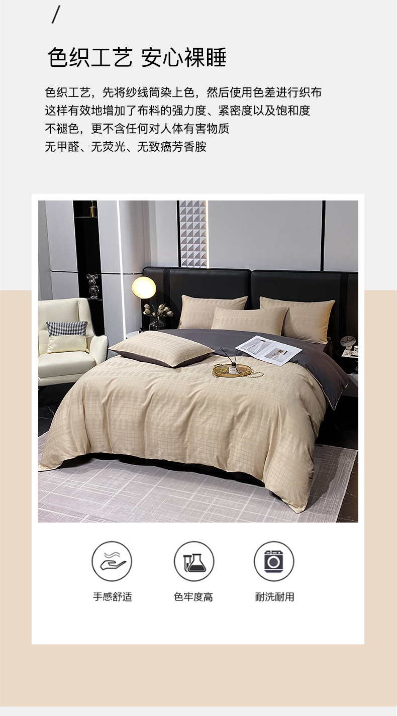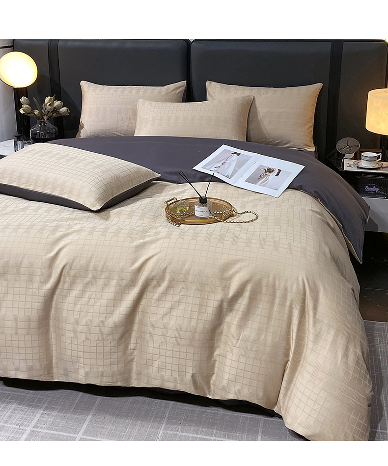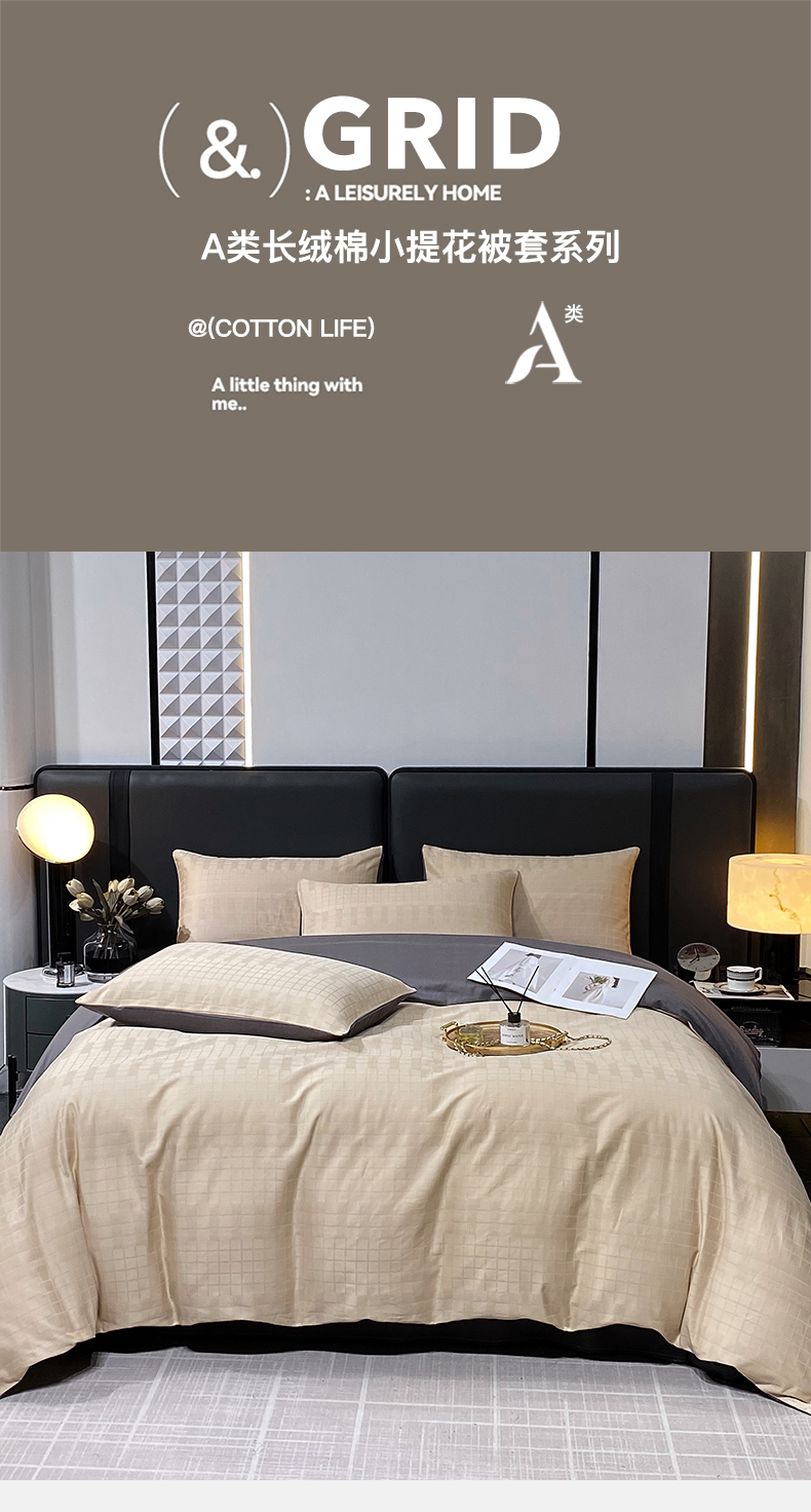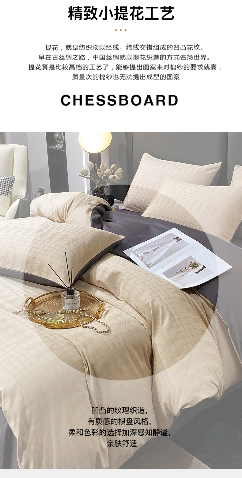 金鑫汇家纺 2024新款长绒棉提花小方格系列四件套单品系列-单被套 纵横阡陌