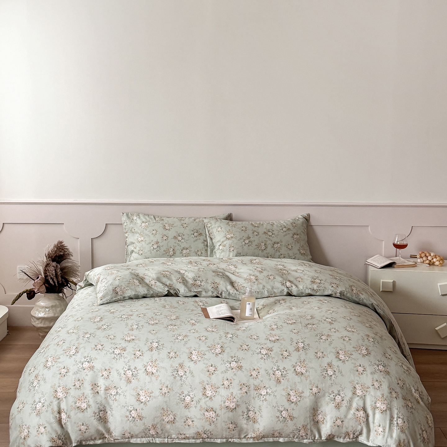 当前位置: 91家纺网 > 商品网购 > 床品套件 > 四件套 > 双层纱四件套 > 窝米 2025新品全棉双层纱法式风花卉四件套系列(蔷薇绿 月丹) 墨瑜