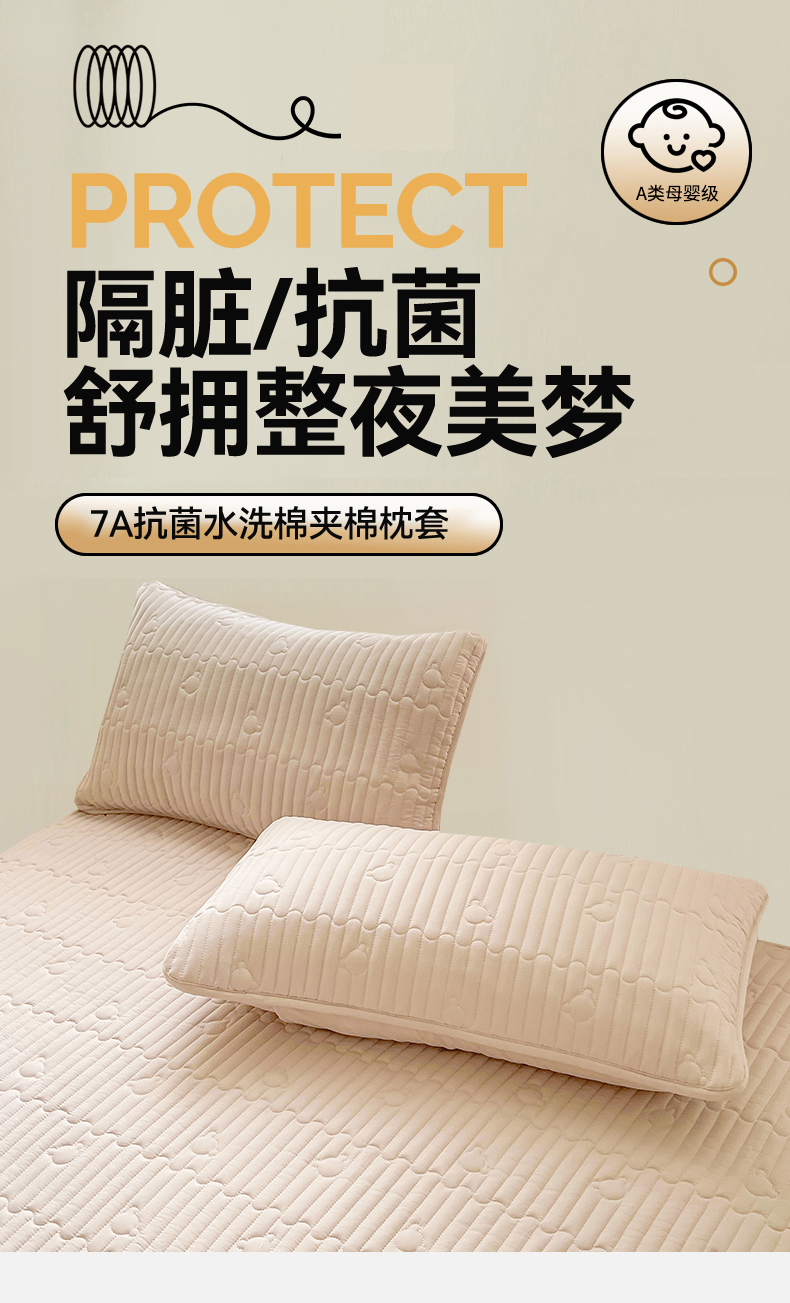 商品名称:雯豆家纺 2025新品夹棉防水放污枕套枕芯保护套一对装单只枕皮 洛川-奶咖