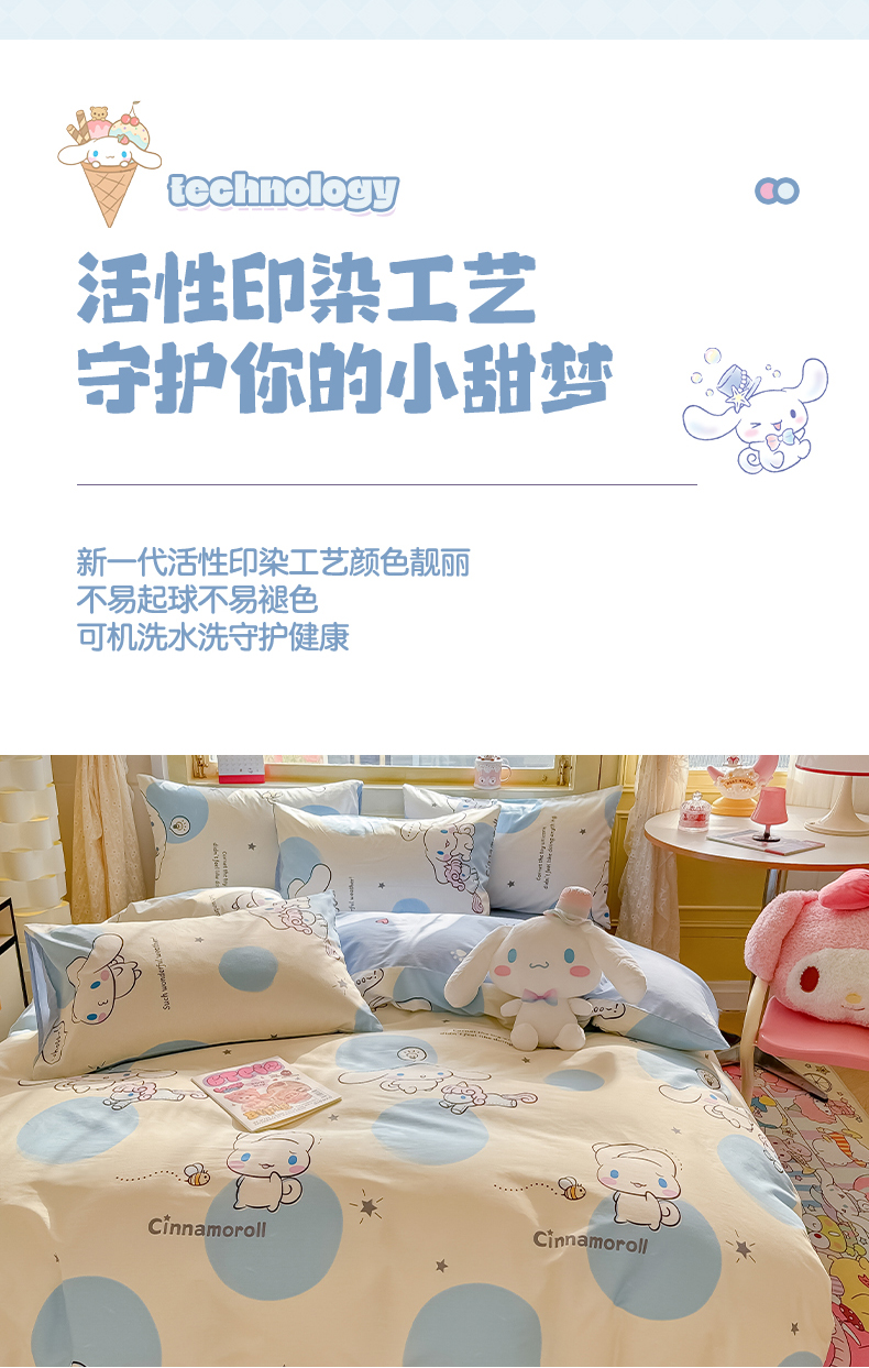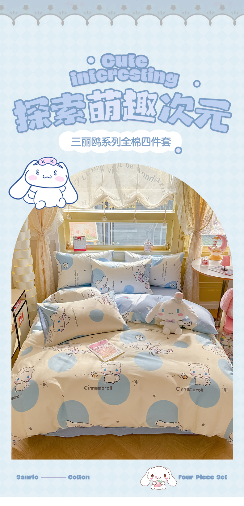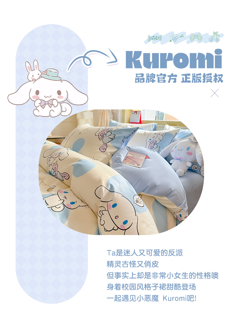 (总)蓝邻家纺 2024新款三丽鸥正版授权学生宿舍全棉印花四件套,甜甜库洛米,粉格美乐蒂,米酷粉,米酷紫,妙可乐园,牛奶大耳狗,玉桂狗