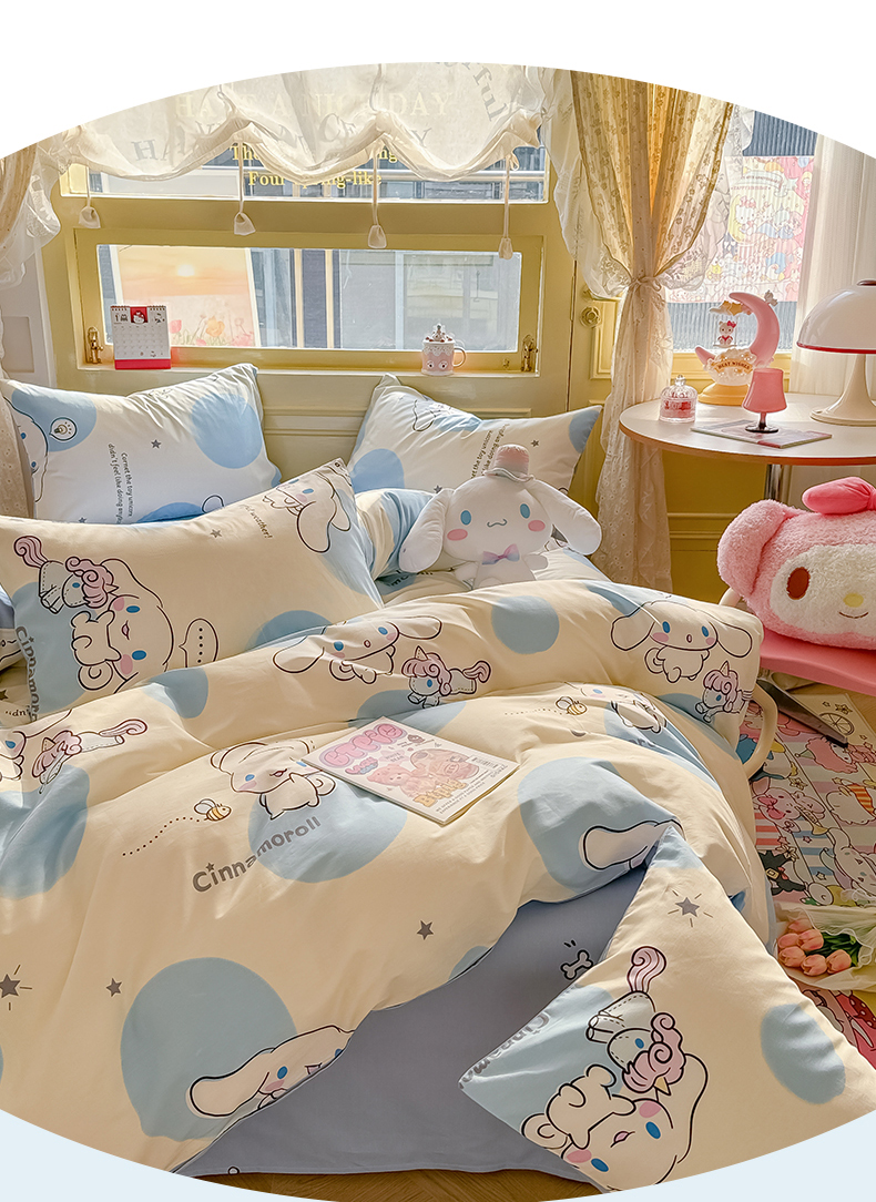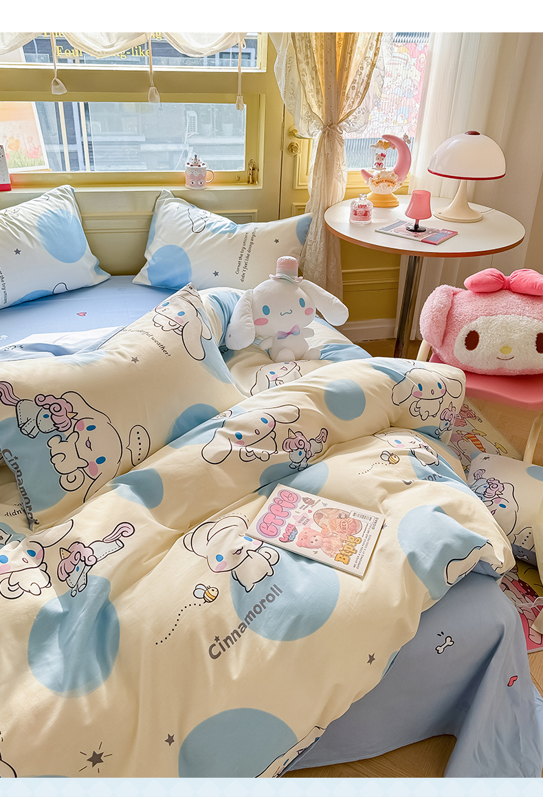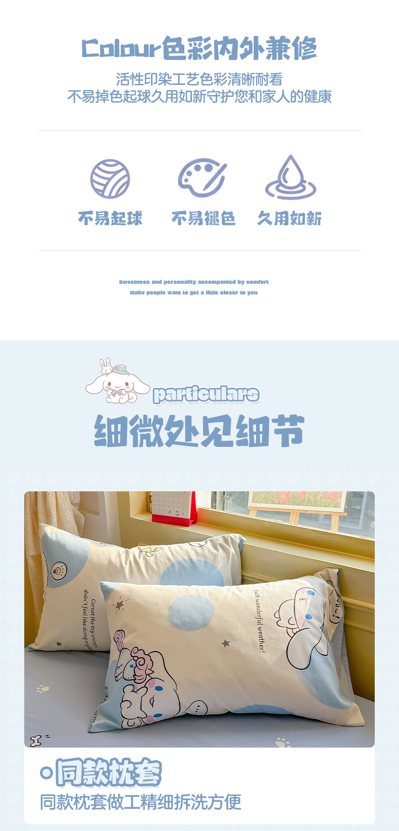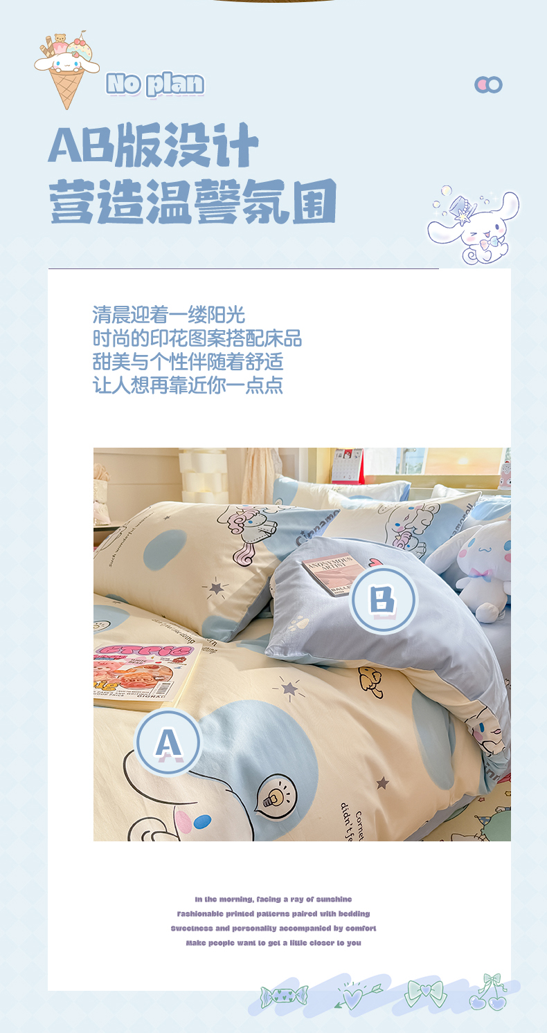 (总)蓝邻家纺 2024新款三丽鸥正版授权学生宿舍全棉印花四件套,甜甜库洛米,粉格美乐蒂,米酷粉,米酷紫,妙可乐园,牛奶大耳狗,玉桂狗