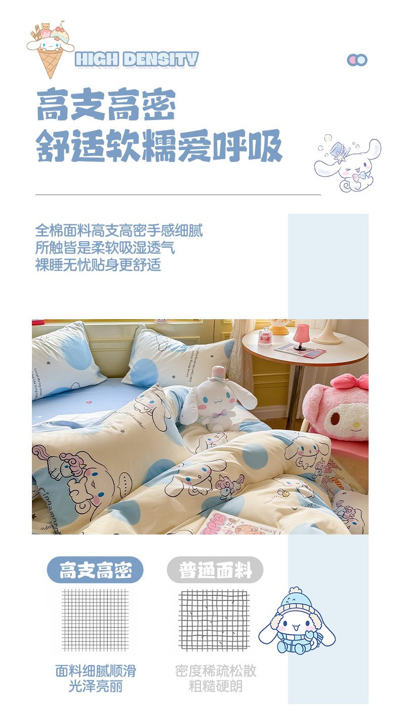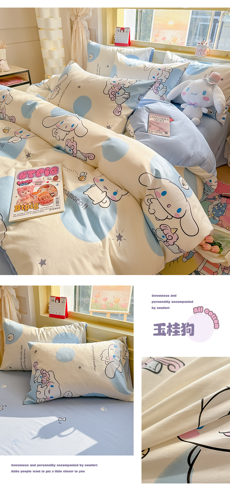 蓝邻家纺 2025年新款三丽鸥正版授权全棉印花四件套系列-大床图 玉桂狗