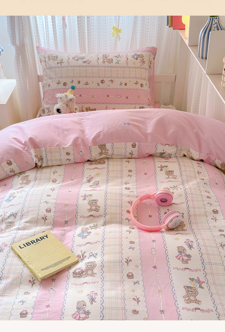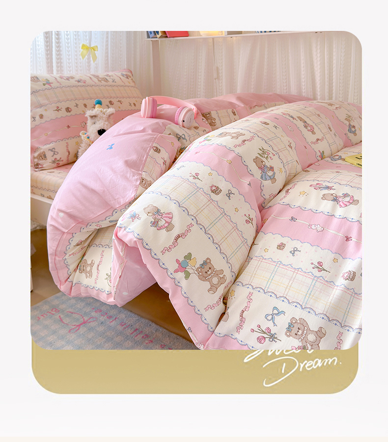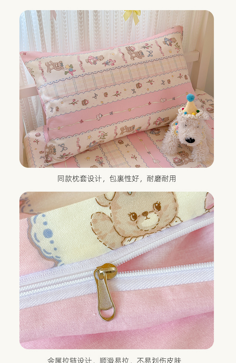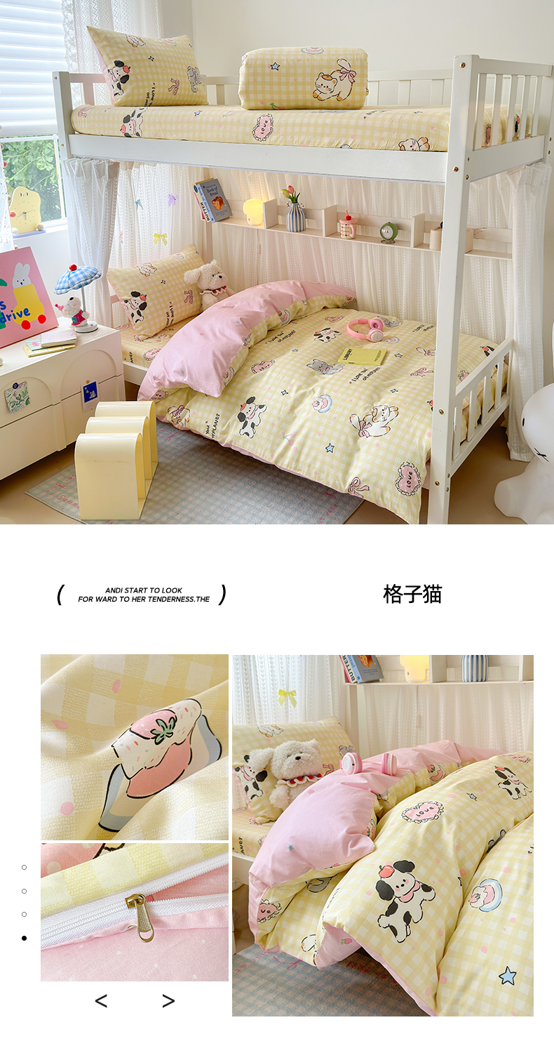 (总)曼之夏 2025新款全棉纯棉40支学生季卡通印花四件套,椰蓝小腊肠,茶茶狗,格子猫,嗨皮狗,开心屋,可爱多,可可汪,玛奇朵,奶昔小熊,泡芙小象,曲奇小狗,趣味熊,甜甜圈,甜心猫咪,童画,小狗日记,樱桃熊仔