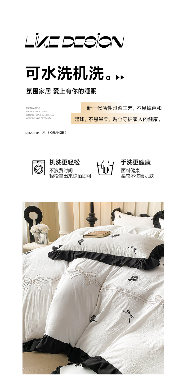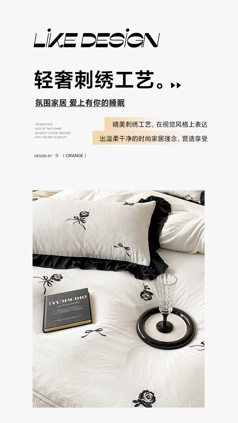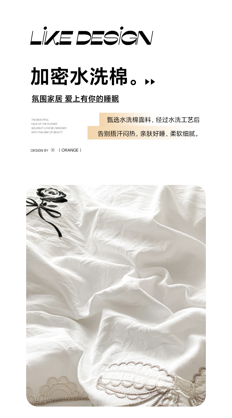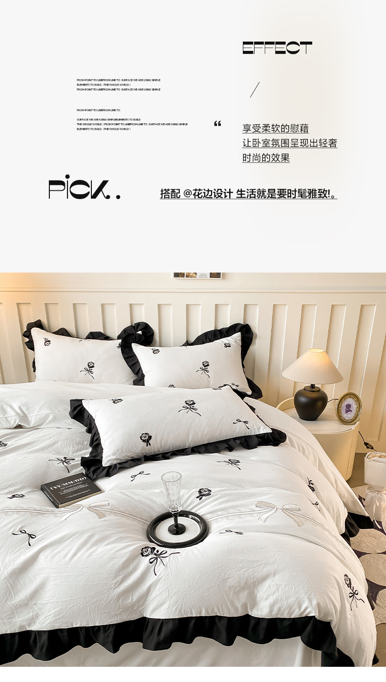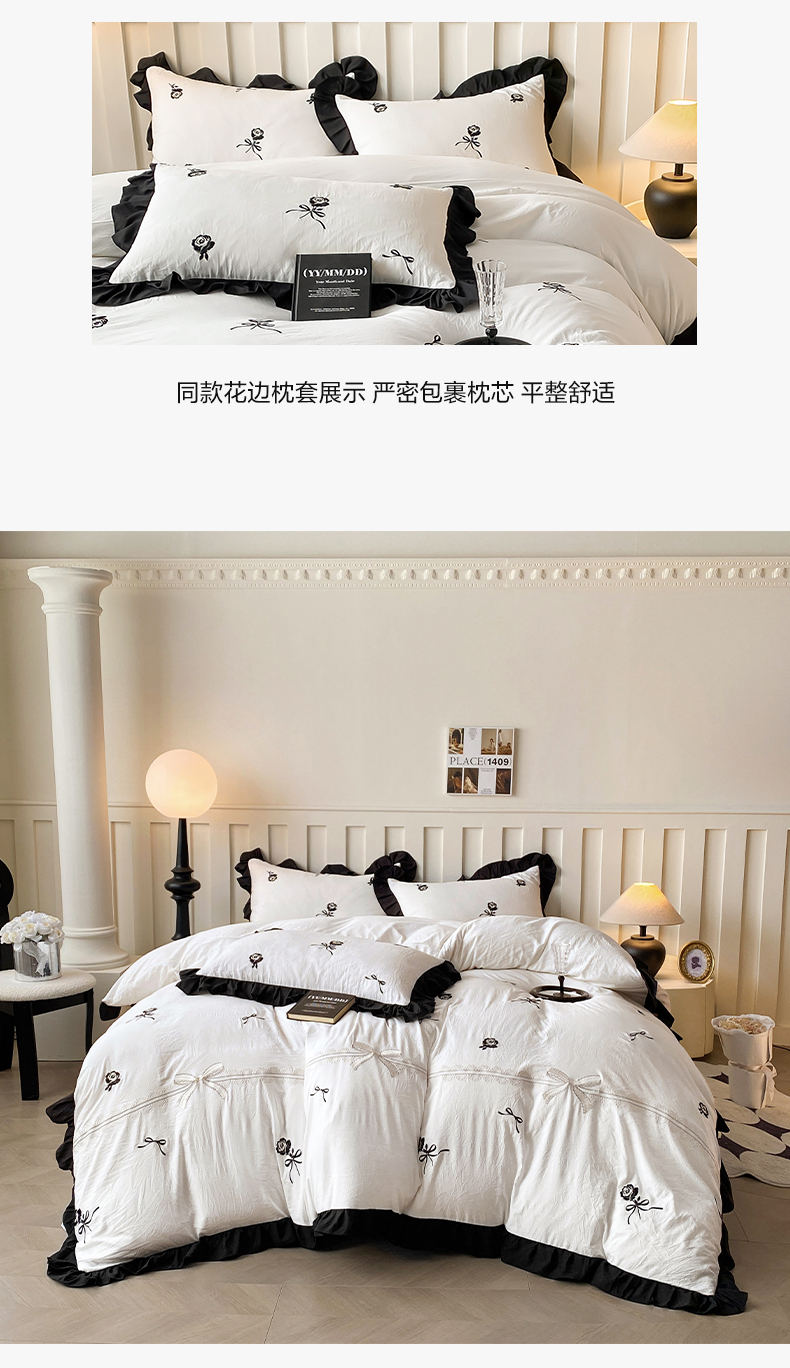 商品名称:大麦乐田 2025爆款韩版法式 满版刺绣大宽花边吊边款四件套 浪漫玫瑰 白