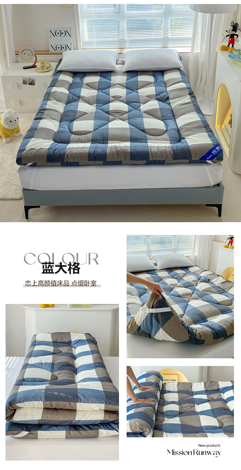 (总)缦卡琳 2023新款夹棉牛奶绒薄床垫,卡其色,米黄色,轻奢紫,天空蓝,宾利蓝,高级灰色,牛油果绿,西瓜红