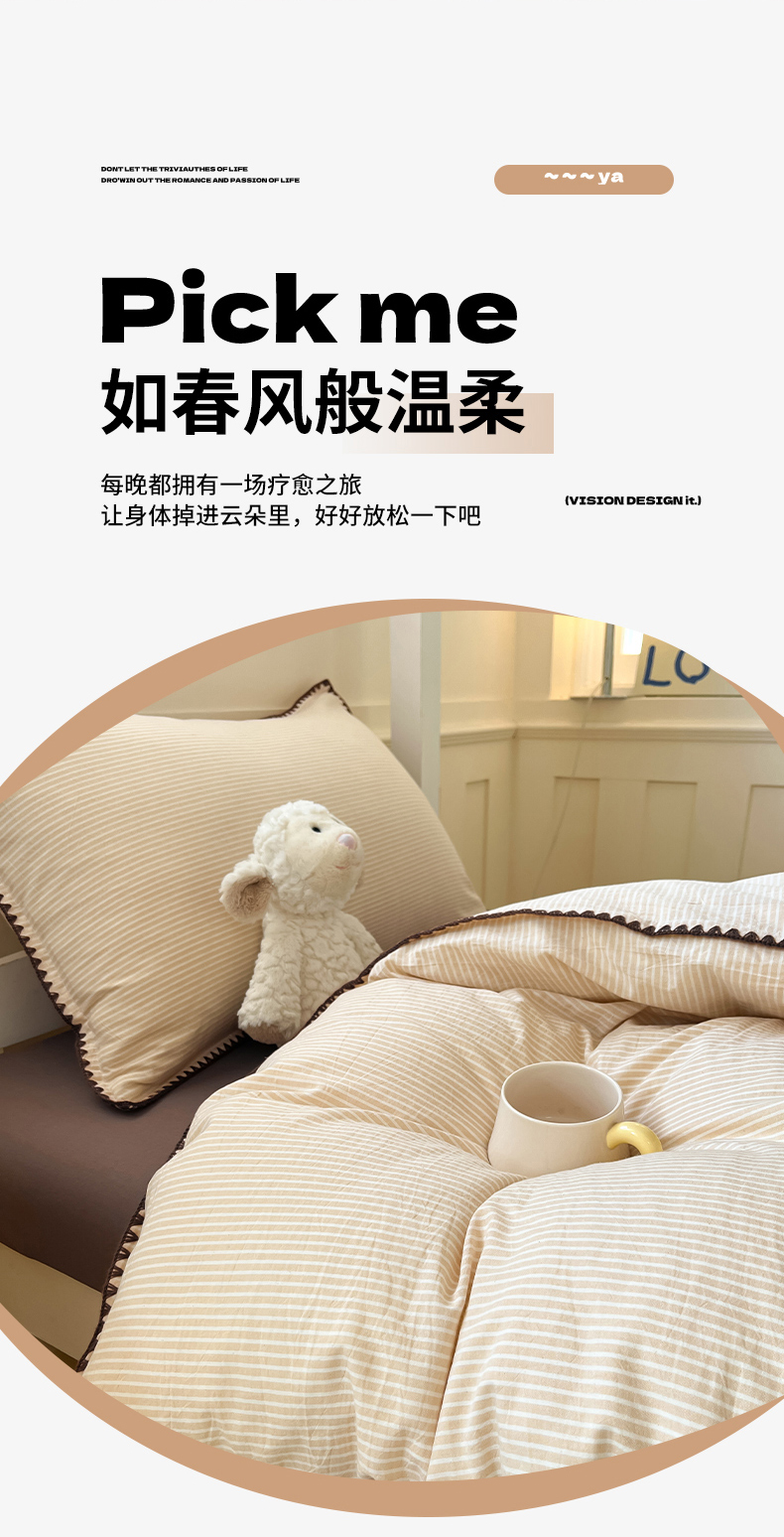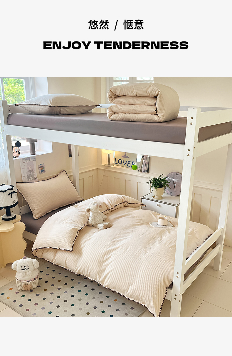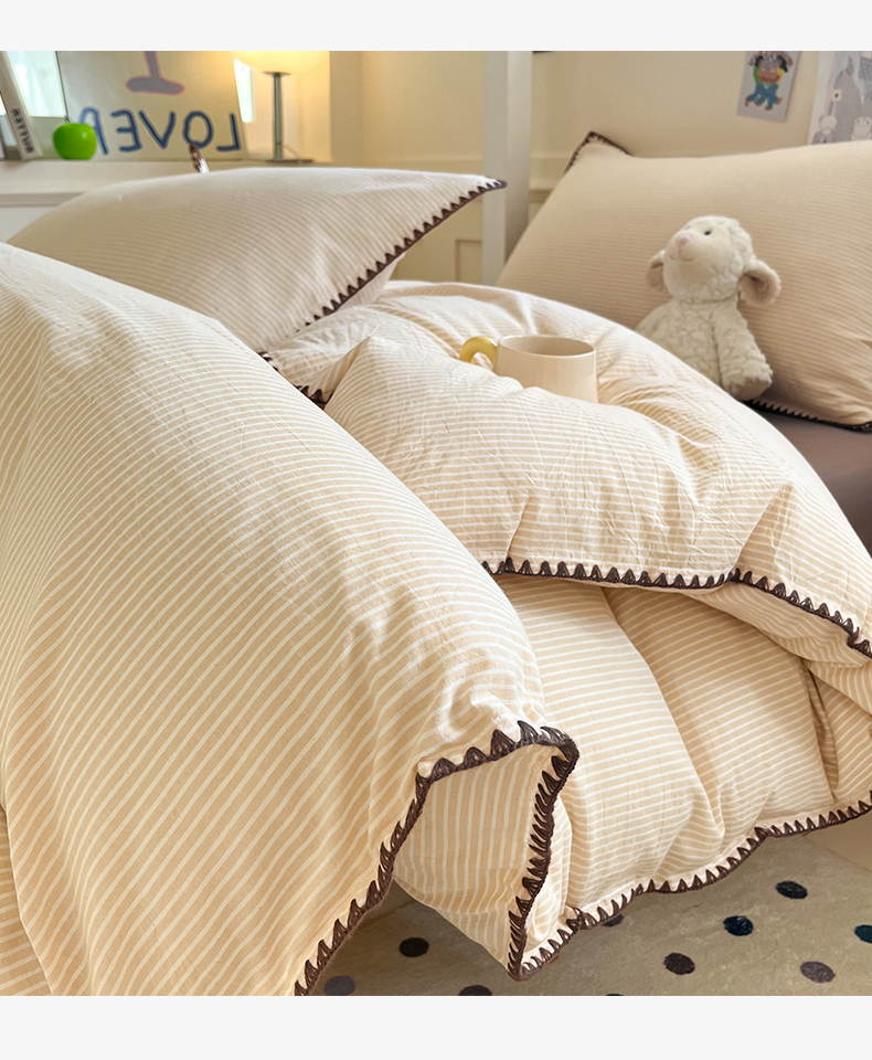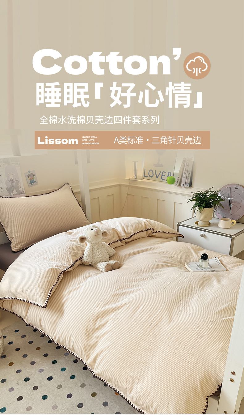 当前位置: 91家纺网 > 商品网购 > 床品套件 > 四件套 > 全棉普通四件套 > 蓝邻家纺 2025新款全棉水洗棉贝壳边三件套四件套-学生床 左伊黄