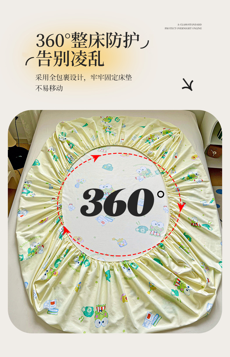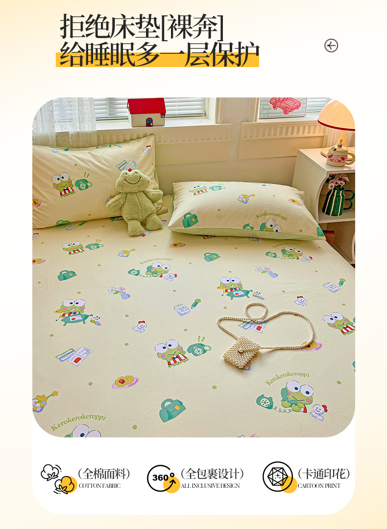名兮家居 2025新款全棉纯棉13372经典奥特曼-三丽鸥成人床床笠单件单床笠【含防伪标】 悠闲大眼蛙