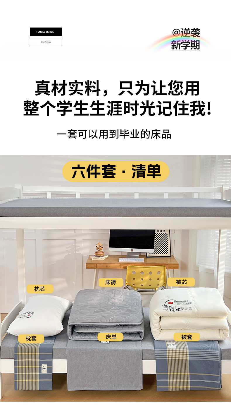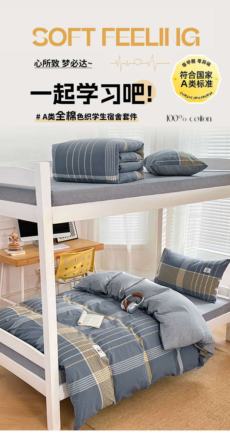 商品名称:(总)(总)2025新款色织全棉100%棉学生三件套宿舍寝室上下铺六件套大礼包组合套装