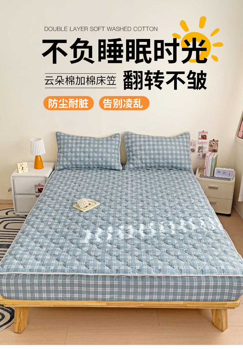 • 91家纺网 家纺一手货源 找家纺 纽缦家纺 2025新款云朵棉亲肤加厚夹棉单品床笠床笠单件单床笠 小蓝条