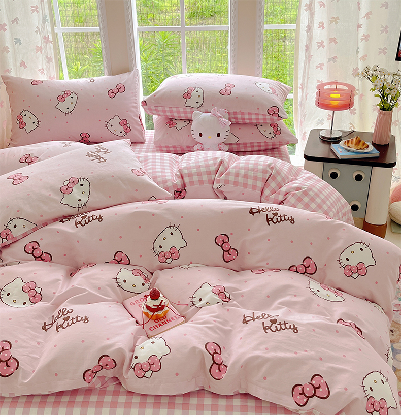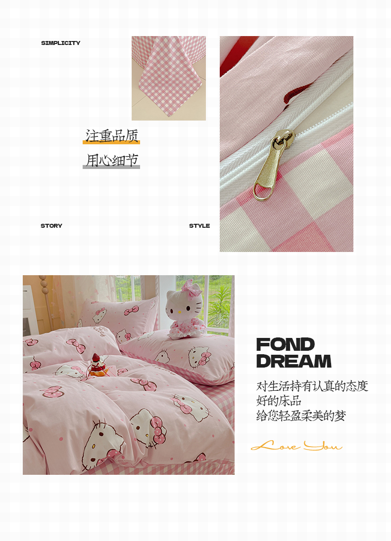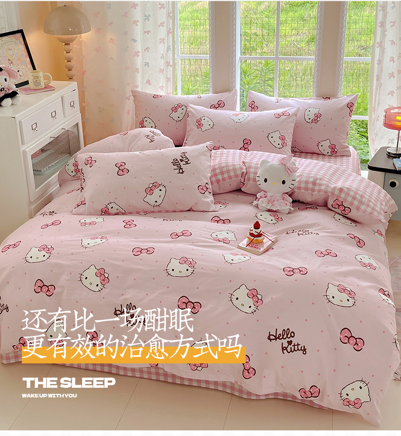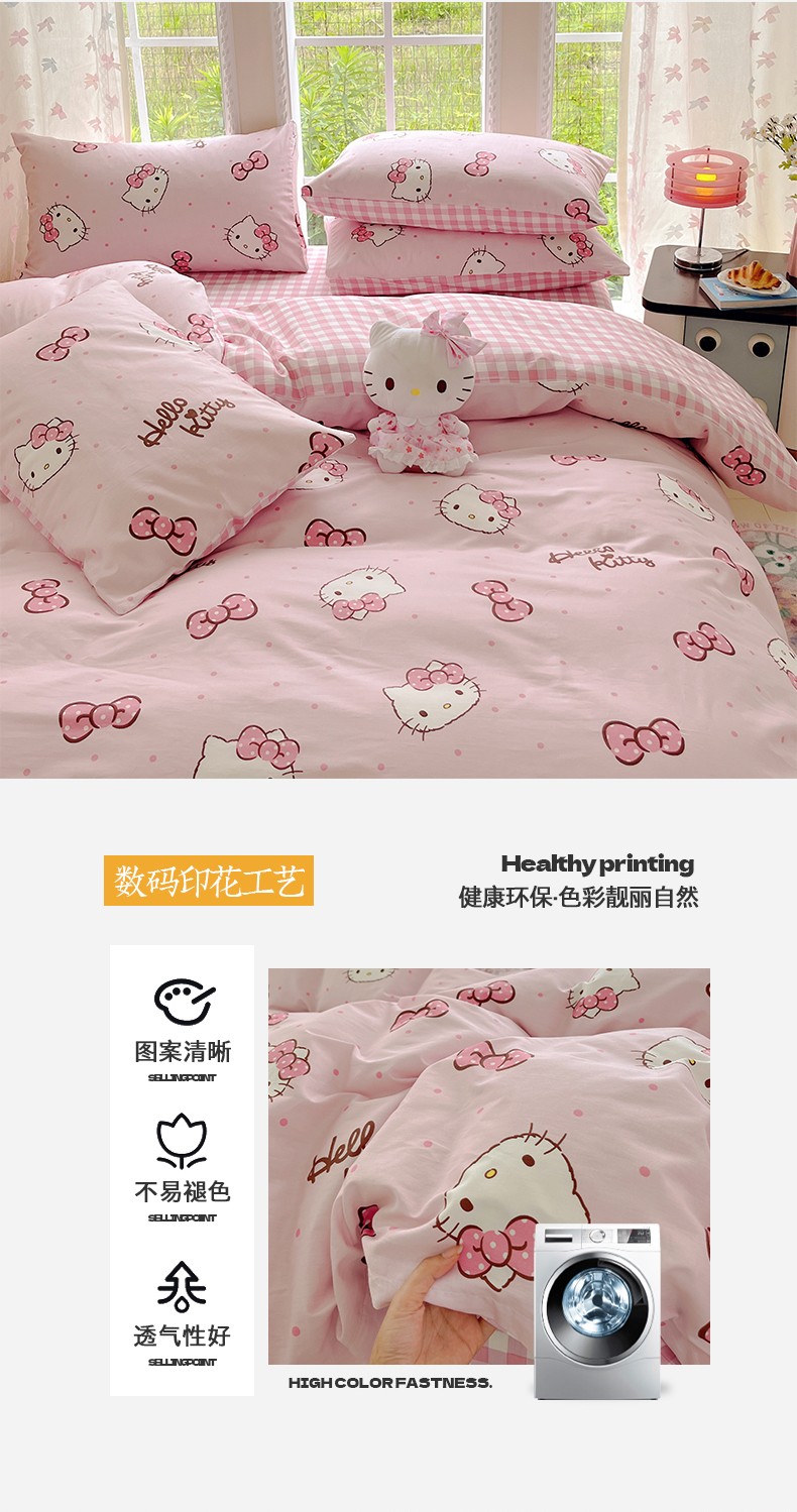 当前位置: 91家纺网 > 商品网购 > 床品套件 > 四件套 > 全棉普通四件套 > 金爱家2025新款三丽鸥正版授权卡通数码印花混搭纯棉印花系列四件套 棉三丽鸥-蝴蝶结kitty
