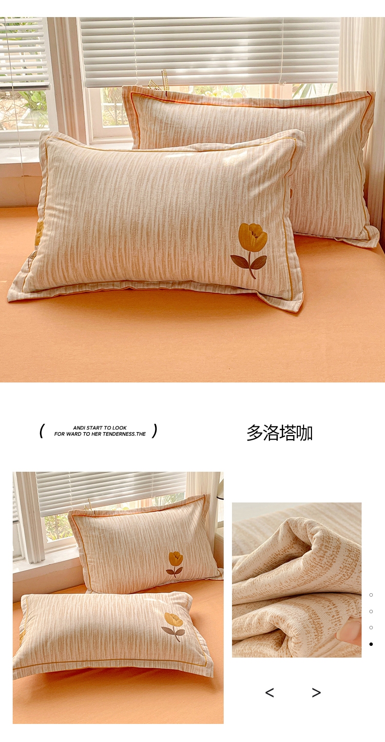 商品名称:纽缦家纺 2025新款全棉纯棉磨毛印花单品枕套 枕套单件 加州阳光米