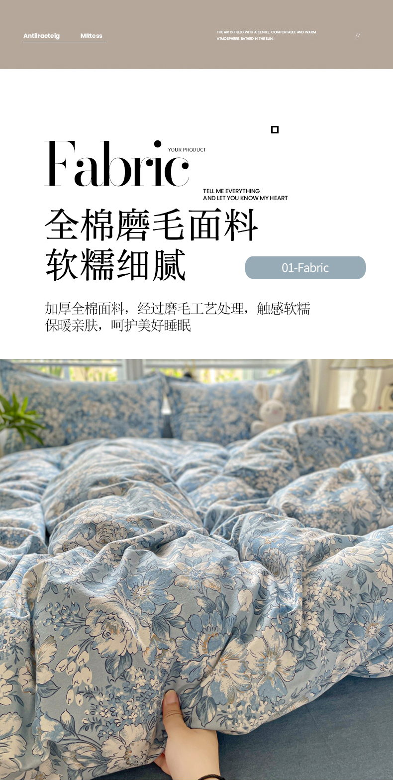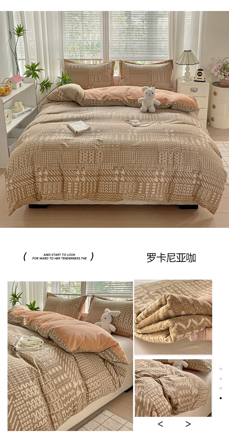 • 91家纺网 家纺一手货源 找家纺 纽缦家纺 2025新款全棉纯棉磨毛印花单被套 被套单件 多洛塔咖