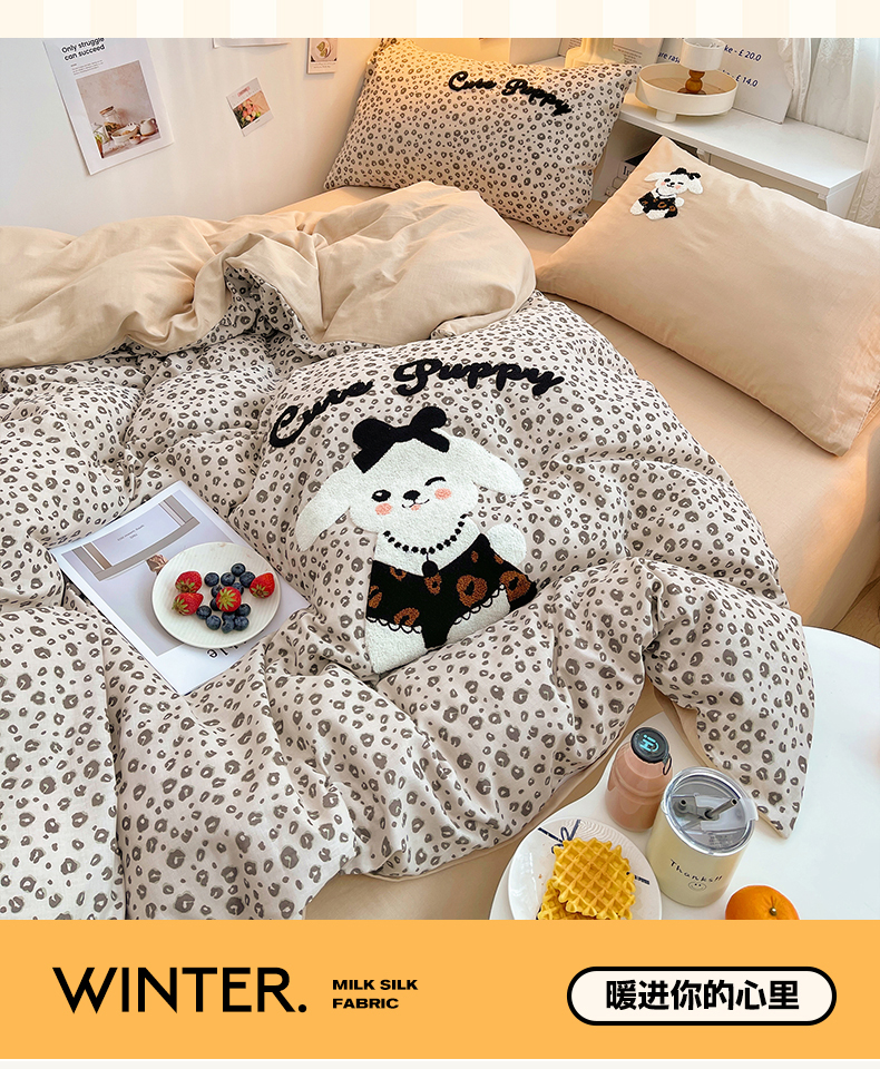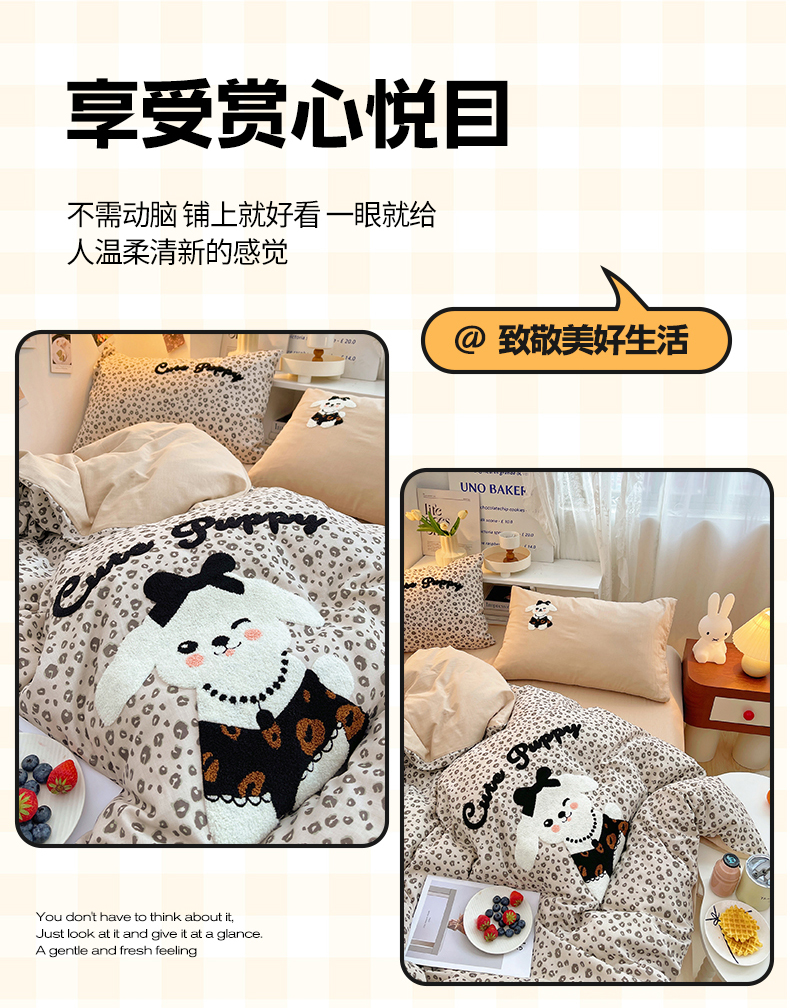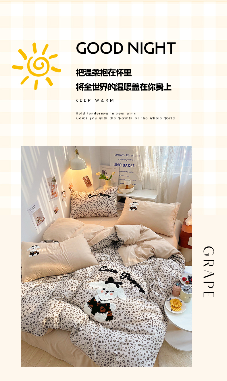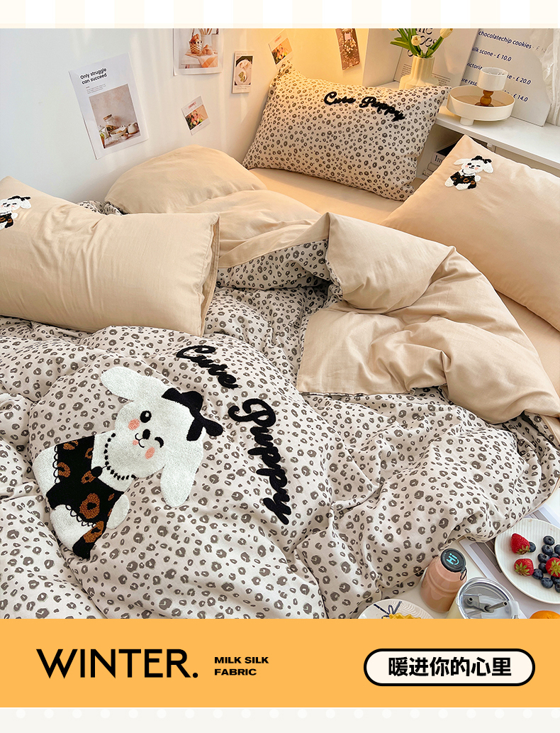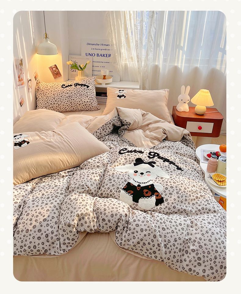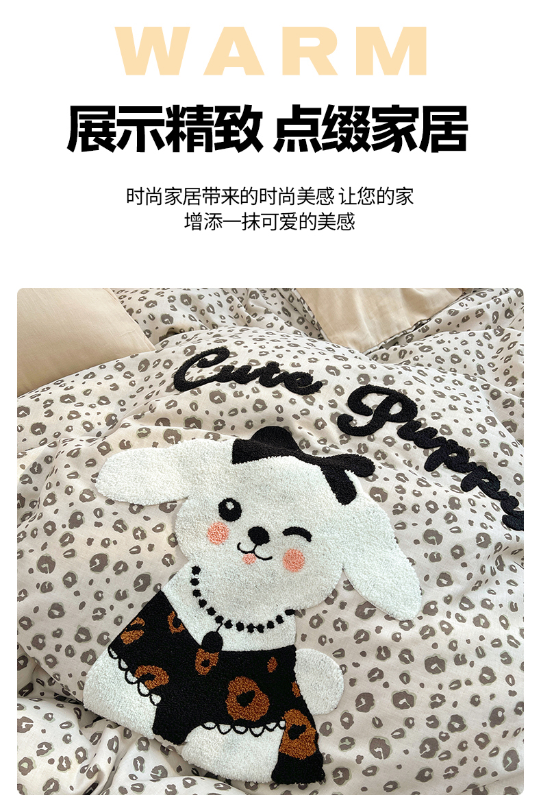 当前位置: 91家纺网 > 商品网购 > 床品套件 > 四件套 > 全棉普通四件套 > 炫拼家纺 2026春夏新款全棉纯棉A类40支双层纱卡通毛巾绣四件套-慕斯 奶油狗