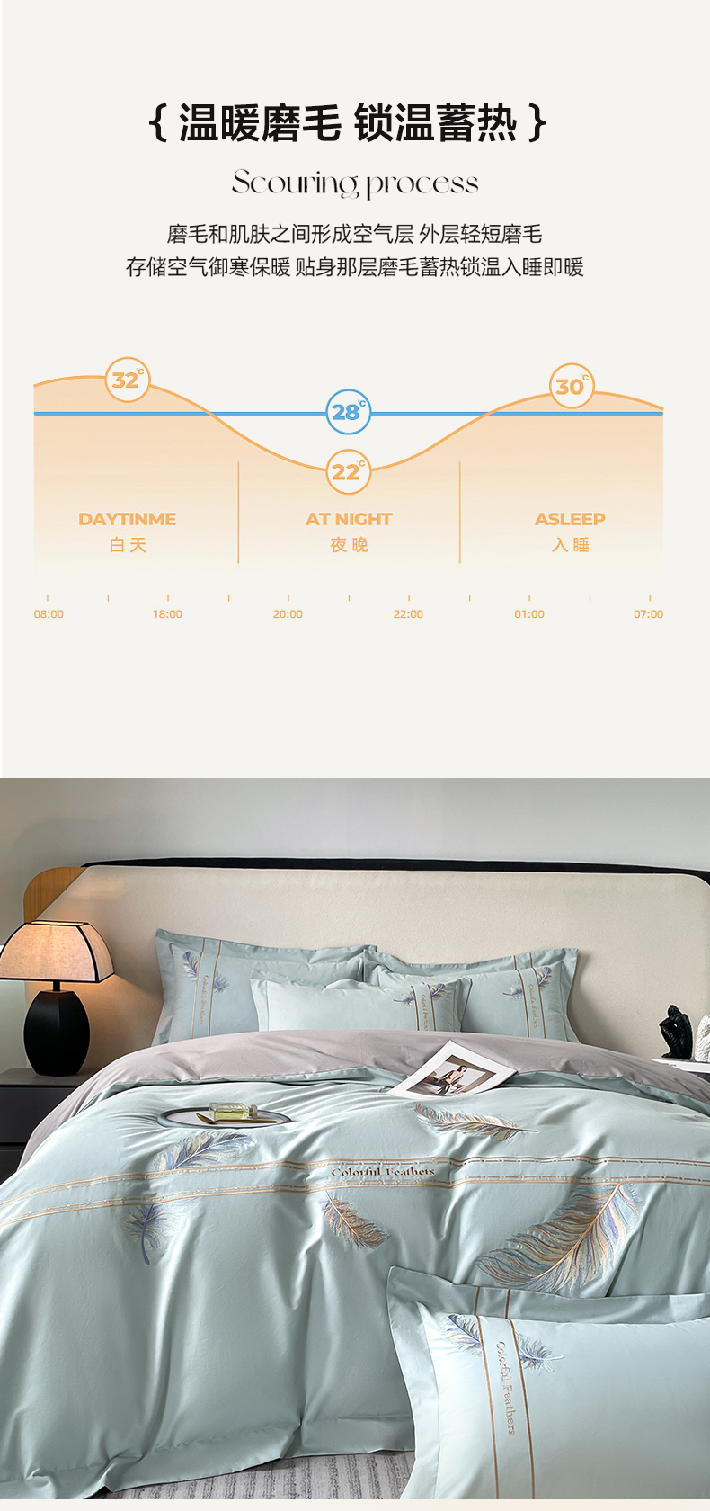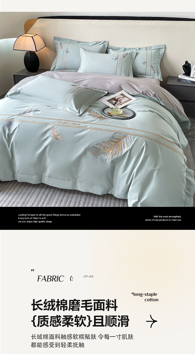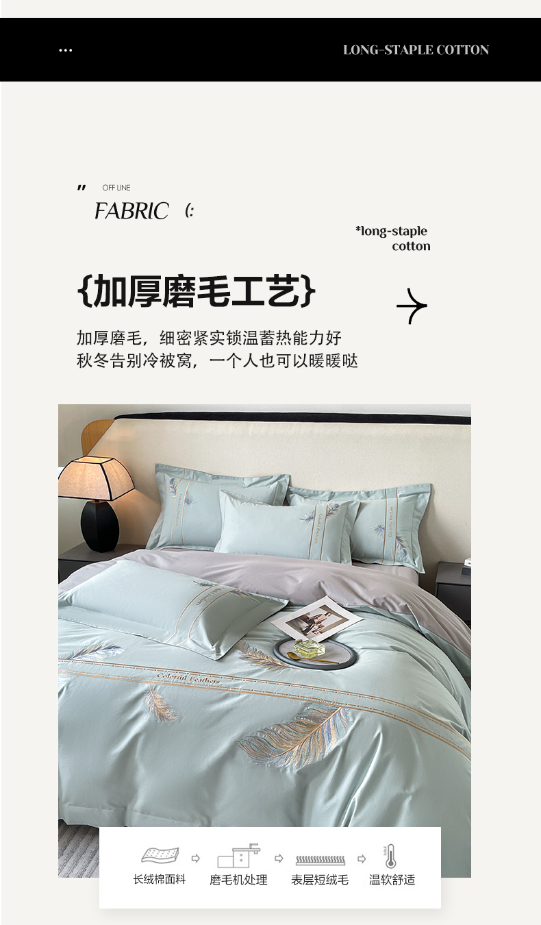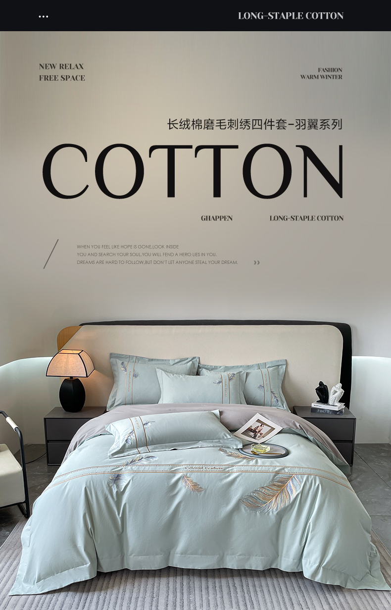 当前位置: 91家纺网 > 商品网购 > 床品套件 > 四件套 > 全棉普通四件套 > 桃园 2025新款纯棉全棉长绒棉磨毛四件套不掉毛-羽翼 (高端礼盒) 羽翼-飘蓝