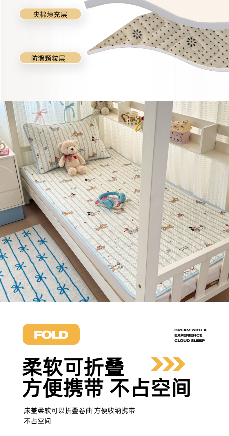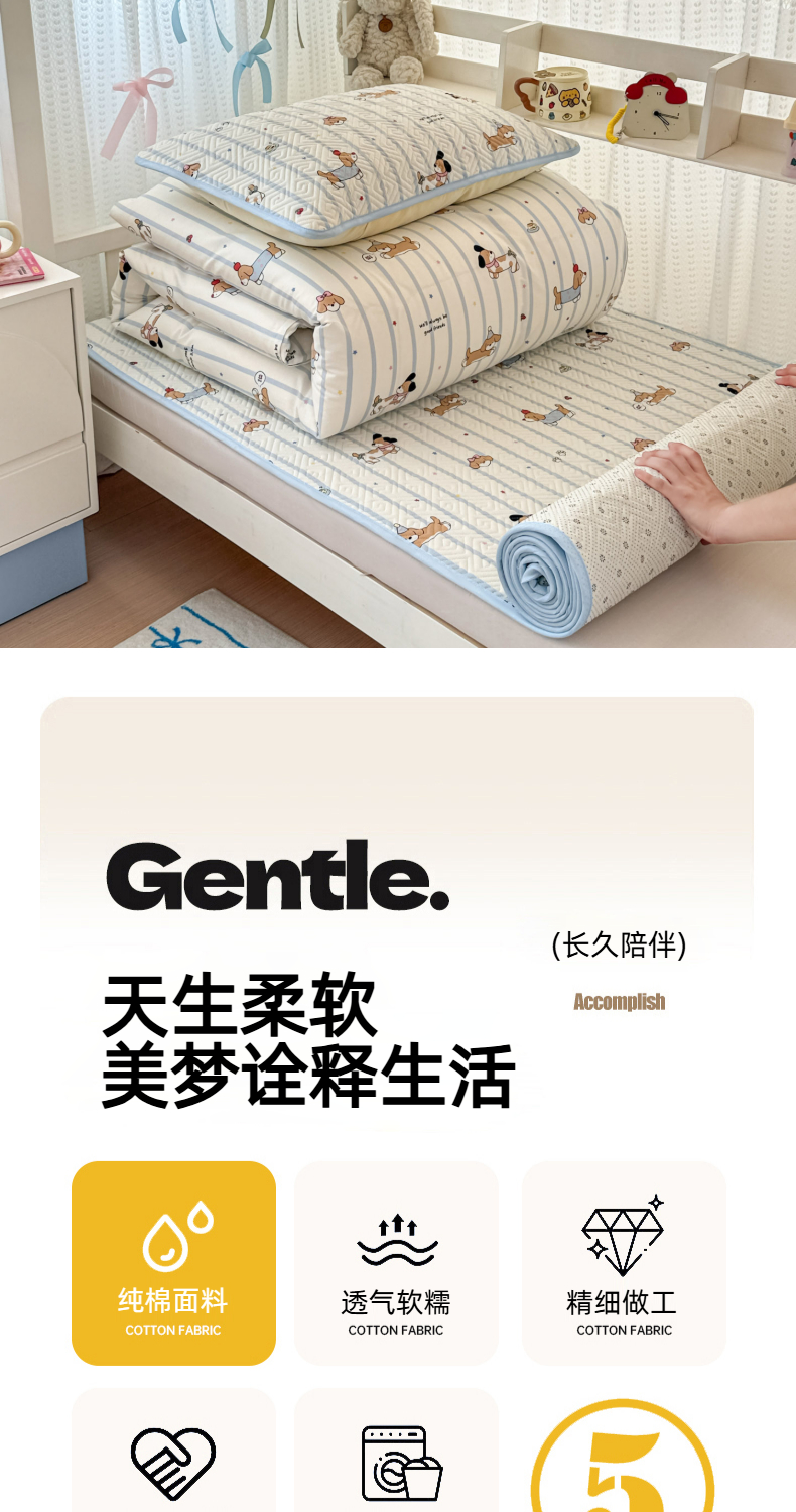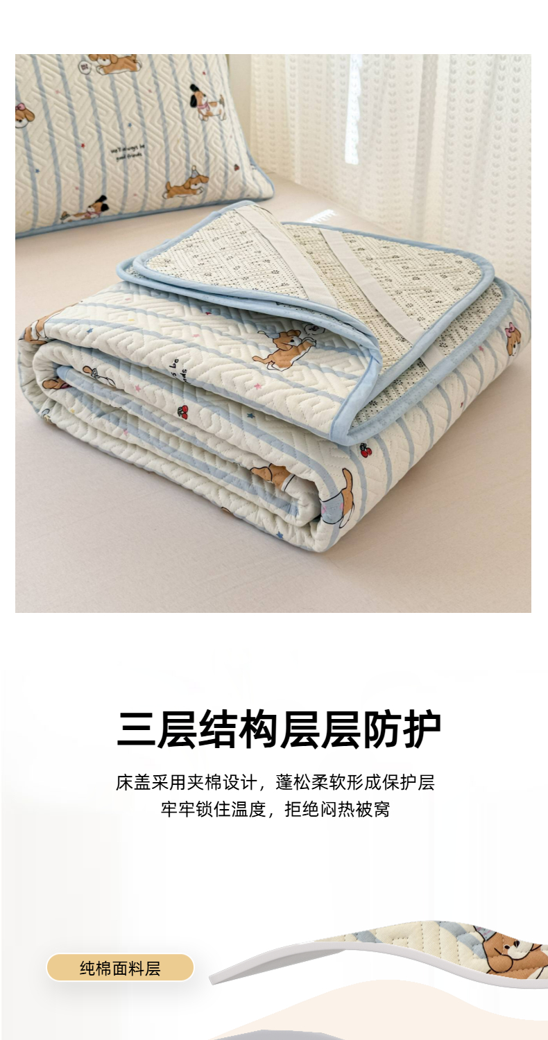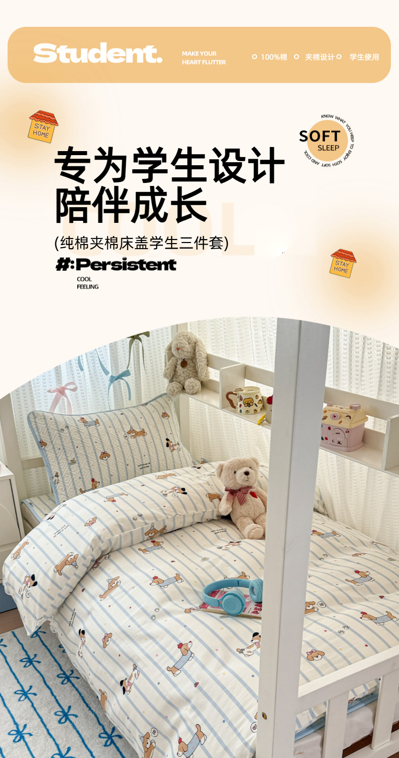 简宜家居(朝初家纺) 2025新款全棉纯棉夹棉床盖学生宿舍上下铺三件套 小狗条纹-夹棉款