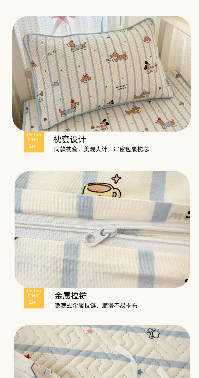 商品名称:简宜家居(朝初家纺) 2025新款全棉纯棉夹棉床盖学生宿舍上下铺三件套 小狗条纹-夹棉款