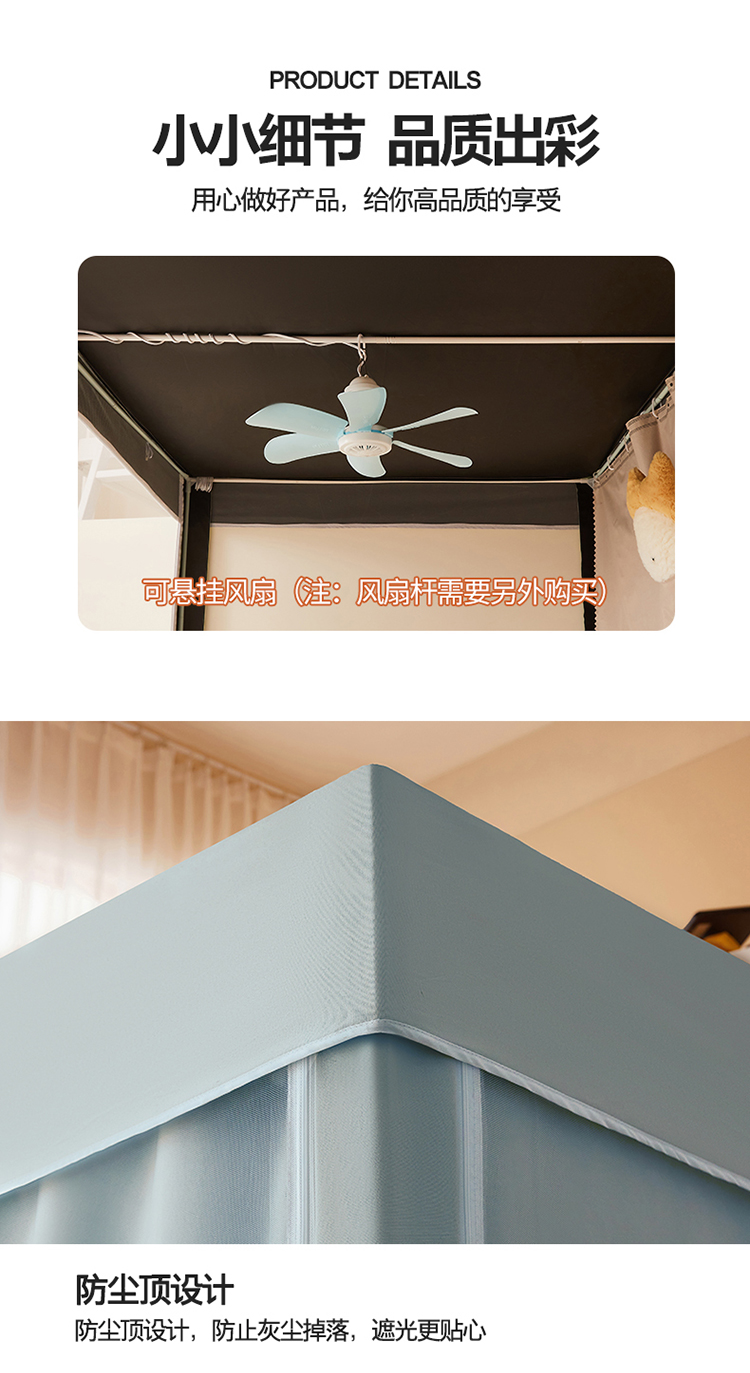 商品名称:(总)2025新款100%物理强遮光纳米技术静电环保透气床帘加密纱学生蚊帐透气面料宿舍单人床