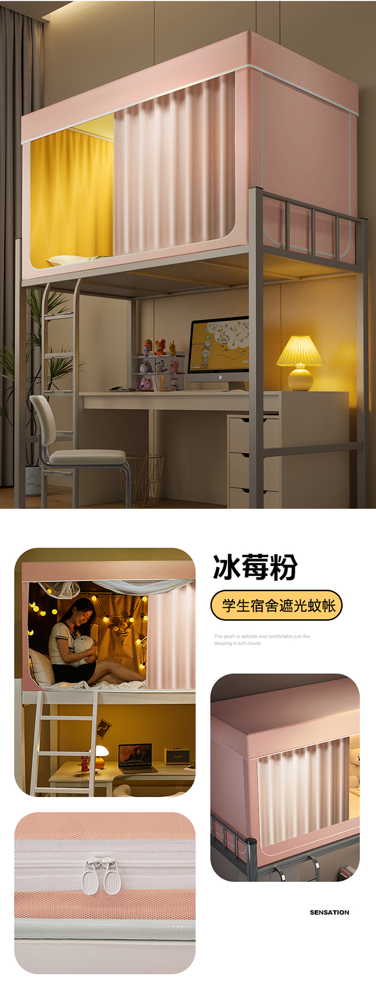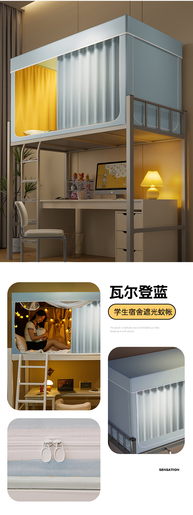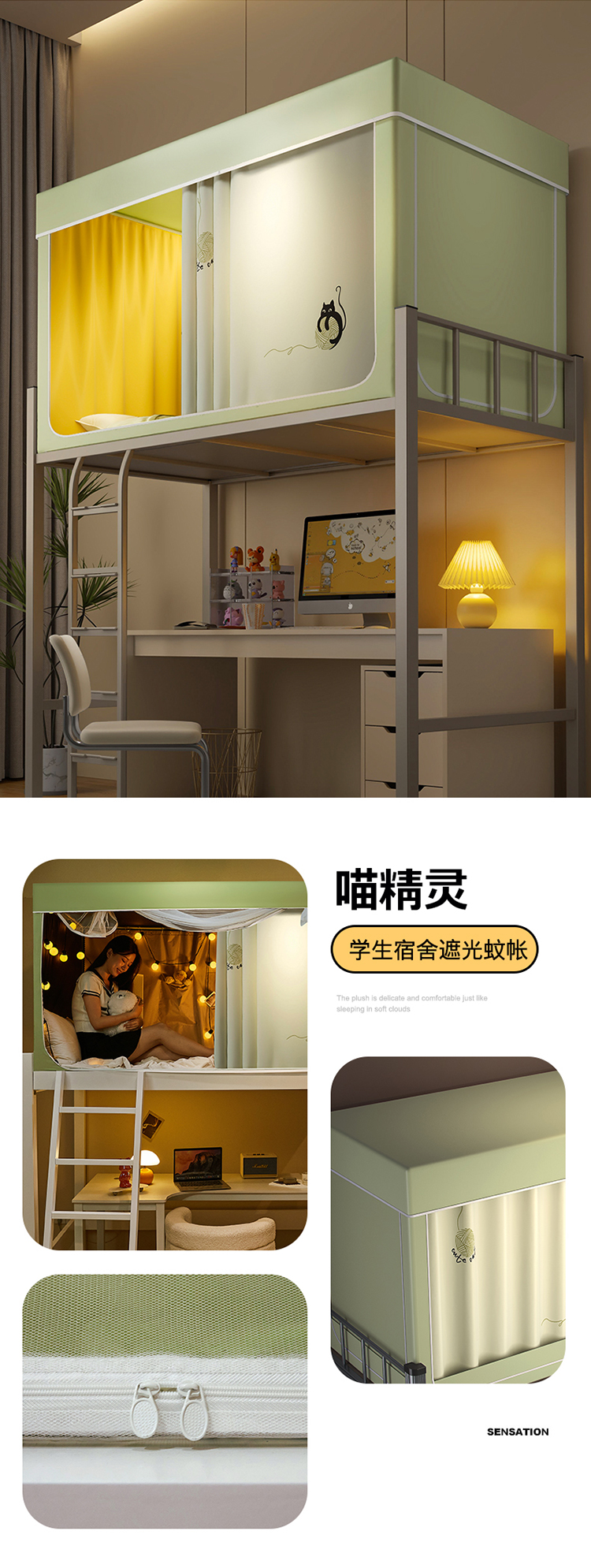 (总)2025新款100%物理强遮光纳米技术静电环保透气床帘加密纱学生蚊帐透气面料宿舍单人床