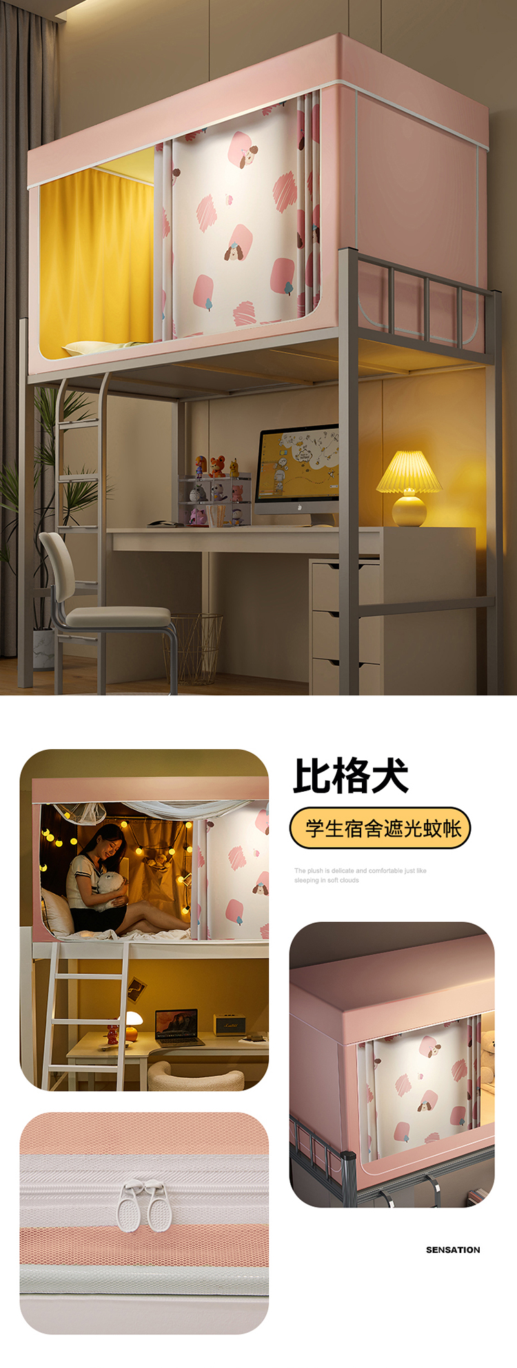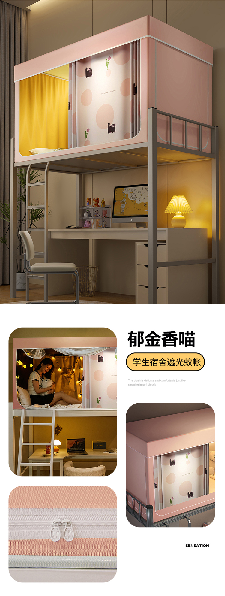 (总)2025新款升级静电非涂层环保全遮光床帘款学生上下铺蚊帐宿舍单人床通用印花,杯子里的猫,布露露,草莓兔兔,花朵喵喵,看书狗狗,萌宠出道,睡觉狗狗,童话园,小浣熊,小兔兔,纯藏青,纯米色,纯粉色,纯绿色,纯天蓝