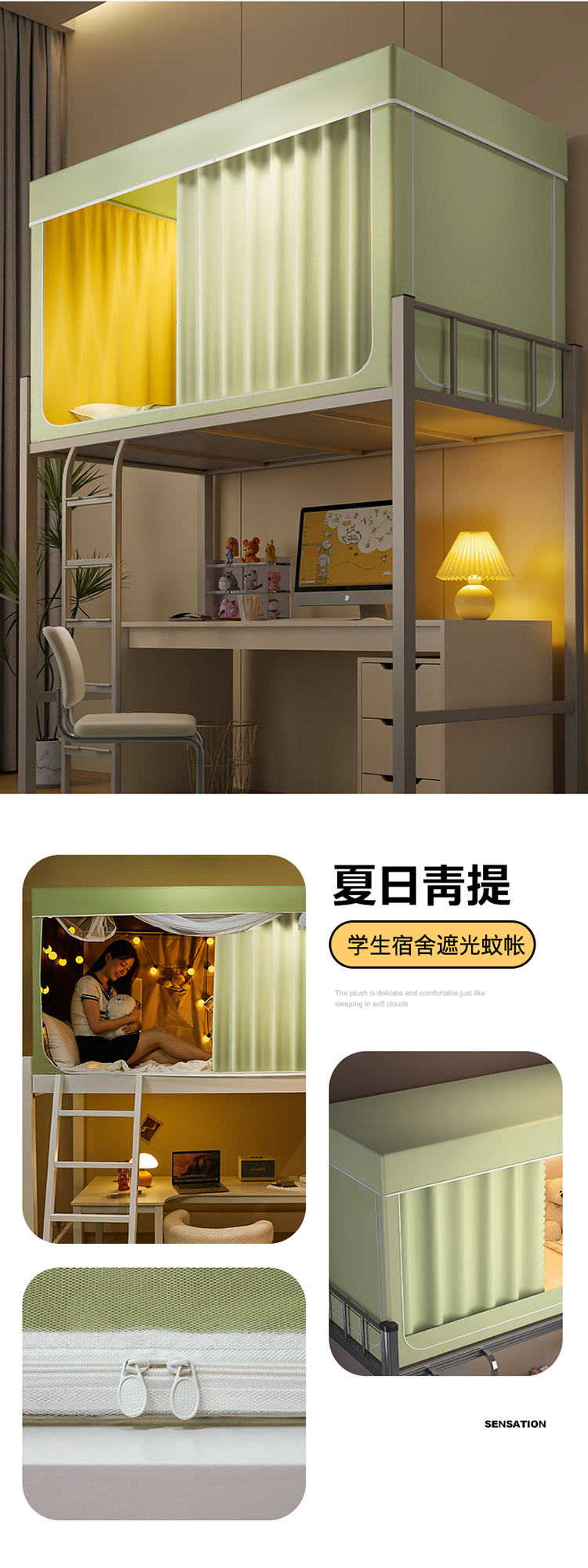 (总)2025新款强遮光一体式隔音蚊帐大学生宿舍床帘上下铺通用花边窗帘学生蚊帐,米格柠檬,绿格无花果,粉格樱桃,蓝格蓝莓,小樱桃-粉,小樱桃-米,小樱桃-蓝,小樱桃-绿