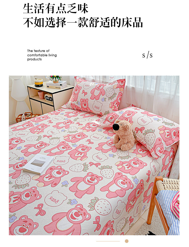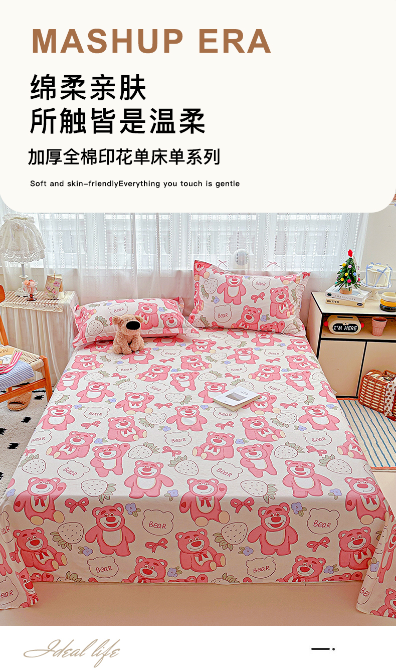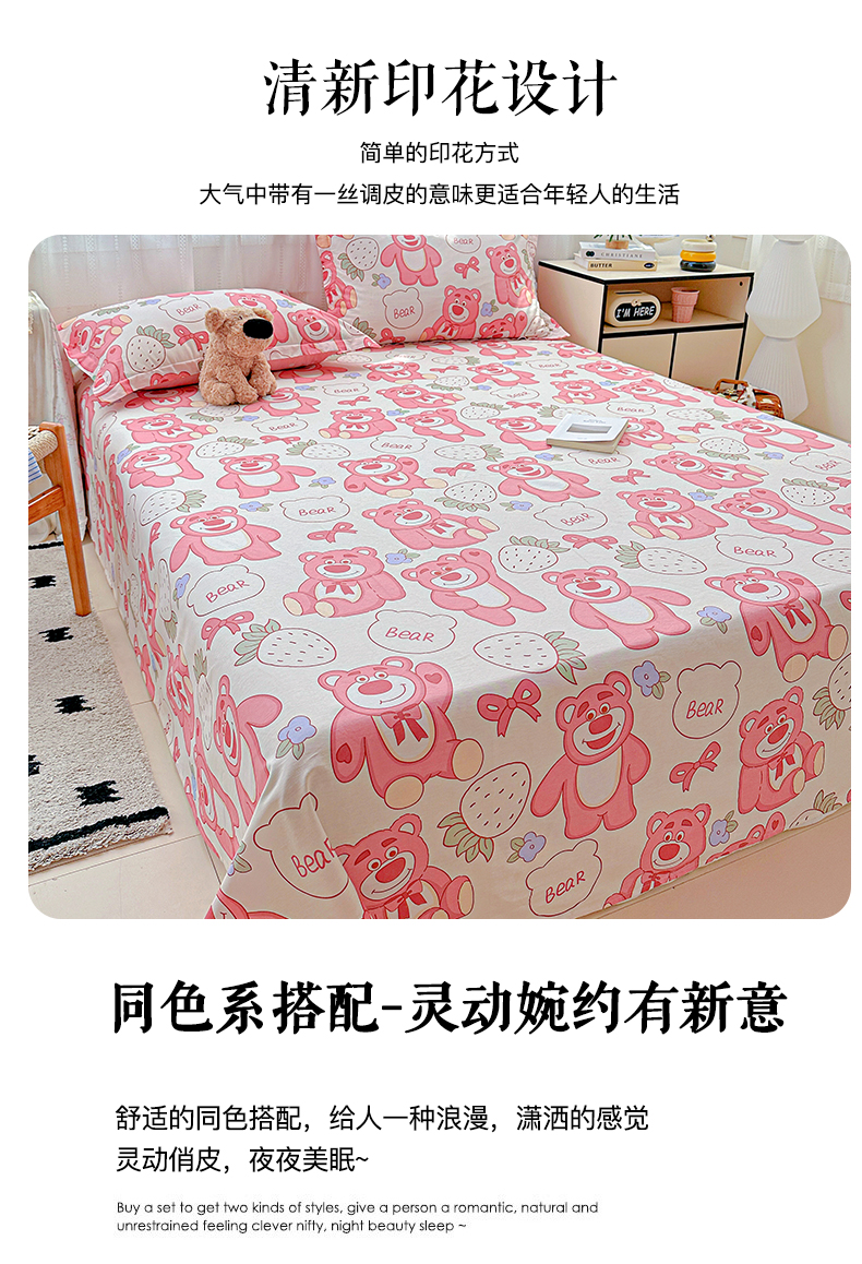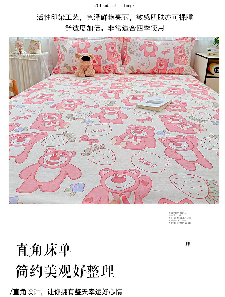 恩泽家纺 2025新款全棉纯棉12868喷气印花系列床单单品床单单件单床单-第二批 草莓熊