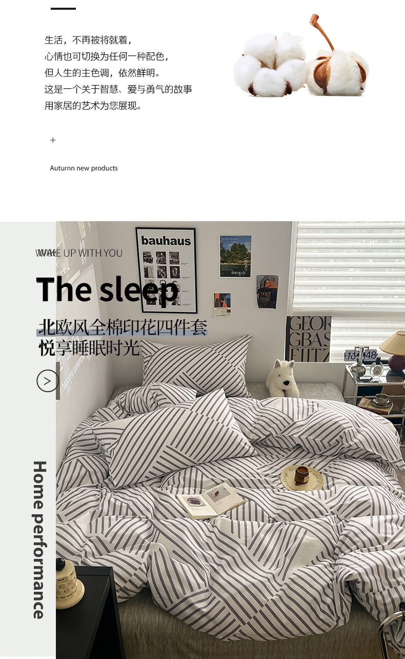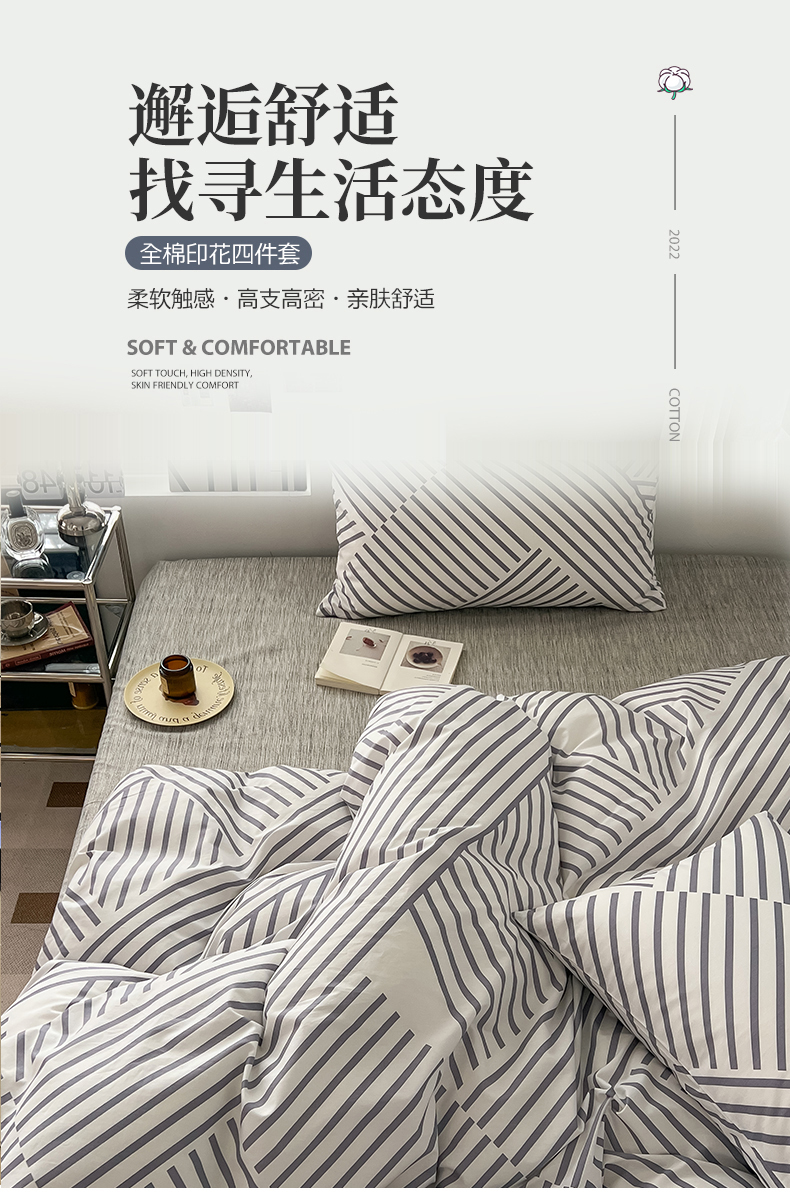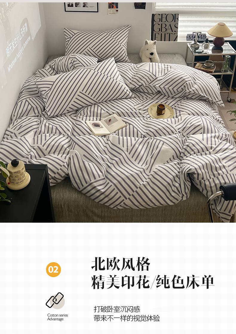 当前位置: 91家纺网 > 商品网购 > 床品套件 > 四件套 > 全棉普通四件套 > 吉象家纺 2025新款全棉纯棉印花北欧简约系列四件套 语初灰